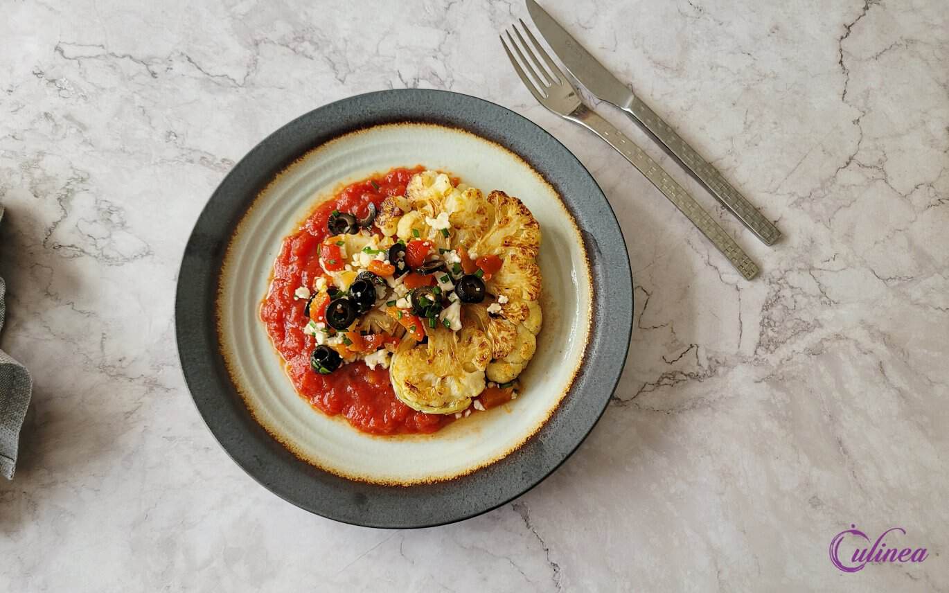 Bloemkool Steaks met Olijven en Tomatensaus