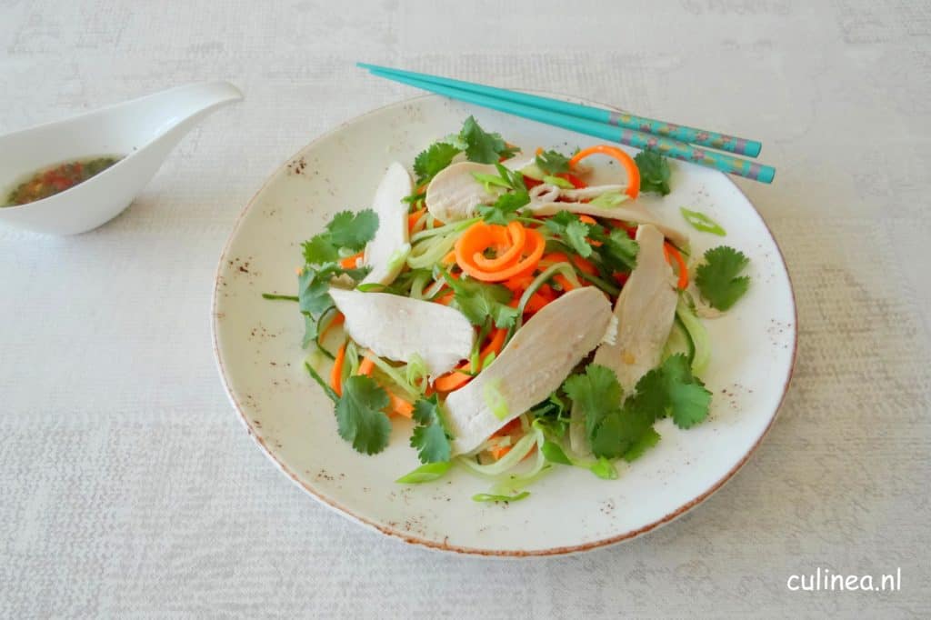 En weer een Oosters gerecht van mijn crash dieet. Het is een koolhydraatvrije maaltijd, maar wel super lekker. Je kunt voor deze Thaise kipsalade met groentenoedels ook gekookte of gebakken kipfilets gebruiken die je bijvoorbeeld nog overhad. Of zelfs een gerookte kipfilet. Maar ik heb de kip gepocheerd in een aromatische kippenbouillon, hierdoor krijgt de […]