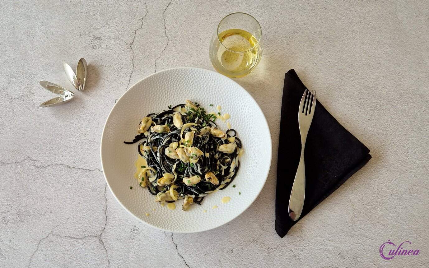 Zwarte Pasta met Mosselen in Saffraansaus