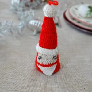 Mijn moeder maakt elk jaar iets voor ons op de Kersttafel, zo heeft ze al eens kerstmannetje gebreid (kunnen we ook in de boom hangen) en heeft ze een wijnfles voorzien van een zelfgemaakt kostuum. Hoe leuk is dat!