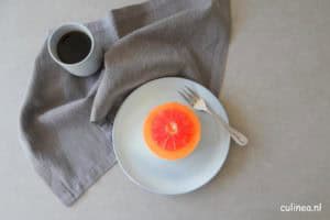 - Mocht je die gelei nou niet willen maken, leg dan alleen een plakje rode grapefruit op het taartje. Dit staat ook al super leuk.