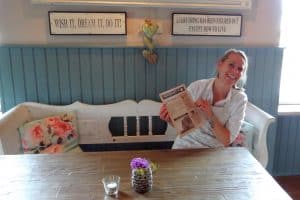 We rijden net iets buiten Ootmarsum naar onze bestemming B&B Postelhoek. Een jongedame ontvangt ons allervriendelijkst en zij vraagt of we eerst een kopje koffie willen drinken op het terras. Het is mooi weer, het zonnetje schijnt en het prachtige terras met een mooie grote notenboom lonkt. Daar komt ze al aan met onze koffie, thee en zoete versnaperingen. Wat een verwennerij, zo’n ontvangst belooft heel veel goeds. Silvia, de eigenaresse van deze mooie stek, verwelkomt ons persoonlijk en vertelt over haar B&B en het bijbehorende gezellig uitziende restaurant. We besluiten ter plekke dat we vanavond hier gaan eten.