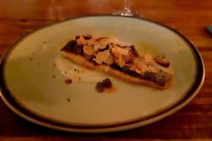 Hubbie kiest voor de Gerookte zalm en ik voor de Carpaccio als voorgerecht. Ondertussen schuift de wijncompagnon van Henk Slump, Ferencz Deli met zijn Franse vrouw aan. Dit wordt dus een zeer romantisch etentje voor twee … not :)!