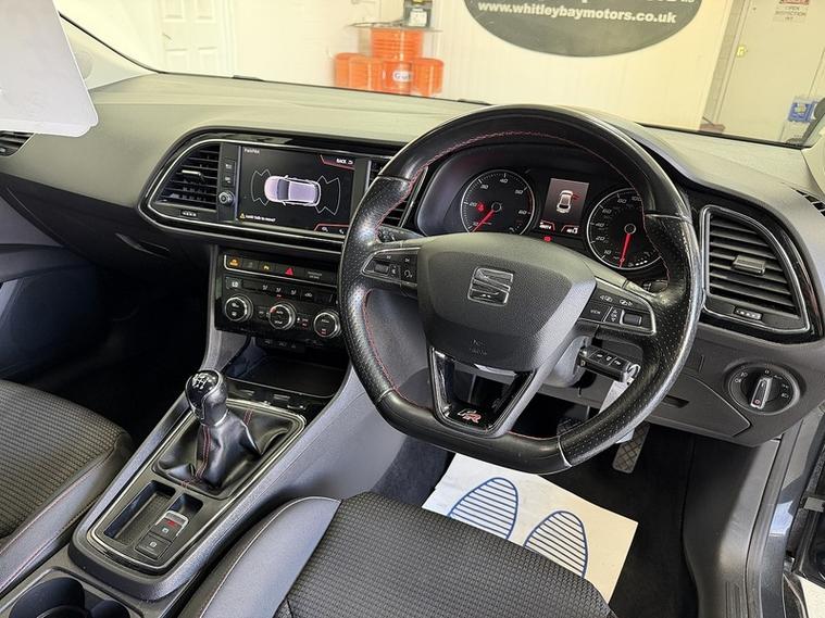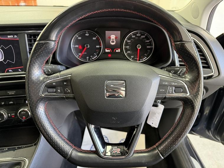 - Steering Wheel - Flat-Bottomed Perforated Leather with Red Stitching and FR Logo