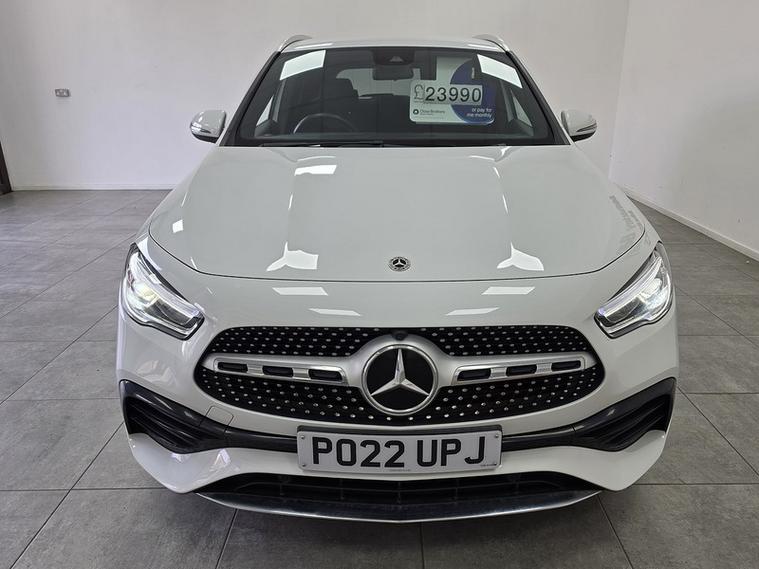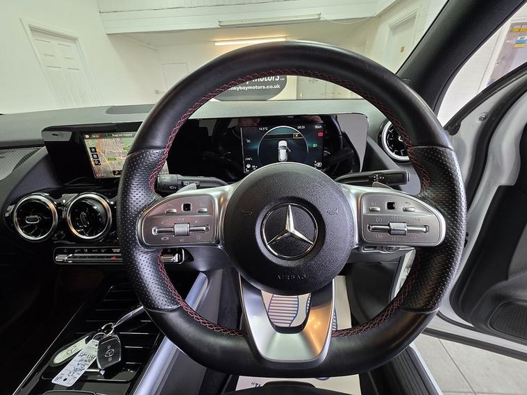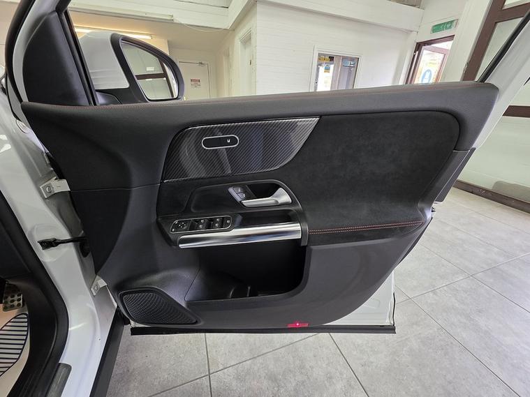 28, 639 miles, 1 owner, finished in polar white, privacy glass, black half leather upholstery with red stitching, 19" diamond cut alloy wheels.