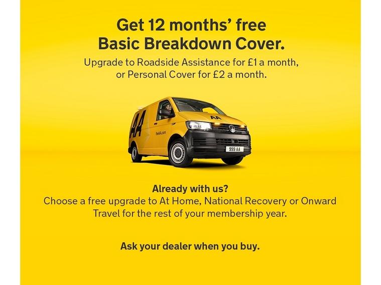 12 months free breakdown cover (or discounted upgrade if you're an AA member) and £75 off a Service & MOT. T&Cs apply