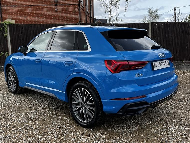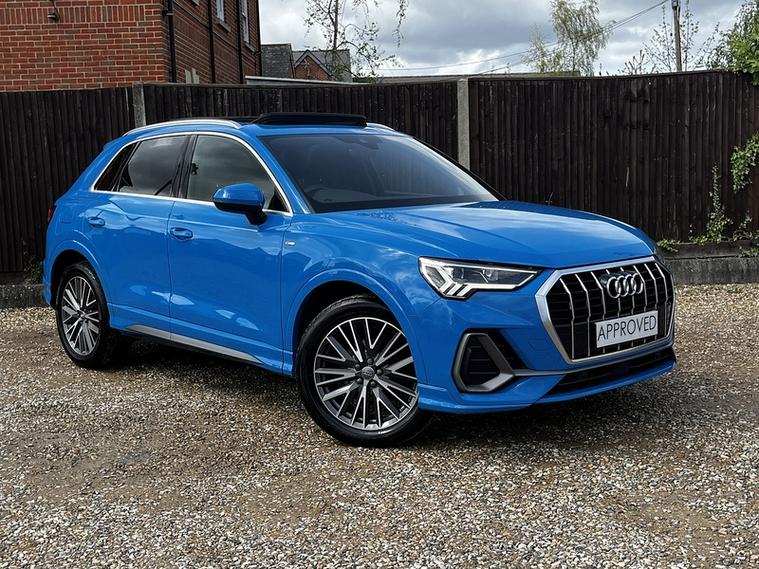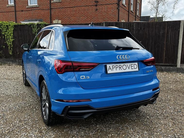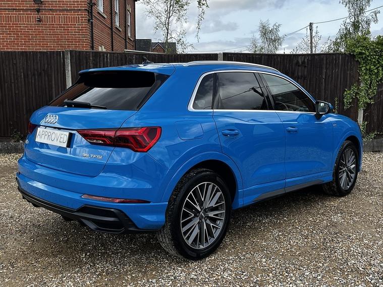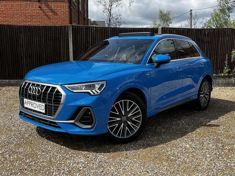 CELEBRATING OVER 40 YEARS IN BUSINESS. FAMILY RUN AND OPEN 7 DAYS A WEEK. OVER 50 USED CARS AND VANS AVAIALBLE TODAY ON OUR WEBSITE AT dealer's website HP AND PCP FINANCE AVAIABLE. APPLY THROUGH OUR WEBSITE SECURELY TODAY OR GIVE US A CALL ON 01635625929. CCS Car Sales Are Proud To Offer This Stunning Audi Q3 35 TFSI S-Line. Beautifully Presented In Turbo Blue With Upgraded Multi Spoke Two Tone Diamond Cut Alloy Wheels Wrapped In 4 Premium Tyres With Plenty Of Tread. This Q3 Boasts An Exceptional Specification. Spec Including Opening Panoramic Sunroof, Audi Comfort & Sound Pack Giving You Heated Seats, B&O Surround Sound System, Reverse Camera, Ambient Lighting Pack, Wireless Phone Charger Pad, Apple Car Play, Sat Nav, DAB Radio, Electric Windows, Electric Folding Mirrors, Electric Opening Boot, Cruise Control, Climate Control, Virtual Cockpit Display, Lane Assist, Power Steering, Remote Central Locking Supplied With 2 Keys. Along Side This Huge Specification Includes An Audi Main Dealer Service Record With Services Carried Out At 12, 000, 19, 000, 26, 000, 33, 000 & Last Service Completed At 52, 000 Miles. All Vehicles Pass A Thorough Pre Delivery Inspection Prior To Purchase With A Copy Of All Findings Given To The Purchaser. All Cars Provided With A Minimum Of 8 Months MOT And No Services Due Within 3 Months. Minimum 3 Months Warranty Included With All Vehicles. 12-, 24- And 36-Month Warranties Available.