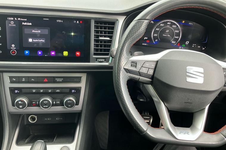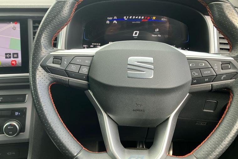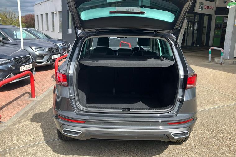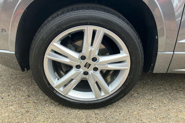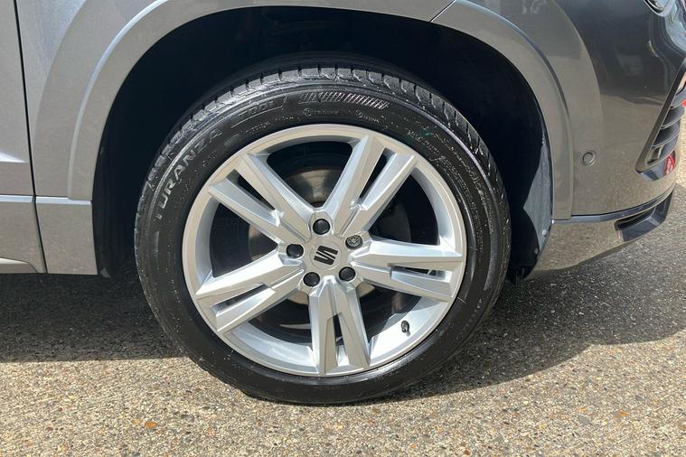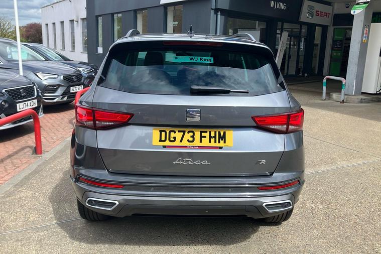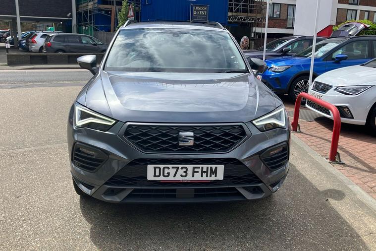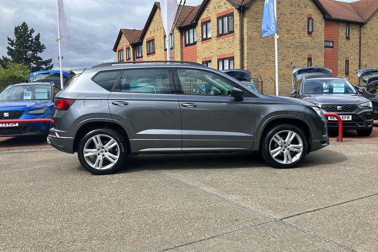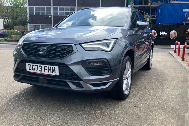 Introducing this stylish and modern metallic Rodium grey SEAT Ateca FR, first registered in October 2023. This used SUV has had just one previous owner and features a spacious interior with seating for five and a generous 510-litre boot, making it ideal for both family trips and everyday practicalities. Powered by a 1.5-litre petrol engine paired with an automatic transmission, it delivers a responsive 148hp, achieving a top speed of 126 mph and a combined fuel economy of 42.8 mpg. The FR trim brings a sporty flair, matched by eye-catching 18-inch Brilliant Silver alloy wheels. The SEAT Ateca is ULEZ compliant, ensuring it is ready for city driving now and in the future. Experience the perfect blend of comfort, style, and efficiency in a vehicle designed for those who demand more from every journey.