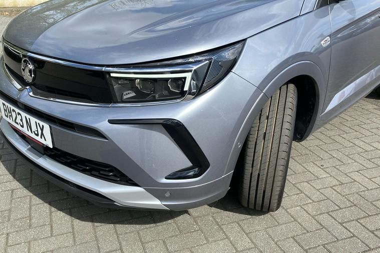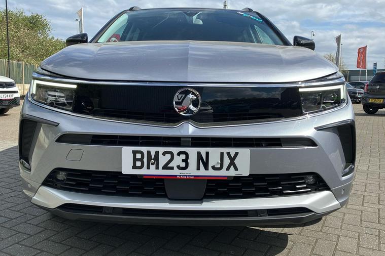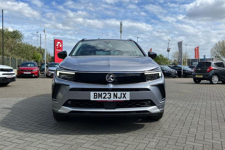 Presenting a used 2023 Vauxhall Grandland Elite in striking Metallic Vulcan Grey. This spacious SUV offers five doors and seating for five, making it ideal for families or those who value comfort and practicality. It features an easy-to-use automatic transmission and a smooth 1.2 petrol engine, producing 128 horsepower for confident driving. With a combined fuel efficiency of 44.1 mpg, it balances performance with economy. The Grandland Elite includes convenient highlights such as heated ergonomic front seats, a power tailgate with foot sensor, an advanced parking camera, and a premium navigation system. With an impressive boot capacity, there is ample space for all your journeys. First registered in March 2023 and owned by just one previous keeper, this car has been thoughtfully maintained. The Grandland Elite also meets the latest Euro 6 standards, making it compliant with London’s ULEZ restrictions. Discover comfort and style in this standout SUV.