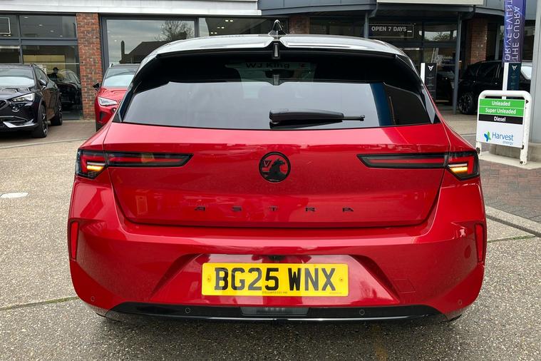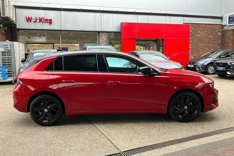 Presenting a used 2021 Vauxhall Astra Gs in striking Crimson Red metallic paint. This stylish five-door hatchback combines everyday usability with sporty design touches, including 17-inch black alloy wheels and dark tinted rear windows. Powered by a 1.2 turbocharged petrol engine offering up to 128 horsepower, it delivers a top speed of 130 mph while maintaining excellent combined fuel economy of 50.4 mpg. The interior provides comfortable seating for five and boasts a generous 422-litre boot. Modern features such as digital instrumentation, a panoramic parking camera, and heated front seats add to the driving experience. Practicality is enhanced by its flexible load area and user-friendly controls. With only one previous keeper, this Astra is a strong choice for those seeking a well-equipped and reliable hatchback. ULEZ compliant, it is ideal for city driving as well as longer journeys.