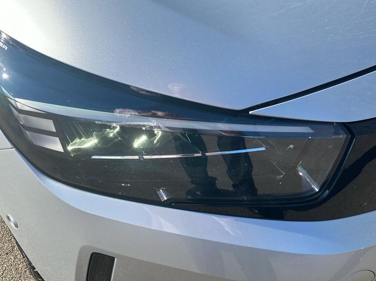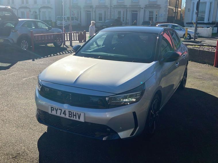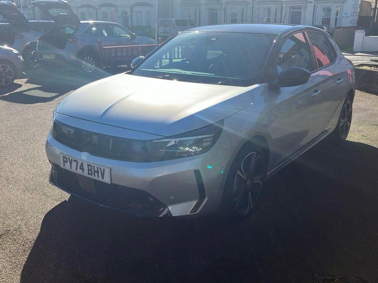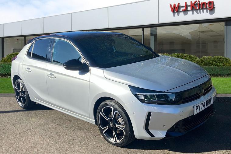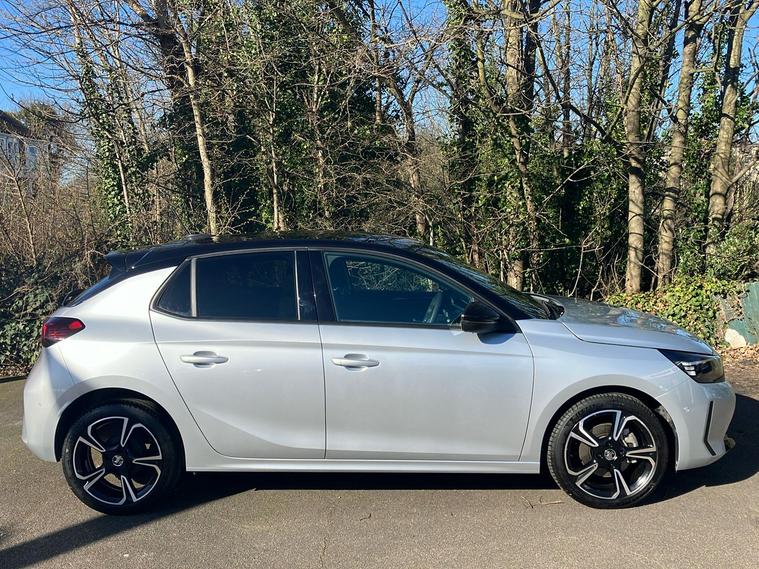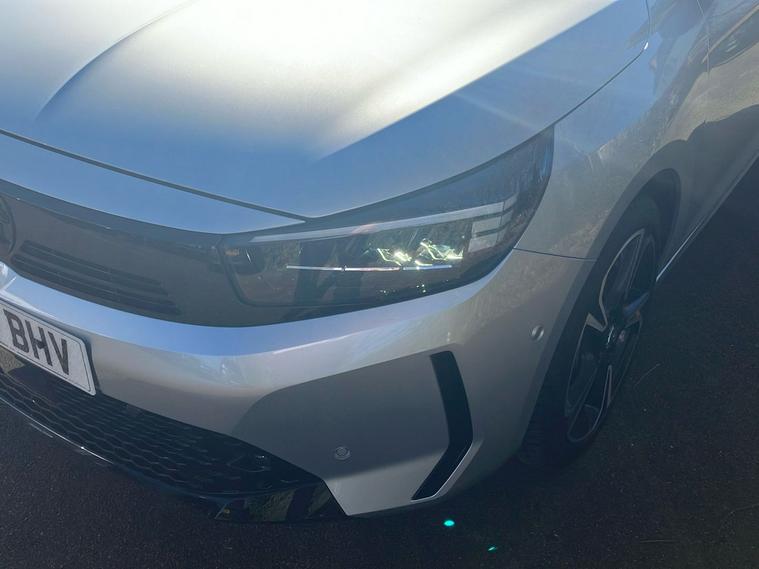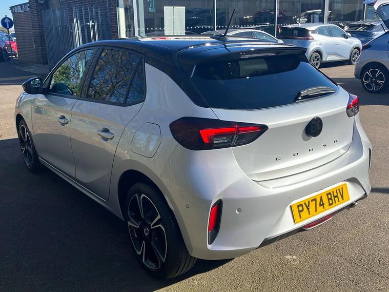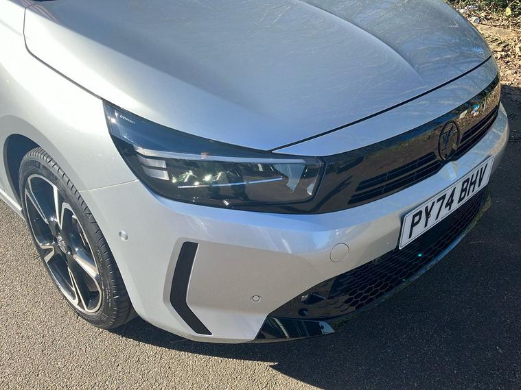 Presenting a 2023 Vauxhall Corsa Gs in eye-catching Crystal Silver metallic. This stylish five-door hatchback blends sporty looks with practical space, offering comfortable seating for five and an impressive boot capacity of up to 1, 118 litres with the seats folded. Powered by a 1.2-litre petrol engine producing 99hp, it delivers a combined fuel efficiency of 54.3mpg and a maximum speed of 120mph. Standout exterior features include 17-inch diamond-cut alloy wheels and a distinctive black roof, while the interior boasts a digital instrument cluster and a large 10-inch touchscreen multimedia system. This used example benefits from advanced driver assistance such as cruise control with intelligent speed limiter, front and rear parking sensors, side blind spot alert, and a rear parking camera. Registered in October 2024 and with only one previous keeper, this Corsa is also ULEZ compliant, making it ideal for city driving.