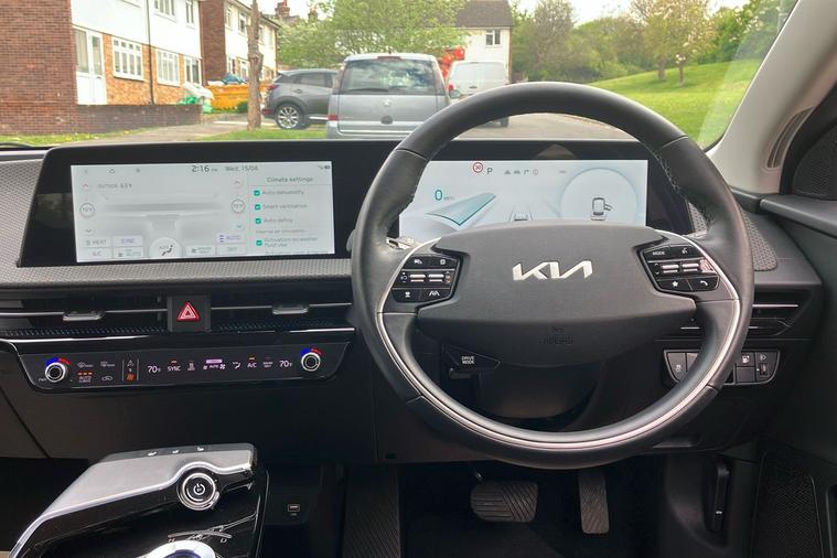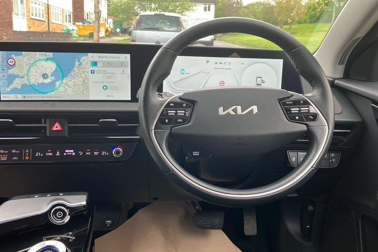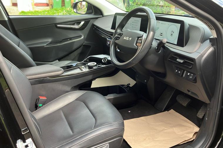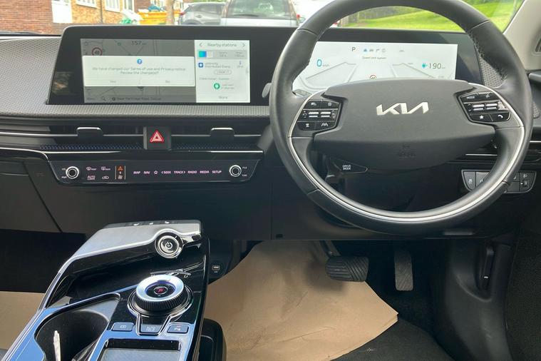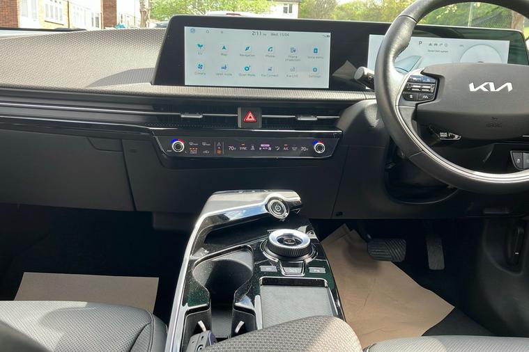 Introducing the 2021 Kia EV6 Air in a striking Midnight Black finish. As a fully electric hatchback, it delivers an impressive range of up to 328 miles on a single charge, making it perfect for both city commuting and longer journeys. This EV6 is stylish and practical, offering seating for five and a generous 490-litre boot for all your essentials. With a maximum power output of 225 bhp and a top speed of 114 mph, it combines efficiency with a lively driving experience. The interior is enhanced by features such as ambient lighting, a curved driver display, and both Android Auto and Apple CarPlay with voice control, ensuring comfort and convenience for every journey. Registered in January 2022 and with just one previous keeper, this Kia EV6 is ULEZ compliant—ideal for worry-free travel in London and beyond. Experience modern electric motoring at its finest.