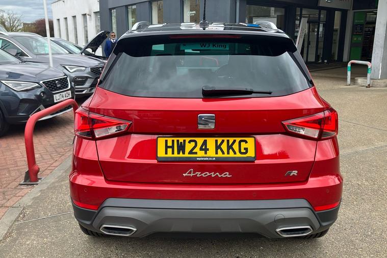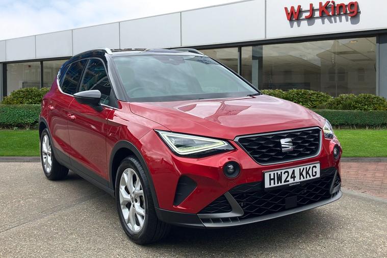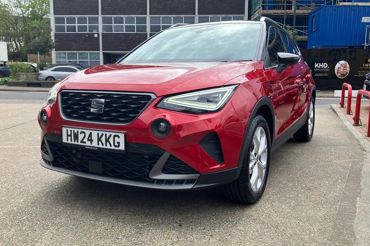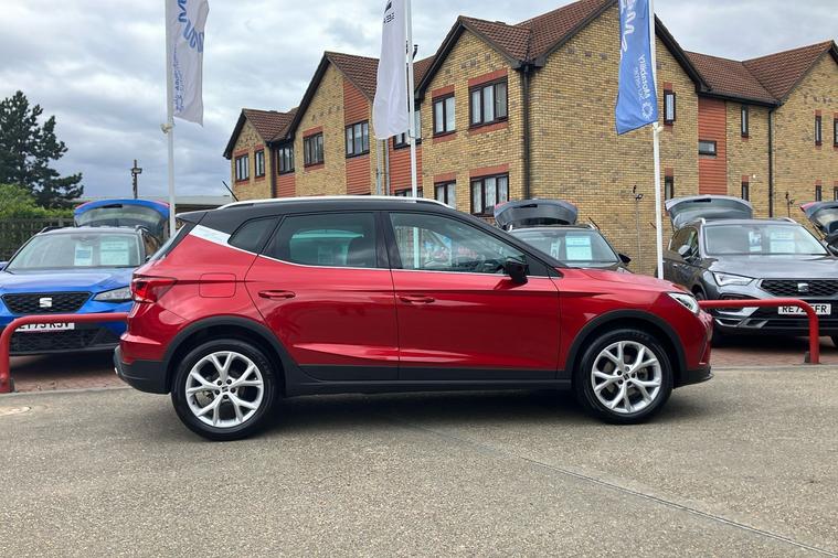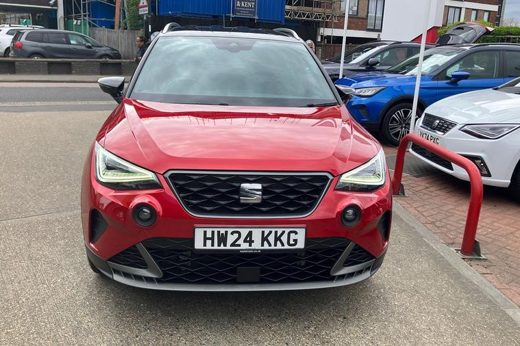 Experience style and practicality with this used SEAT Arona FR, registered in March 2024. Finished in striking Metallic Desire Red, this five-door SUV offers an engaging drive, matched with impressive efficiency – achieving up to 47.9 mpg combined. Powered by a 1.0 petrol engine with 108 hp and automatic transmission, the Arona delivers smooth performance and a top speed of 118 mph. With comfortable seating for five and a generous 400-litre boot, it’s a versatile choice for urban journeys and weekends away. Features such as 17-inch alloy wheels, dual zone climate control, rear parking sensors and wireless phone charging add a touch of modern convenience. This front-wheel drive model has had just one previous owner, and its Euro 6 rating ensures it is ULEZ compliant, making it ideal for city drivers looking to avoid charges. Discover a stylish, efficient and city-friendly SUV with this SEAT Arona FR.