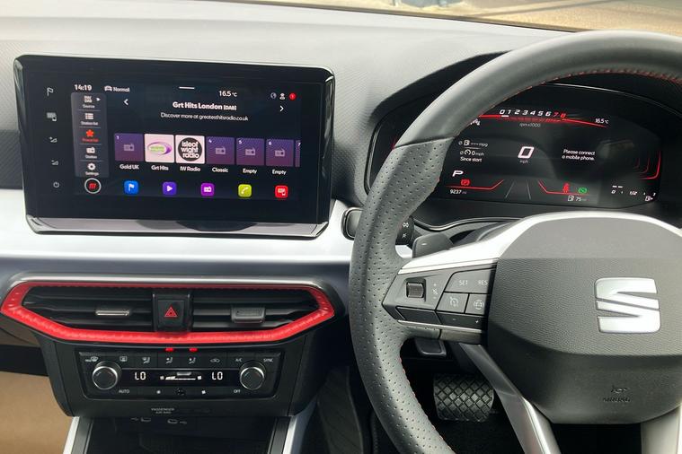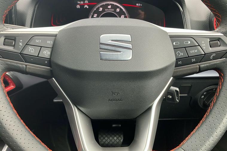 - Perforated Leather Flat-Bottomed Steering Wheel with Red Stitching and FR Logo with Leather Gear Knob and Handbrake