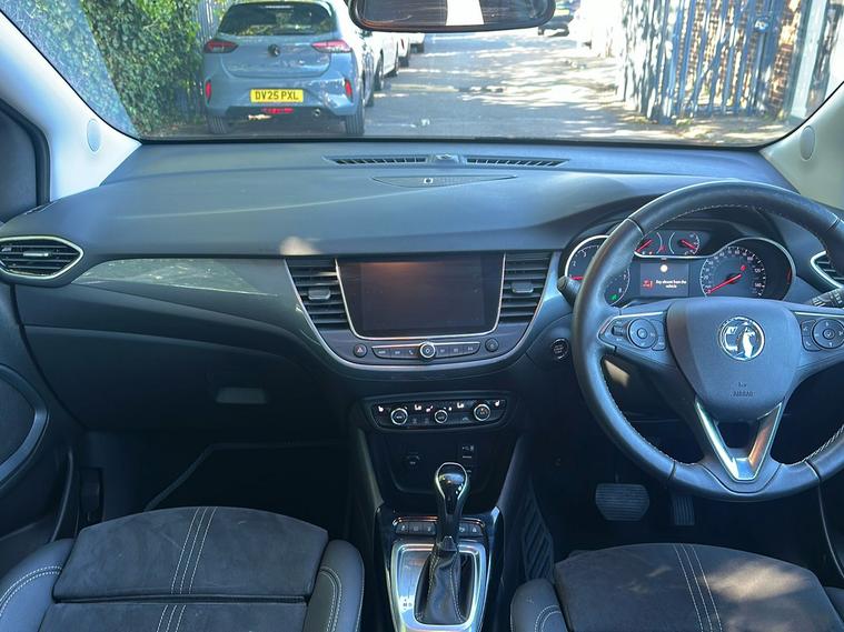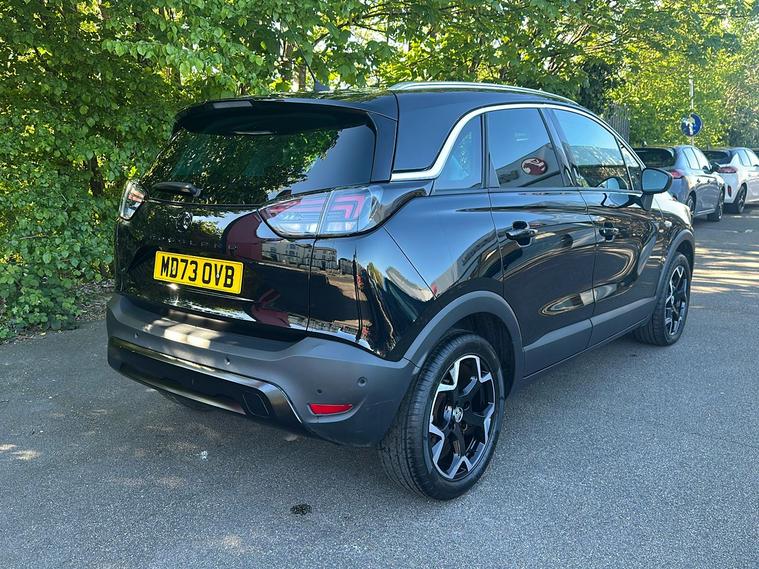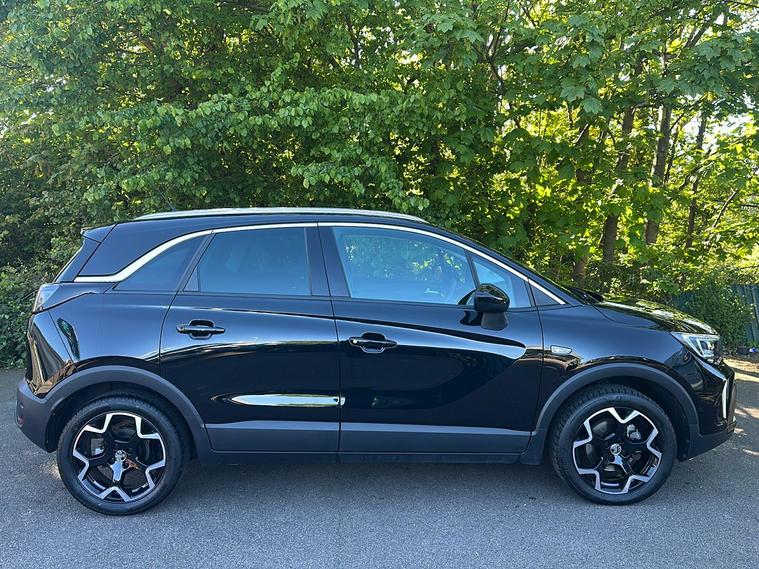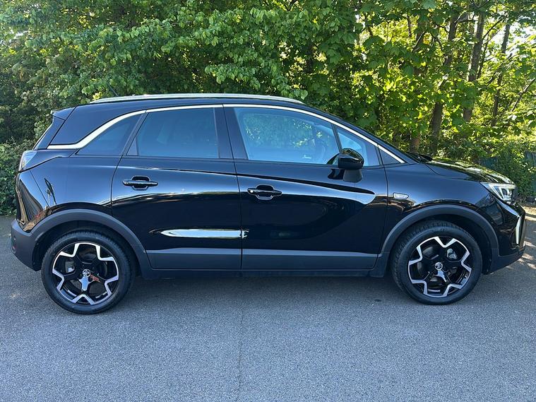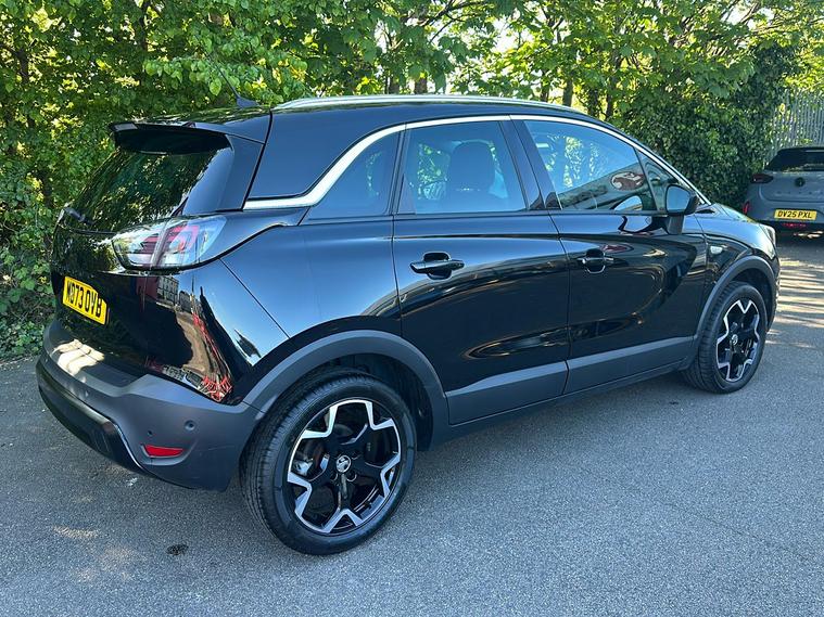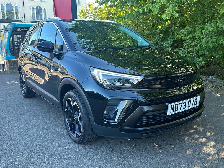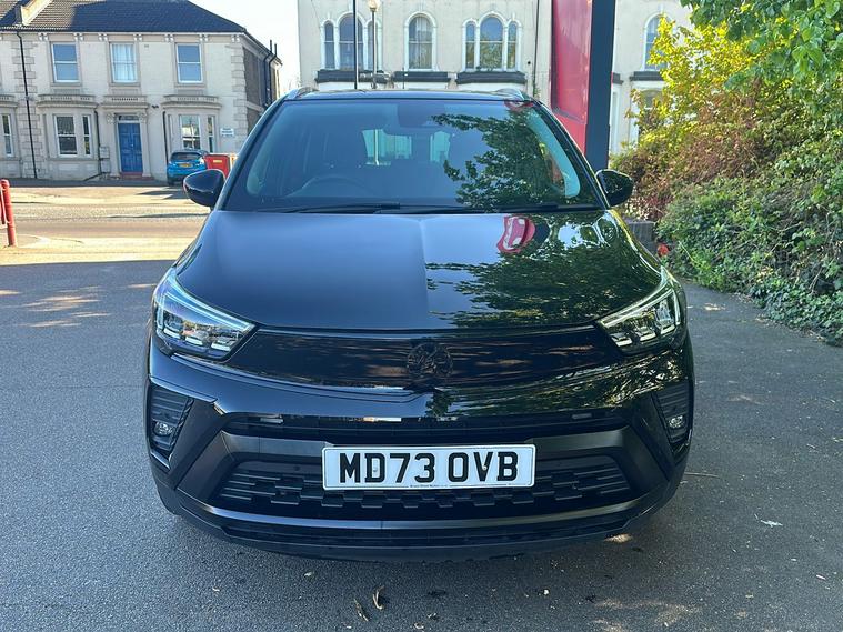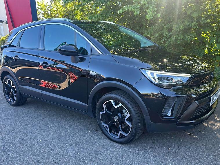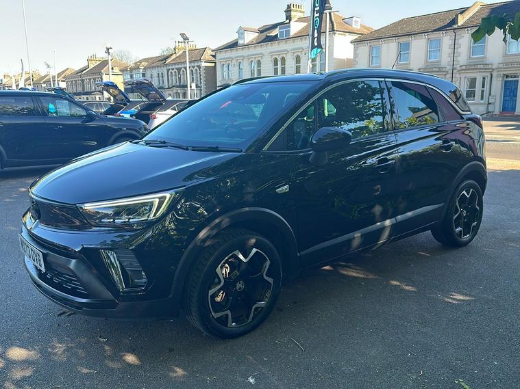 Introducing the Vauxhall Crossland Ultimate, a stylish used SUV first registered in November 2023 and finished in an eye-catching Metallic Diamond Black. Combining practicality and modern design, this vehicle comfortably accommodates five people with ample boot space of up to 1, 255 litres when you need it most. Powered by a responsive 1.2 Turbo petrol engine paired with an automatic gearbox, it delivers a smooth drive with 128 hp, achieving 0–62 mph in just 9.9 seconds and a top speed of 123 mph. Enjoy impressive fuel economy of up to 44.8 mpg (combined). With one previous keeper, the Crossland Ultimate offers a blend of safety and convenience features such as advanced park assist, panoramic rear view camera, lane departure warning, and a premium infotainment system. This vehicle meets Euro 6 standards, making it ULEZ compliant—perfect for city driving without compromise.