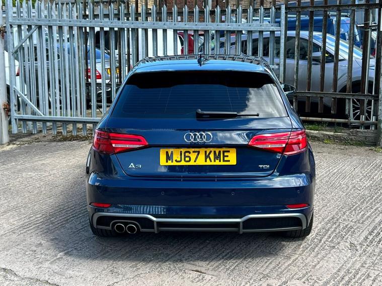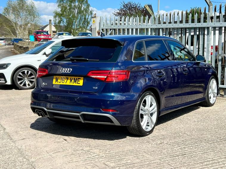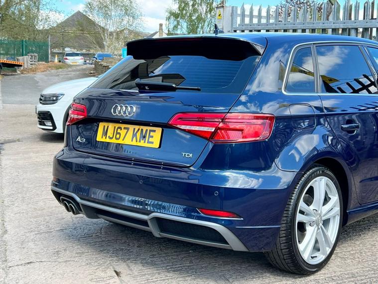 This Audi A3 TDI S line from 2017 boasts an exceptional service history, with its last service completed on 2026-04-10 at 120, 310 miles, and an MOT valid until November 2026, offering peace of mind for its next owner. This Euro 6 compliant 2.0L diesel model has had only one owner since new and comes with a 3 month warranty. Notable features include rear parking sensors for easier manoeuvring, an auto dimming rear view mirror that activates headlights automatically with the light and rain sensor, and dual zone electronic climate control to keep everyone comfortable. Connectivity is also a breeze with the integrated Bluetooth interface, and the striking LED headlights with dynamic rear indicators ensure excellent visibility. The A3 TDI S line offers a compelling blend of performance and practicality, accelerating from 0-60mph in just 8.6 seconds, demonstrating its responsive nature. The large boot space is a significant advantage for everyday use, easily accommodating shopping or luggage, setting it apart from many vehicles in its class. This combination of a well maintained vehicle, desirable features, and strong performance makes this Audi A3 a well rounded choice.
