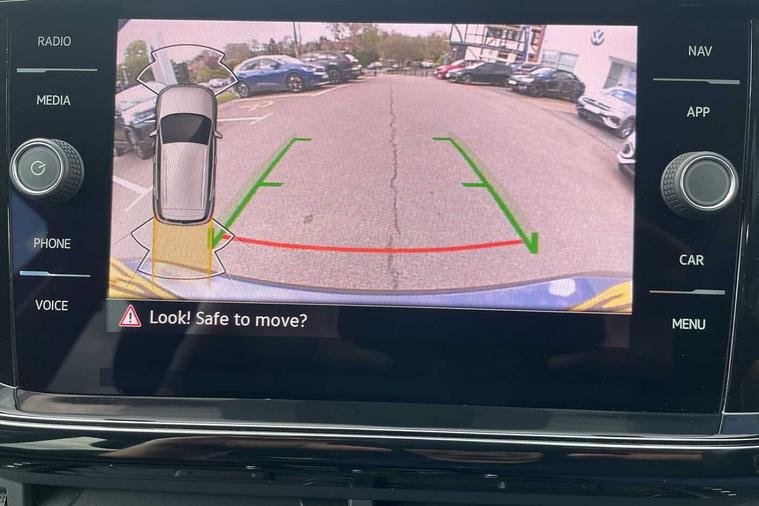 - audible with audio volume reduction when activated and optical parking display via vehicle audio system