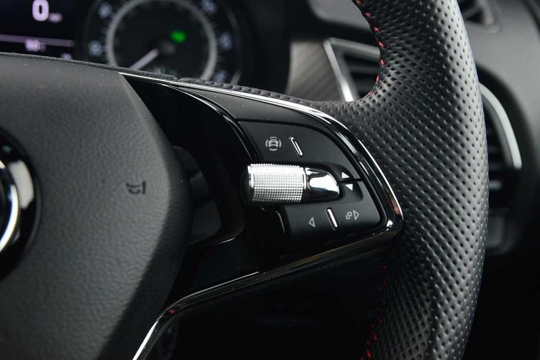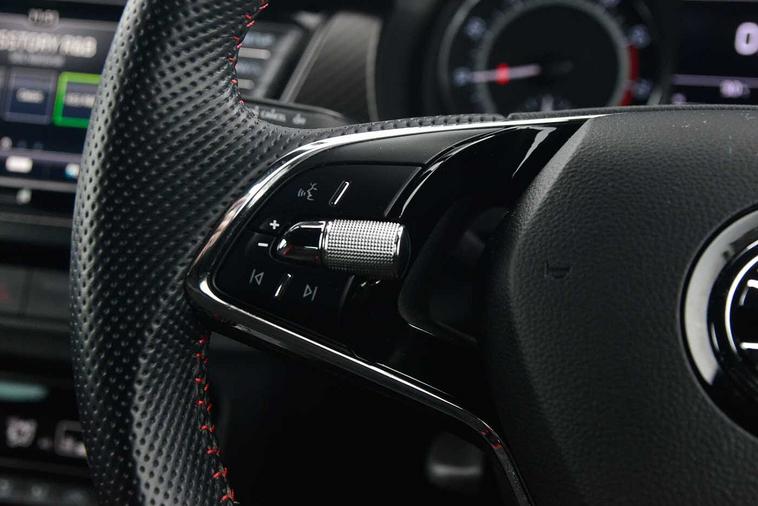 - 3 spoke multifunction sports leather steering wheel with red stitching