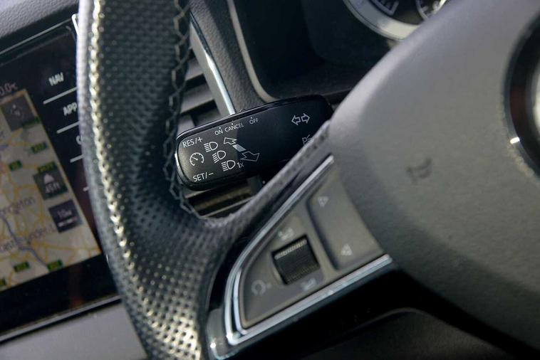 - 3 spoke leather sports multi-function steering wheel with silver stitching