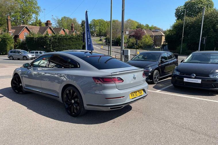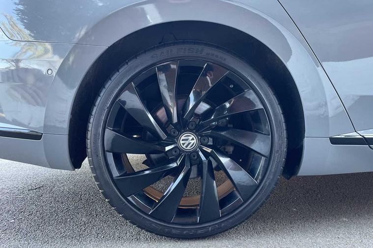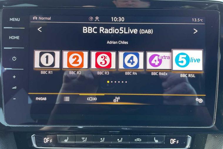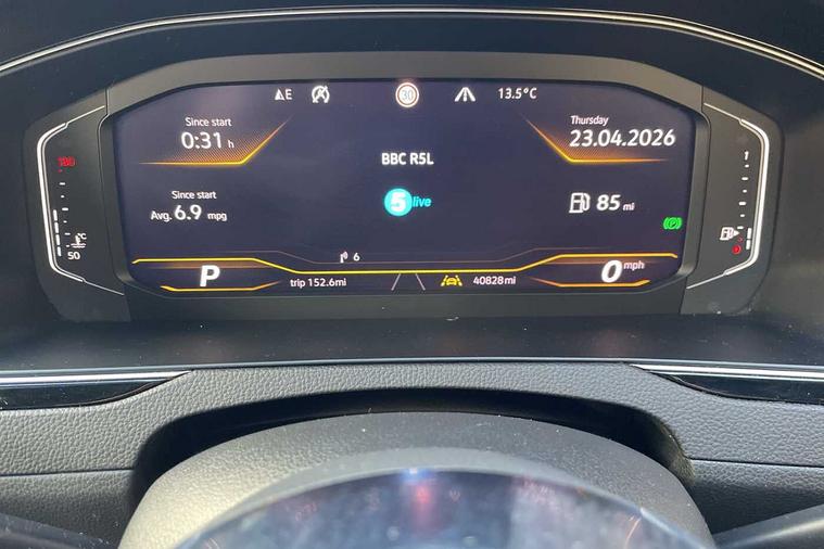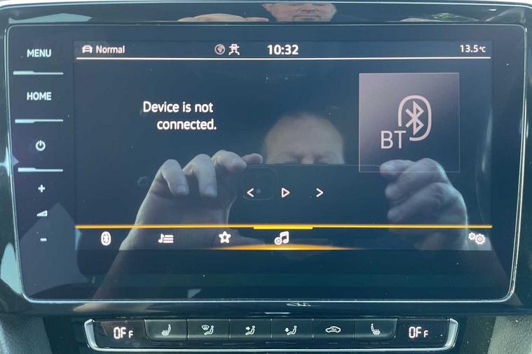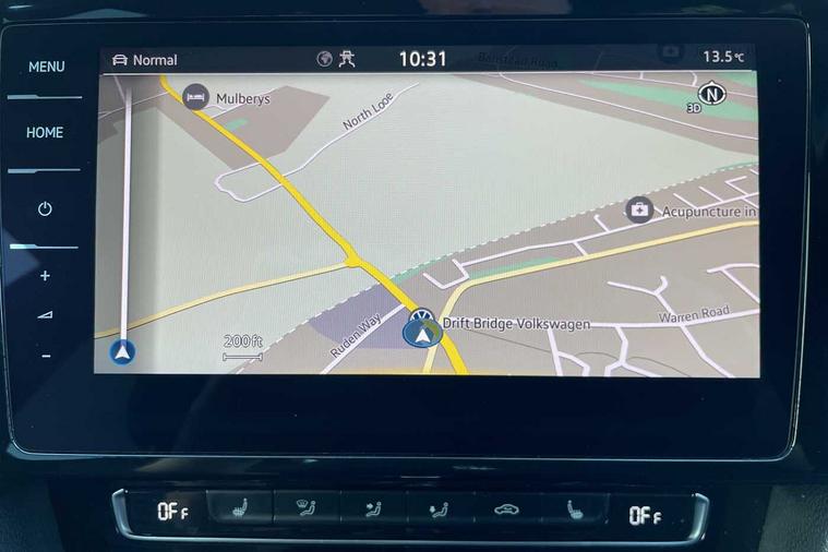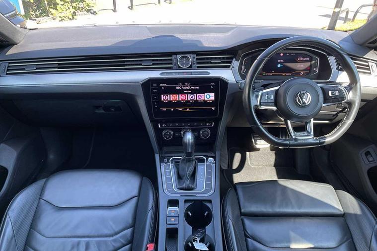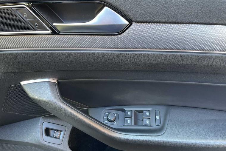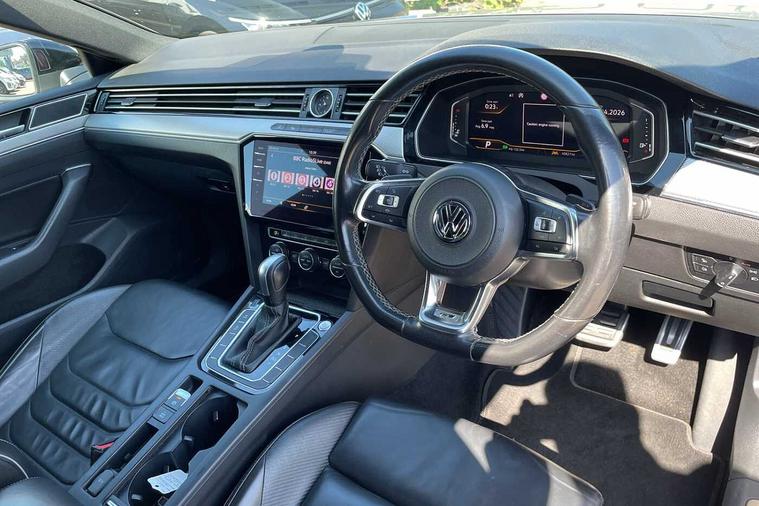 - 3 spoke leather multifunction steering wheel including paddle shift with Aluminium inserts and R-Line logo