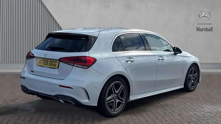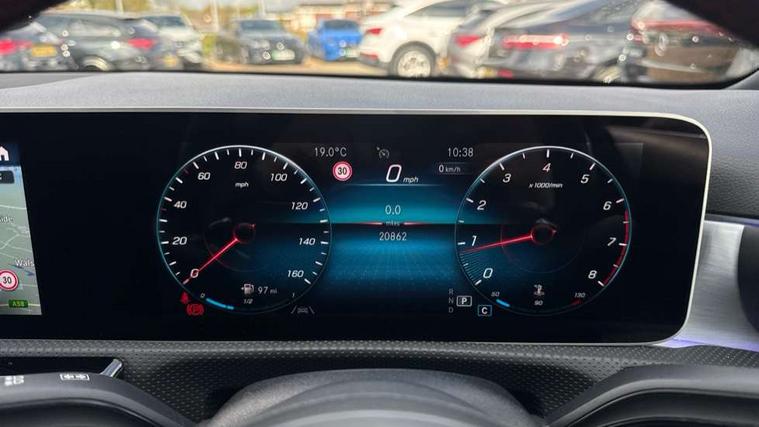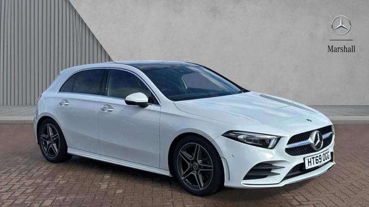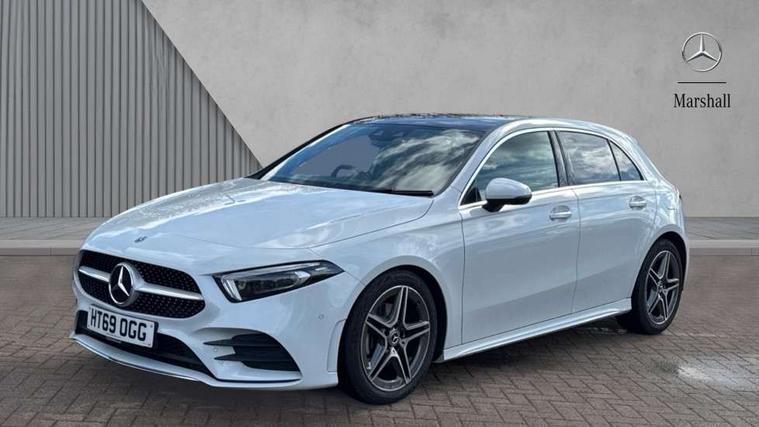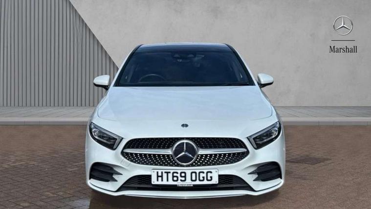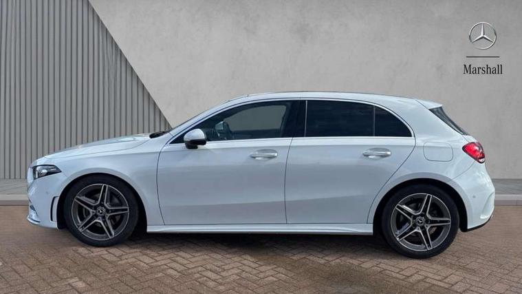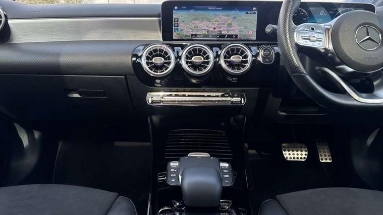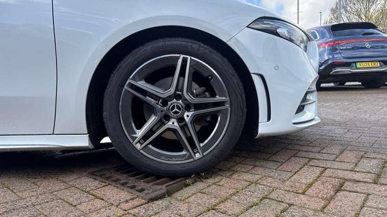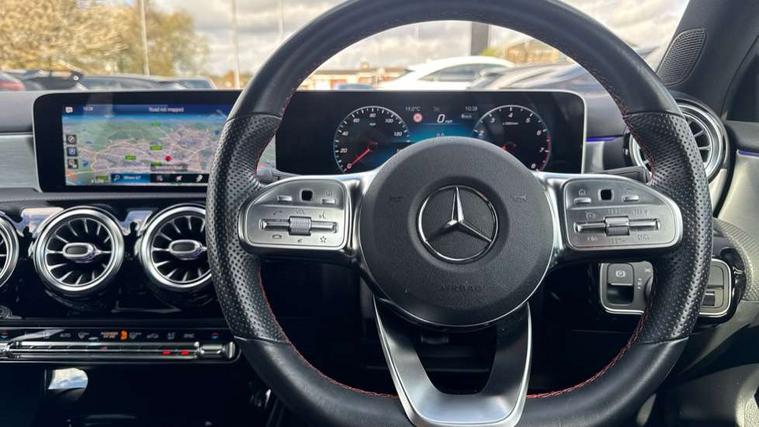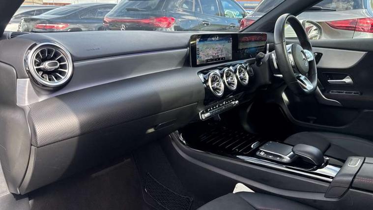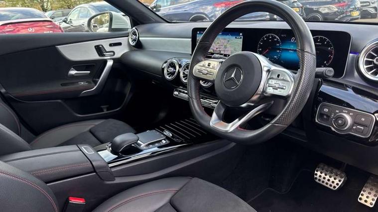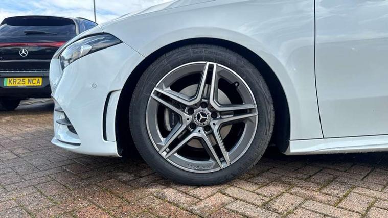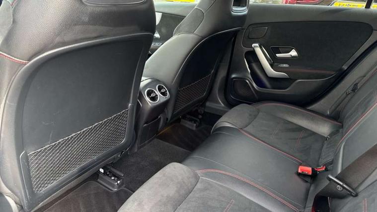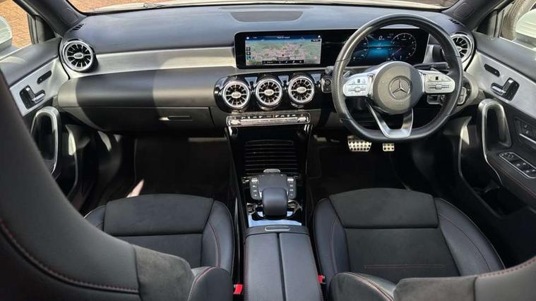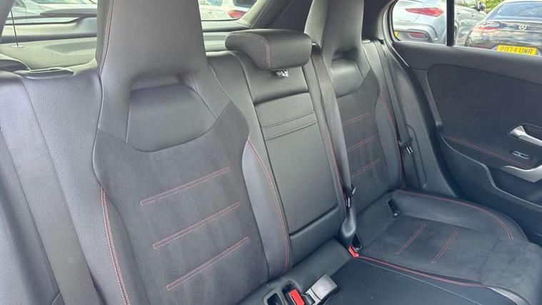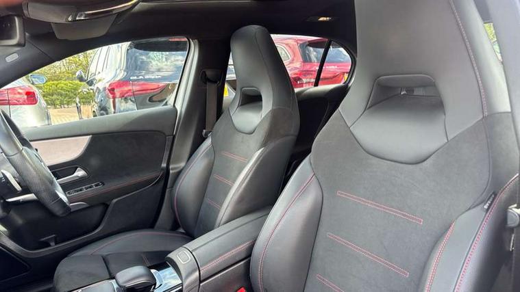 Light aluminium with longitudinal grain interior trim, Light and sight pack - A Class, Mirror package - A Class, Seat comfort pack - A Class, 18" AMG 5 twin spoke light alloy wheels in titanium grey with highsheen finish, Summer tyres, Tirefit sealant kit, Alarm system/interior protection/immobiliser, Keyless entry lock/unlock, Keyless Go, Remote central locking and crash sensor with emergency opening function, 10 speakers, 2 USB ports (type C) in rear stowage compartment and one in front of center console, DAB Digital radio, MBUX multimedia system with DAB digital radio and touchpad including satellite navigation, Mercedes-Benz advanced sound system - 225W, 3 rear 3 point seatbelts, ABS with Brake Assist, Active bonnet, Adaptive brake assist with hold function and hill start assist, Black seatbelts, Childproof locks manually operated for rear doors and electrically operated for rear power windows, Crash responsive emergency lighting, Driver and passenger head and side airbags, Drivers knee airbag, Dual stage driver/passenger airbags, Electronic parking brake, ESP curve dynamic assist, ESP with ASR, Front and rear seatbelt reminder, Front brake callipers with Mercedes Benz lettering, Tyre pressure monitoring system, Warning triangle and first aid kit, Window airbags, 4 Electric Front and Rear windows, Adaptive brake lights, AMG bodystyling - Front apron with splitter in chrome, rear apron with chrome trim and chrome visible trim elements in tailpipe, Black weather strip, Body colour bumpers, Body colour door handles, Body colour side skirt, Body coloured door mirrors, Chrome beltline trim, Diamond radiator grille with chrome pins and silver louvre + chrome insert, Electric adjustable and heated door mirrors with integrated LED side indicators, Exhaust system - Twin visible tailpipes in polished stainless steel, Headlamp assist automatic headlamp activation, Heated glass rear windscreen + timer control, Illuminated front door sill panels with Mercedes-Benz lettering, LED high performance headlamps with integrated LED daytime running lights, LED tail lamp, LED third brake light, Multibeam LED with adaptive highbeam assist plus, Panoramic sliding sunroof, Privacy glass, Radio aerial, Rain sensing windscreen wipers with two sensitivity settings, Rear fog lights, Rear wiper, Window line trim strip in chrome, 3 Spoke flat bottom leather multi function steering wheel with perforated leather in grip area, 40:20:40 split folding rear seats, Artico man-made leather/Microfibre Dinamica upholstery with red contrast stitching, Auto Mercedes-Benz child seat recognition sensor, Black air vents with surround in silver chrome, Black roof lining, Brushed stainless steel sports pedals with rubber studs, Controller on centre console with chrome surround, Electrically adjustable front memory seats including lumbar support, Floor mats with stitched edging and AMG lettering, Front centre armrest with storage compartment, Front seat backs luggage nets, Front seat cushion length adjustment, Galvanished gear shift paddles on steering wheel, Heated front seats, Height/reach adjustable steering column, Interior lighting - 64 colour Ambient lighting, ISOFIX and top tether child seat fixing points in two outer rear seats, Rear armrest with 2 cupholders, Rear head restraints, Seat occupancy sensor for front passenger seat, Spectacles compartment for driver, Sports seats with integrated headrests, Stowage compartment in centre console with retractable cover, Sunvisors with illuminated vanity mirrors, Touchpad on center console, Twin front cupholders, Two zone thermotronic luxury automatic climate control, 10.25" Digital instrument cluster display screen, 10.25" media display, 180 degree rear view camera with parking guidelines, Active lane keep assist, Active park assist with parktronic system including front and rear parking sensors, Attention assist, Brake pad wear indicator warning light, Direct steering, Dual bluetooth interfaces, DYNAMIC SELECT with a choice of driving modes (ECO, Comfort, Sport and Individual), ECO start/stop function, Fluid level warning indicator for fuel, oil, coolant and washer fluid, Hard-disk navigation, Hey Mercedes Voice activation, Lamp failure indicator, Mercedes me connect including emergency call system, accident recovery, breakdown management and maintenance, Outside temperature gauge, Owners manual in English, Pre-installation for car sharing, Pre-installation for Vehicle Monitoring, Pre-installation for Vehicle Setup, Preinstallation for Mercedes Benz link, Service indicator (ASSYST), Smartphone integration with Apple CarPlay and Android auto, Traffic sign assist, Trip computer, Wireless charging, Lowered comfort suspension, Rear axle multi-link,