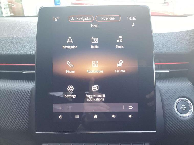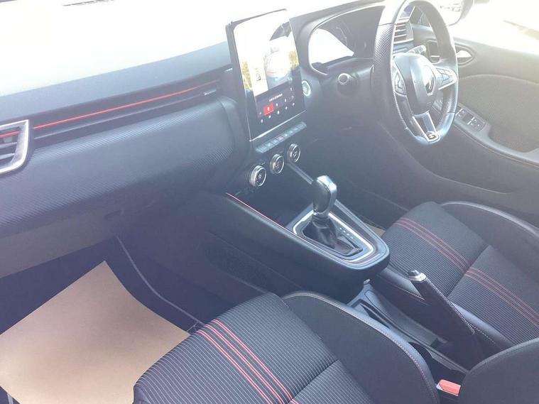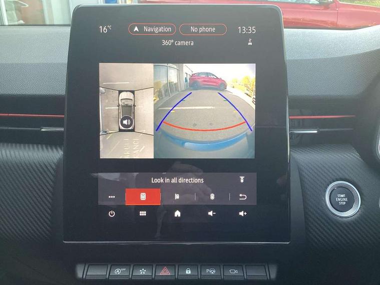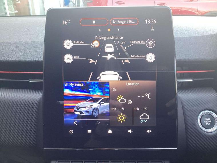 Parking Pack - Clio, 17" RS diamond cut alloy wheels, Anti-drill door locks, Central door locking, Child lock control of rear doors and windows, Deadlocking system, Hands free Renault card, Locking fuel filler cap, RAID (Renault Anti-Intruder Device) with automatic door locking, Remote central locking, Thatcham Cat 2 engine immobiliser, 4x20W Arkamys radio with bluetooth handsfree and USB, Aux-in socket, DAB Digital radio, Sound auditorium, 3 point seatbelts on all rear seats, ABS+EBD+Brake assist, Automatic emergency braking system, Curtain airbags, Distance warning alert, Driver and passenger front and side airbag deactivation, Driver/Front Passenger airbags, ESC - Electronic Stability Control + traction control, Front side airbags(head+thorax), Height adjustable driver's seatbelt, Hill start assist, Seatbelt warning, Tyre pressure warning, Automatic headlights + automatic windscreen wipers, Black headlamp surrounds, Body colour door handles, Body colour door mirrors, Body coloured bumpers, Body coloured rear spoiler, Chrome window surround, Drivers one touch window with anti-pinch feature, Electric adjustable/heated/folding door mirrors, Electric front windows, Electric rear windows, Exterior rear hidden door handles, Extra tinted glass on rear windows + tailgate, Full C-shape LED front and rear signature lighting, Full LED front and rear headlamps integrating daytime running lights at the front and rear, Gun Metal insert on lower side doors with Clio embossing, LED front fog lights, Rear fog lights, Rear wiper, RS Line badging, RS Line exterior styling, RS Line side marker chrome, RS Line sports front bumper, RS Line sports lower grill, Sports rear bumper sport with chrome oval exhaust pipe, Variable front intermittent wipers, 12V Accessory socket, 3 rear height adjustable headrests, 60/40 split rear seats, Air recirculation control, Auto climate control, Dark roof lining and aluminimum pedal set, Driver's seat height adjustment, Front cupholders, Front decor strip in red, Front door storage bin, Glovebox, Height adjustable front headrests, Height/reach adjust steering wheel, Isofix system on outer rear seats, Leather steering wheel, Multi function steering wheel, Pollen filter, RS branded top grain leather steering wheel, RS Line Interior trim including airvent stripe and gearshifter in red, RS line mixed upholstery, RS Line upholstery with TEP leather and vertical red stripes stitching, System for Restraint and Protection SRP-front seats, 9.3" Easy link navigation and smartphone replication, Bluetooth Handsfree Phone Connection, Cruise control + speed limiter, E-call, Eco mode, Gear change indicator, Lane departure warning system, Lane keep assist, Over speed prevention, Push button starter, Rear parking sensors, Smartphone cradle, Traffic sign recognition, Trip computer, Variable assistance electric PAS,