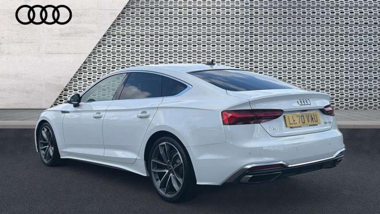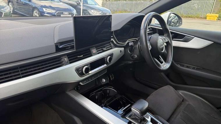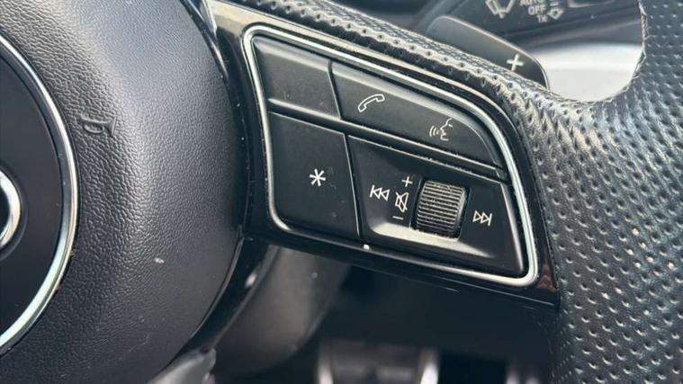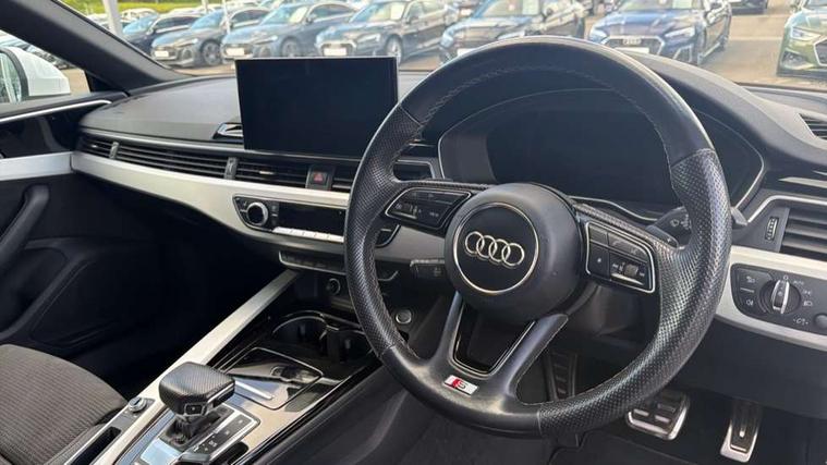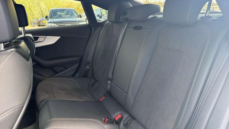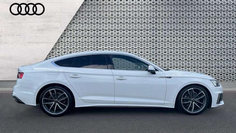 Matt brushed aluminium inlays, LED interior light pack - A5/RS5, Tyre repair kit, Anti theft alarm system, Anti theft wheel bolts, Immobiliser, Keyless Go, Remote central locking, 8 passive loudspeakers, CD player, DAB digital radio reception, Two additional USB ports for rear passenger in rear centre console, Two SDXC card slots, 3x3 point rear seatbelts, 6 airbags - Driver, front passenger, curtain and side airbags, Electromechanical parking brake, Electronic Stabilisation Control (ESC) including ABS, ASR and EDL, Front passenger airbag deactivation, Height adjustable front seatbelts, Hill hold assist, Multi collision brake assist, Pop-up bonnet for pedestrian protection, Seatbelt monitoring, Tyre pressure warning, Variable restraint system, Warning triangle and first aid kit, Audi matrix LED headlights with LED rear lights + dynamic front and rear indicators, Auto dimming rear view mirror, Body colour bumpers, Body colour door handles, Body colour front spoiler lip, Body colour side sill trim, Body coloured door mirrors, Electric adjustable heated door mirrors, Electric folding door mirrors, Electric front windows, Front fog lights, Honeycomb structure radiator grille in grained matt black, Matt aluminium silver tailpipe trim, Privacy glass, Rain and light sensors, S line badges on front wings, S line front and rear bumpers with side skirts, S Line rear diffuser in matt titanium black with trim strip in matt aluminium silver, Side air inlets in grained matt black with matt aluminium silver inlay, Towbar preparation, Windscreen with acoustic glazing, 4 way electric lumbar support for driver and front passenger, 40/20/40 split folding 3 seater rear bench seat, Adjustable steering column, Black cloth headlining, Black perforated leather gearknob, Contrast stitching on seats, steering wheel and gear lever gaiter, Deluxe 3 zone electronic climate control, Front centre armrest, Front head restraints, Front/rear floor mats, Heated front seats, Illuminated door sill trim with S logo, ISOFIX child seat mounting and top tether, Luggage compartment mat, Manual seat adjustment, Rear headrests, Stainless steel pedals, Sunvisors with vanity mirrors, Tool kit, Audi connect safety and service (e-call), Audi drive select (Auto, Comfort, Dynamic, Efficiency and Individual), Audi parking system plus with front and rear sensors, Audi phone box with wireless charging, Audi smartphone interface, Audi virtual cockpit - 12.3" full colour digital instrument cluster, vehicle/engine speed, Radio/media information+Driver assistance systems, Automatic start-stop system with coasting functionality and efficiency programme, Bluetooth interface, Electro-mechanical power steering, Email, calendar and text messages displayed via MMI, MMI nav+ with MMI touch - 10.1" high resolution MMI display, touch sensitive, 3D map, route/country info, dynamic route guide, personal route assist, Power operated tailgate, Rear view camera, Service interval indicator, Voice control system, Diesel particulate filter, Sports suspension lowered by 23mm,