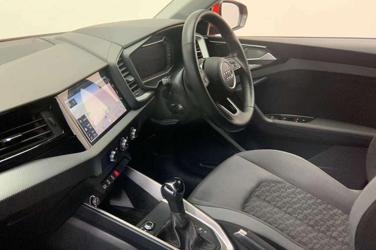 Aluminium trim for control switches, air vents and digital instrument cluster, Silver grey accent areas including air vents, door handle recesses and centre console in diamond paint finish, Slate grey inlays polygon structure in fine paint finish, Anti theft alarm, Anti theft wheel bolts and loose wheel warning, Audi pre-sense front with pedestrain and cyclist recognition, Immobiliser, Remote central locking with 2 remote folding keys, 1 x SDXC card reader, 1 x USB type C and 1 USB type A charging points, Audi music interface, Bluetooth audio streaming, DAB Digital radio, MMI radio plus with 8.8" colour MMI display screen and MMI touch, 3x3 point rear seatbelts, Brake assist function, Driver and front passenger airbag with front side and head airbags, Electronic Stability Control including ABS, EBD, ASR and EDL, Front and rear seatbelt reminder, Front passenger airbag deactivation switch, Hill hold assist, Seatbelt height adjustment for front seats, Seatbelt monitoring, Tyre pressure warning light, Warning triangle and first aid kit, Auto dimming rear view mirror, Body coloured bumpers, Body coloured door mirrors, Electric front and rear windows, Front side air inlets in grained matt black and C frame in titanium black, Heat insulating glass windscreen and side windows, Heated rear windscreen, LED headlights with LED rear lights + dynamic rear indicators, Radiator grille in matt titanium black, Radiator protective grille frame in matt aluminium silver, Rain and light sensors, Rear fog lights, Rear wiper, Scandium grey tailpipe trim, Side front spoiler lips in grained matt black, Titanium black matt diffuser, 12V socket in centre console with two cup holders, 3 rear seats, Door sills trims with aluminium inlays, Driver and passenger seat with manual height adjust with forward and backwards adjustment, Front head restraints, Front/rear floor mats, Height and reach adjustable steering wheel, Illuminated glovebox, ISOFIX child seat mounting in front passenger and rear outer seats, Leather gear knob with aluminium trim, Leatherette handbrake grip, Luggage compartment light with front and rear reading lights, Lumbar adjustment for front seats, Novum cloth upholstery with front sport seats, Rear head restraints, Split folding rear seats, Titanium grey cloth headlining, 10.25" Digital instrument cluster display screen, Audi connect safety emergency and service including E-call, Audi drive select, Audi smartphone interface, Automatic start/stop system, Bluetooth interface, Driver's information system, Electromechanical power steering, Lane departure warning system, Service interval indicator, Speed limiter, Voice control system, Washer fluid level indicator, Dynamic suspension,