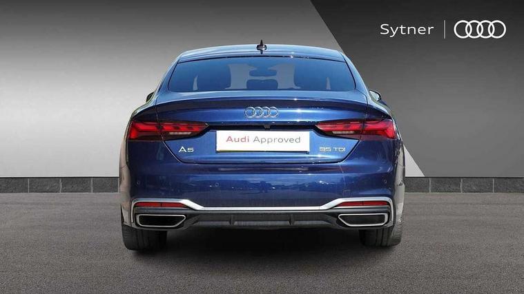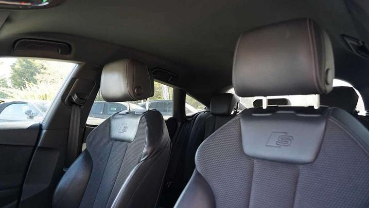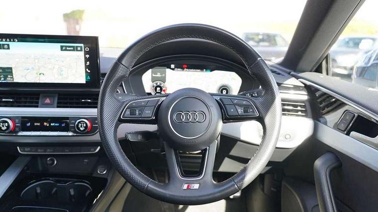Matt brushed aluminium inlays, LED interior light pack - A5/RS5, Tyre repair kit, Anti theft alarm system, Anti theft wheel bolts, Immobiliser, Keyless Go, Remote central locking, 8 passive loudspeakers, CD player, DAB digital radio reception, Two additional USB ports for rear passenger in rear centre console, Two SDXC card slots, 3x3 point rear seatbelts, 6 airbags - Driver, front passenger, curtain and side airbags, Electromechanical parking brake, Electronic Stabilisation Control (ESC) including ABS, ASR and EDL, Front passenger airbag deactivation, Height adjustable front seatbelts, Hill hold assist, Multi collision brake assist, Pop-up bonnet for pedestrian protection, Pre sense city, Seatbelt monitoring, Tyre pressure warning, Variable restraint system, Warning triangle and first aid kit, Audi matrix LED headlights with LED rear lights + dynamic front and rear indicators, Auto dimming rear view mirror, Body colour bumpers, Body colour door handles, Body colour front spoiler lip, Body colour side sill trim, Body coloured door mirrors, Electric adjustable heated door mirrors, Electric folding door mirrors, Electric front windows, Front fog lights, Honeycomb structure radiator grille in grained matt black, LED daytime running lights, Matt aluminium silver tailpipe trim, Privacy glass, Rain and light sensors, S line badges on front wings, S line front and rear bumpers with side skirts, S Line rear diffuser in matt titanium black with trim strip in matt aluminium silver, Side air inlets in grained matt black with matt aluminium silver inlay, Windscreen with acoustic glazing, 4 way electric lumbar support for driver and front passenger, 40/20/40 split folding 3 seater rear bench seat, Adjustable steering column, Black cloth headlining, Black perforated leather gearknob, Contrast stitching on seats, steering wheel and gear lever gaiter, Deluxe 3 zone electronic climate control, Front centre armrest, Front head restraints, Front/rear floor mats, Heated front seats, Illuminated door sill trim with S logo, ISOFIX child seat mounting and top tether, Luggage compartment mat, Manual seat adjustment, Rear headrests, Stainless steel pedals, Sunvisors with vanity mirrors, Tool kit, Audi connect safety and service (e-call), Audi connect with Amazon Alexa Integration, Audi drive select (Auto, Comfort, Dynamic, Efficiency and Individual), Audi parking system plus with front and rear sensors, Audi phone box with wireless charging, Audi smartphone interface, Audi virtual cockpit - 12.3" full colour digital instrument cluster, vehicle/engine speed, Radio/media information+Driver assistance systems, Automatic start-stop system with coasting functionality and efficiency programme, Bluetooth interface, Electro-mechanical power steering, Email, calendar and text messages displayed via MMI, MMI nav+ with MMI touch - 10.1" high resolution MMI display, touch sensitive, 3D map, route/country info, dynamic route guide, personal route assist, Power operated tailgate, Rear view camera, Service interval indicator, Voice control system, Diesel particulate filter, Sports suspension lowered by 23mm,