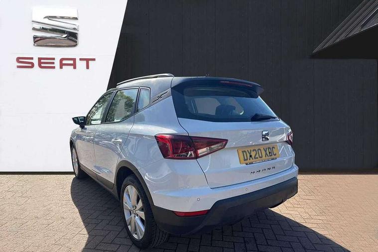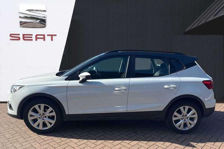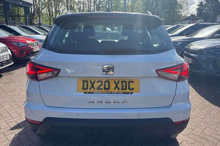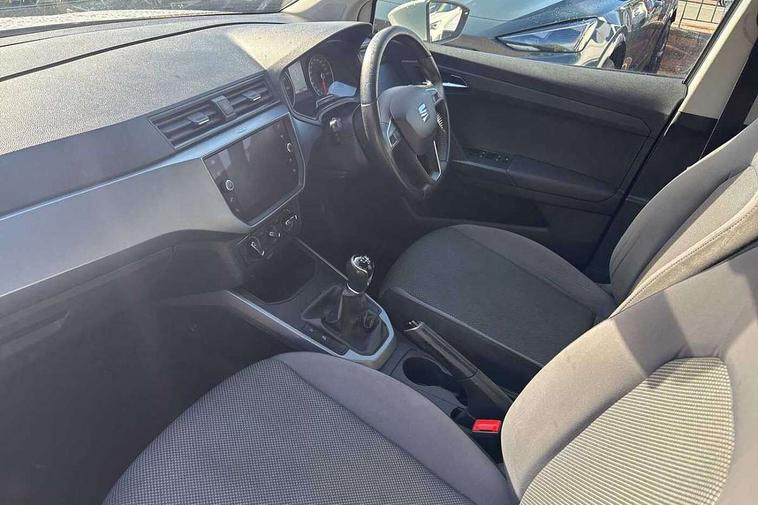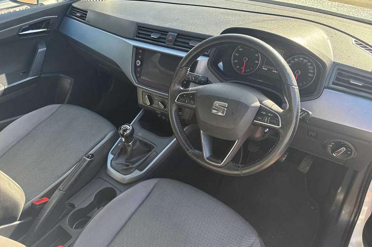 Interior chrome line trim, Plastic grey dashboard, Connectivity pack plus - Arona, Interior chrome pack - Arona, 17" Dynamic alloy wheels, 2 folding remote keys with window open/close function, Electronic engine immobiliser, Locking wheel bolts, Remote central locking + deadlocks, 6 speakers, Bluetooth interface for hands free and audio streaming, DAB digital radio and AM/FM radio, Steering wheel mounted audio controls, 3 point seatbelts on all rear seats, ABS, Active front headrests, Child locks on rear doors, Driver and front passenger airbags with front passenger airbag de activation, front side and curtain airbags, Electronic stability control, Emergency Brake Assist (EBA) and front assist, Front and rear seatbelt reminder, Hill hold control, Multi-Collision braking, Tiredness recognition system, Traction control, Tyre pressure monitoring system, Anti theft roof antenna, Automatic activation of hazard warning lights, Automatic headlights, Black roof rails, Black window trims, Body coloured bumpers, Body coloured door handle inserts, Body coloured door mirrors, Chrome front grille frame, Dimming rear view mirror, Electric adjustable door mirrors, Electric front/rear windows with one touch/auto up/down, Electric headlight adjustment, Front fog lights with cornering function and rear fog light, Hidden exhaust pipe, LED daytime running lights, LED rear tail lights and licence plate lights, Rear window wash/wipe, Visible VIN plate, Windshield wiper with intermittent control and potentiometer, 2 cupholders, 60/40 split folding rear seat, Air conditioning, Cloth upholstery, Double boot floor, Driver sunvisor with covered mirror + card holder, Dust/pollen filter, Front courtesy light with front reading lights, Gear shift indicator, Grey interior roof, Height adjustable front seats, Height/reach adjustable steering column, Illuminated boot, Instrument lighting with brightness control, Interior footwell lighting, ISOFIX points in outer rear seats with top tether anchorage points, Leather steering wheel/gear knob/handbrake, Multi-colour ambient interior lighting, Passenger sunvisor with vanity mirror, Two front and three rear height adjustable headrests, 'Lights On' Reminder warning buzzer, Cruise control, Digital clock, Electric speed sensitive power steering, Full Link Smartphone Integration with Mirror Link, Apple Car Play, Google Android Auto with USB cable for Apple and Android compatibility, Low fuel warning light, Outside temperature display, Rear parking sensor, RPM counter, Trip computer, Comfort suspension,