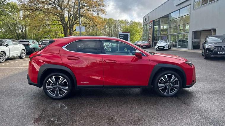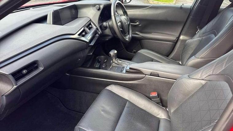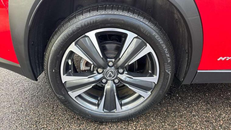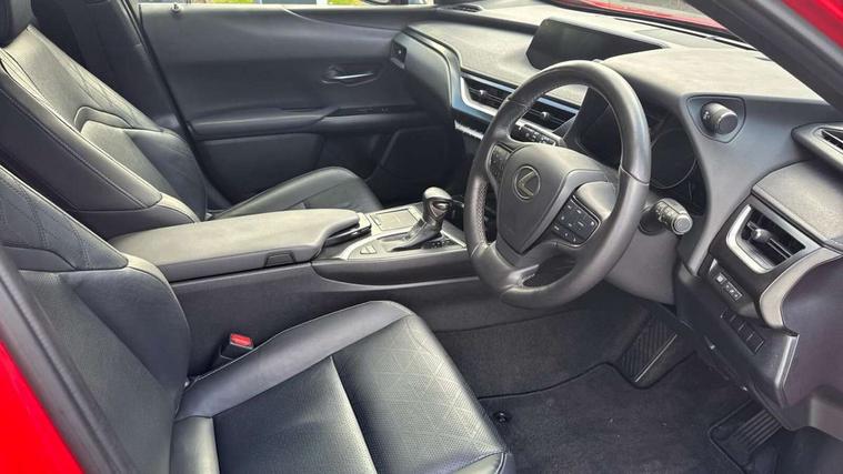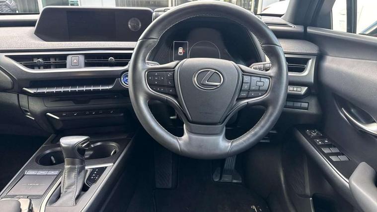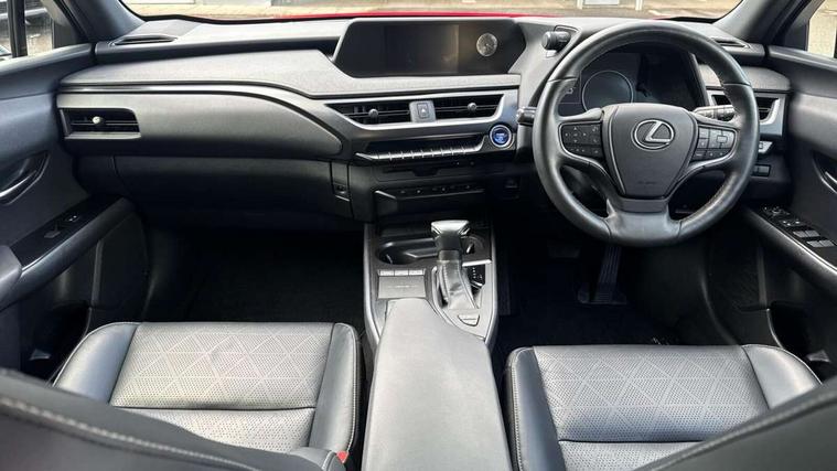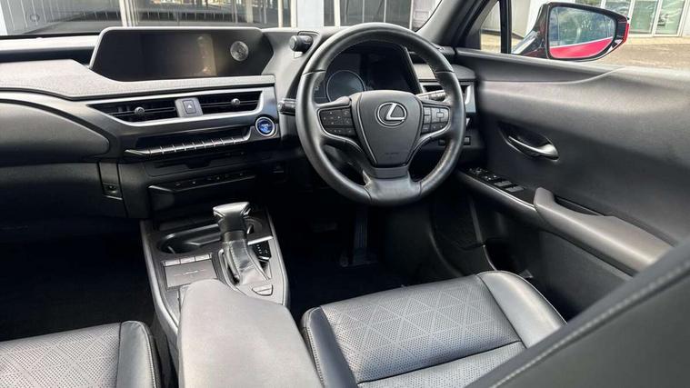 4 driving modes EV/Eco/Normal/Sport, 7" Lexus media display, 7" TFT instrument cluster, Analogue clock with GPS function, Apple car play/Android Auto, Compatible mobile phone bluetooth with audio streaming, E-call, Electric power steering (EPS) with speed sensitive features, Lane change flasher function, Lexus link connected services, Lexus safety systems + includes dynamic radar cruise control, pre collision system day and night, lane tracing assist, road sign assist, Push button start, Remote touch interface, Reversing camera with back guide lines, Trip computer, Vehicle Dynamics Integrated Management (VDIM), Vehicle Stability Control (VSC), 2 front USB and 2 rear USB charging points, 6 speakers, AM/FM and DAB radio, AUX socket with VTR compatibility, CD player, Acoustic windscreen, Aero stabilising arch mouldings, Aero stabilising rear lights, Aero ventilated wheels, Aluminium roof rails, Bi-LED (low and high beam) headlights with Auto High Beam (AHB), Body adhesive, laser screw welding and laser brazed roof structure, Electric adjustable/heated door mirrors, Front and rear one touch power windows, with anti-jam protection, Headlight cleaners, LED daytime running lights, LED front and rear fog lights, LED tail lights, Light green UV glass, Rain sensor windscreen wipers, Rear wiper, Shark fin roof aerial, Single hidden exhaust pipe, Towing preparation, 12V accessory port centre console and luggage compartment, 2 cup holders in the front and rear centre console, 2 x folding shopping bag hooks in boot, 2 x sun visors with vanity mirror and lamp, 4 x tie down hooks in the boot, 5 headrests, 6 way driver and passenger manually adjustable front seats, 60/40 split folding rear seat, Card holder installed in driver and passengers sun visors, Centre armrest with storage, Driver and passenger door pocket, Dual zone electronic climate control + Nano-E humidity sensor, Glovebox, Leather gear lever, Leather steering wheel, LED interior illumination, Map pockets in the rear of passenger's front seat, Premium fabric upholstery, Rear air vents with 2 USB chargers, Rear armrest with 2 cupholders, Storage tray under audio panel, Textile carpet mats, Tilt/reach adjustable steering column, Under deck storage, Under desk side storage, 2 x Isofix child rear seat restraints, 3x3 point rear seatbelts, Anti-lock braking system (ABS), BAS (Brake Assist System), Driver and front passenger 2 stage airbag, Driver and front passenger knee airbag, Driver/front passenger side airbags, EBD - Electronic brakeforce distribution, ECB (Electronically Controlled Brake System), Electric parking brake, Front adjustable seatbelt anchor points, Front and rear curtain shield airbags, Front outer seatbelt+pre-tensioners, force limiter+tension reduction: 3-point with active safety link to PCS, Hill start assist control (HAC), Passenger airbag cut-off device, Rear outer seatbelt+pre-tensioners, force limiter+tension reduction: 3-point with active safety link to PCS, Centre belt w/o pre tensioner+force limiter, Secondary Collision Brake (SCB), TRC (Traction Control), Tyre pressure warning, 2 x remote key fobs, Anti theft system : Alarm instruction sensor, glass breakage sensor and engine immobiliser, Locking wheel nuts, Remote central door locking, Speed sensitive auto door locking, Two motion door lock with double lock, VIN Window etching, 17" alloy wheels, Tyre repair kit,
