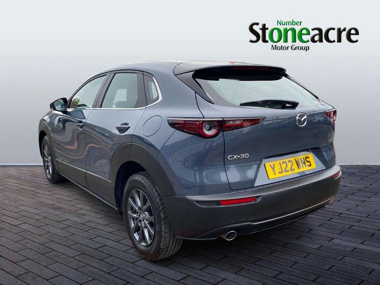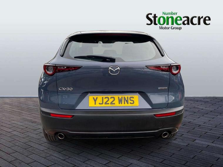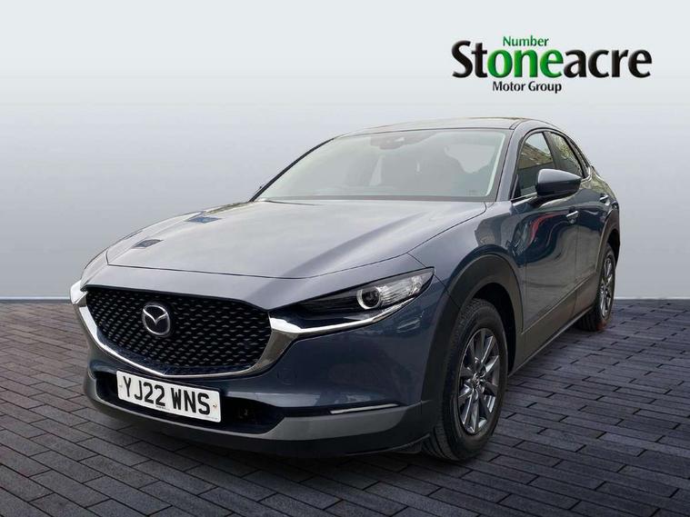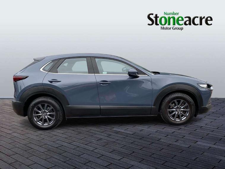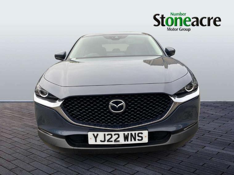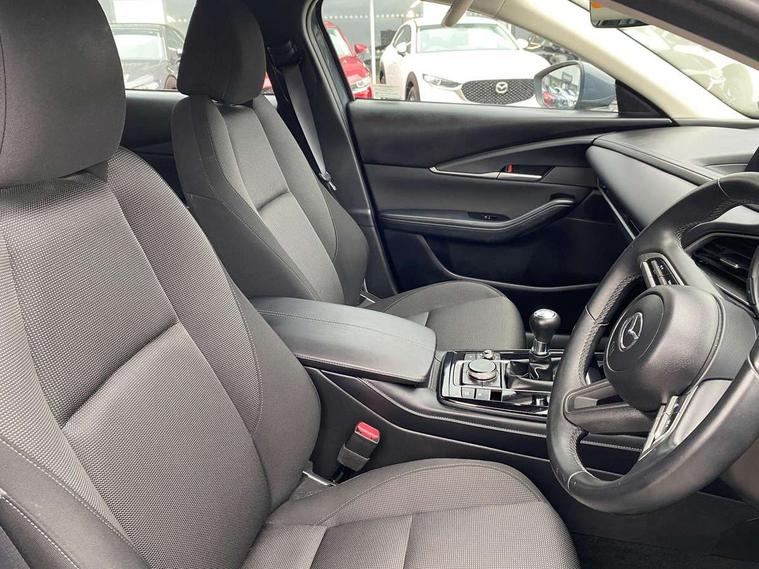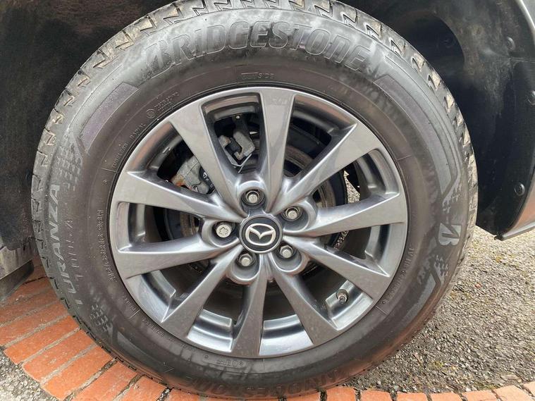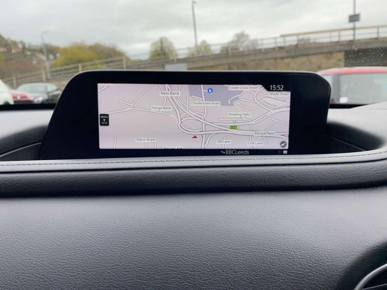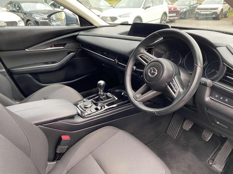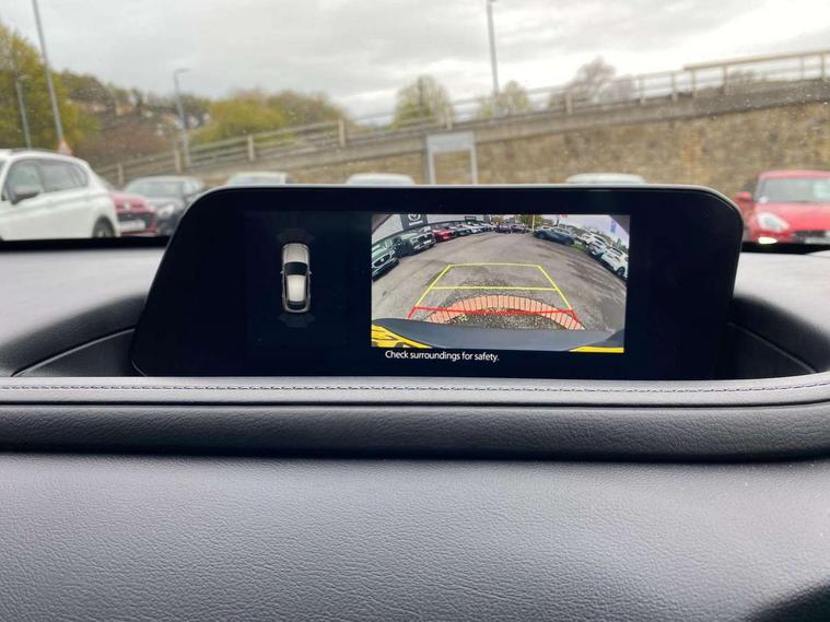 16" Grey alloy wheels, Emergency tyre repair kit, Remote central locking with deadlocking and automatic door lock when driving, Smart keyless entry, Thatcham accredited alarm and immobiliser, 2 USB charging ports in front inner central armrest, AM / FM / DAB radio with 8 speakers, Multimedia Commander including separate volume dial, Steering wheel mounted audio/bluetooth controls, 3 point ELR front seat belts x2 with pretensioners, 3 point ELR rear seat belts, Anti-lock braking system (ABS), Drivers knee airbag, DSC - Dynamic Stability Control, Electronic parking brake with auto disengage function and auto hold function, Front and rear curtain airbags, Front dual stage driver and single stage front passenger airbags, Front passenger airbag cut-off switch, Front side airbags, Front smart city brake support, G-Vectoring control plus, Hill launch assist, Manual child lock in rear doors, Mild Hybrid system with regenerative braking, Seatbelt reminder for driver/front passenger and rear seats, Traction control system (TCS), Tyre pressure monitoring system (TPMS), B-pillar and C-pillar garnishes in satin black finish, Auto dimming driver's door mirror, Auto dimming rear view mirror, Auto headlight levelling, Body coloured, electrically adjustable, heated auto power folding door mirrors with integrated indicators, Chrome finish signature wing in front grille, Coming/leaving home lighting function, Dual chrome exhaust, Dusk sensing headlights, Electric front/rear windows with one touch auto up/down, Front kodo turn signal, Gloss black rear roof spoiler, LED headlights with halogen daytime running lights and high beam control, LED rear combination lights, Rain sensing front wipers with adjustable speed and intermittent wipe, Rear fog lights, Rear side wing doors, Rear wiper, Satin black front grille, Third brake light, 12V power outlet in centre console, 3 seat bench in 2nd row, 60/40 split fold down rear seats, Cloth upholstery with interior accents, Dark cloth door panel inserts, Dashboard, door cards and front centre armrest in black cloth, Driver and front passenger visors with covered vanity mirror and driver ticket holder, Driver seat manual slide, recline, height and seat tilt adjust, Driver, front passenger and two rear door storage, Driver, Front passenger and two rear grab handles with coathooks, Dual zone climate control air conditioning with rear air vents, Folding rear centre armrest with two cup holders, Front and rear (x3) head restraints, Front and rear LED lighting, Front armrest, Front centre storage with two cupholders, Front passenger seatback pockets, Front passengers seat manual slide, recline and height adjustment, Gear shift indicator, Glovebox illumination, Heated front seats with 3 stage setting, ISOFIX child seat anchorage points attached on outer rear seats, Leather wrapped gear shift knob, Leather wrapped steering wheel with telescopic and tilt adjustment, LED luggage compartment lighting, Light roof headlining and pillars, Roof mounted sunglasses holder, Single front passenger seat, 7" TFT Colour driver instrument panel display, 8.8" Colour centre touch screen display with Mazda Connect infotainment, Adaptive cruise control (Mazda radar cruise control), Apple car play/Android Auto, Blind spot monitoring with rear cross traffic alert, Driver attention alert system, E-call with GPS, Emergency stop signalling system, Engine start/stop button, Front and rear parking sensors, Integrated bluetooth, Integrated Mazda navigation system, Intelligent speed assist, Lane keep assist system (LAS) with Lane departure warning system (LDWS), Mazda connected services, PAS, Reversing camera, Service indicator, Traffic sign recognition, Trip computer, Cylinder Deactivation, i-stop,