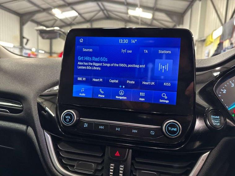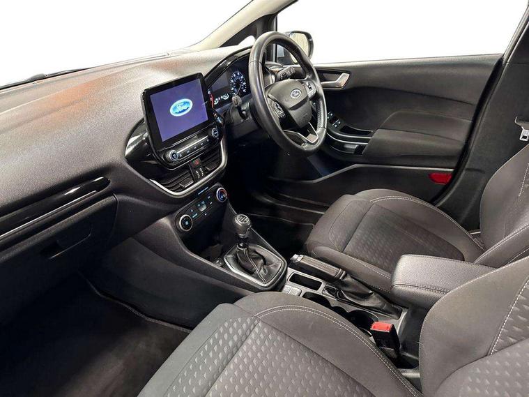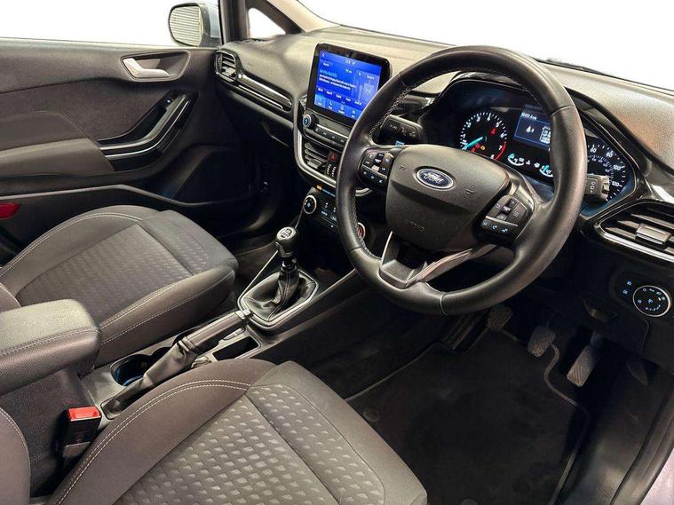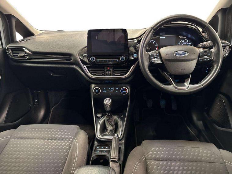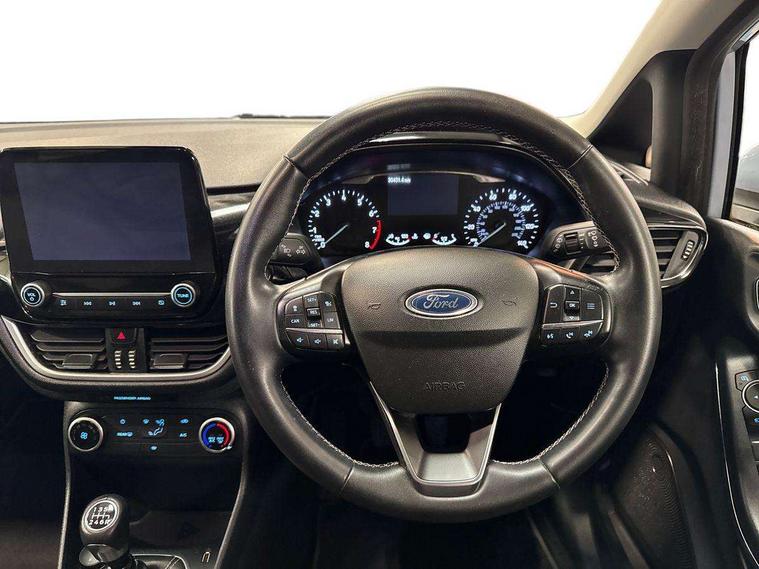 NCAP Pack - Fiesta, 16" 10 spoke alloy wheels, Keyless start with 'Ford Power' starter button, MyKey system, Remote central locking & engine immobiliser, Thatcham Cat.1 alarm, 2 USB ports, Auxiliary input socket, DAB Digital radio, Steering wheel mounted controls, 3 point seatbelts on all rear seats, ABS+EBA, Curtain airbags, Driver and passenger airbags, Drivers knee airbag, Electronic stability control with hill start assist, Front passenger airbag deactivation, Front side airbags, Seatbelt warning, Two tone horn, Tyre pressure monitoring system, Body colour bumpers, Body colour door handles, Body colour rear spoiler, Body coloured electrically operated and heated door mirrors with side indicators, Chrome beltline trim, Chrome front grille, Chrome lower window surround, Cornering front fog lights, Electric front windows/one touch facility, Electric rear windows, Quickclear heated windscreen, Rain sensing wipers and auto dimming rear view mirror, Rear privacy glass, Rear wiper, 3 spoke leather trimmed steering wheel with audio control, 60/40 split folding rear seat, Adjustable head restraints, Boot carpet, Centre console with opening armrest, 2x cupholders, 12v and USB, Chrome inner door handles, Cloth upholstery, Footwell illumination, Front floor mats in velour, Front map reading lights, Front seat and rear pockets, Illuminated glovebox, Leather gaiter, Load area light, Luxury woven headliner, Manual 2 way passenger seat adjust, Manual 4-way driver seat adjust, Manual air conditioning, Overhead console with sunglasses holder, Pollen filter, Rake/reach adjustable steering wheel, Sensico wrapped steering wheel, Bluetooth system, Electric power steering, Ford easy fuel, Ford SYNC 3 Navigation system incl 8" touchscreen, 7 speakers, FordPass connect, Apple carplay, android auto, voice control and emergency assistance, Rear parking distance sensors, Selectable drive modes (Normal, Sport, Track), Trip computer,