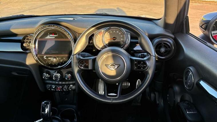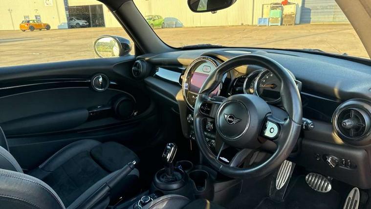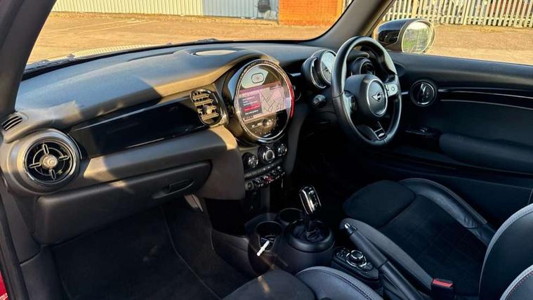 Piano black interior trim, Piano black exterior pack - Mini Hatchback Cooper, Alarm system with tilt sensor, monitoring doors, bonnet interior and tailgate, Electronic vehicle immobiliser, Start/stop toggle with keyless go, 4 speakers in front door trims and underneath front seats, 8.8" touchscreen with LED ring, FM tuner and DAB digital radio, 3 point seatbelts on all four seats, 6 Airbags - front, side, head and seat belt tensioners, Anti-lock braking system (ABS), DSC - Dynamic Stability Control, Front and rear disc brakes, Single tone fanfare horn, Tyre pressure monitoring system, Automatic headlight activation switch, Body colour fuel filler cap, Chrome border high gloss black slats radiator grille, Dynamic brake lights, Electric front windows, Exhaust tailpipe on left with chrome finisher, Heated rear window, Heated windscreen washer jets, JCW Aerodynamic kit - Front and rear bumpers with sporty JCW styling and part-painted side sills with MINI John Cooper Works door sill finishers, John Cooper Works rear spoiler, LED headlight with closed ring and daytime driving lights, Metal door sill strips with MINI imprint, Model logo Cooper on right of tailgate, Rain sensor window wipers, Rear fog lights, Rear LED lights with union jack design, Rear window wiper, Side scuttle panel with integrated indicator, Sun/heat protection glass, White indicator lenses, 12V Accessory socket in centre console, 4 lashing eyes in luggage compartment, 60/40 split folding rear seat, Anthracite headliner including grab handles and clothes hooks, Carbon black colour line - Knee roll and door armrest, Chrome interior highlights, Cupholders, Front and rear isofix with front passenger airbag deactivation, Glove compartment, Height and length steering column adjustment, Interior lighting with 12 different colours across the dashboard, underneath door bezel with illuminated laser-engraved design on central display, JCW Sport seats with integrated headrests, adjustable thigh support and John Cooper Works logo, Leatherette gearshift lever and handbrake gaiters, LED reading lights, vanity mirror lights, front foot well light and spotlight on front seats, Manual air conditioning, Mechanical seat adjustment - forward/back & backrest for front seats and driver seat height adjust, Multifunction steering wheel, Passenger seat height adjuster, Storage compartments in doors, Sunvisors with vanity mirrors, Tool kit, Velour floor mats, Walknappa leather steering wheel with grey seam and John Cooper Works badge on Piano Black lower steering wheel spoke, Automatic start/stop function with brake energy recuperation, Compatible mobile phone bluetooth with audio streaming, Cruise control with brake assist, Electro-mechanical speed dependant steering assistance, Flexible car sharing preparation, Instrument cluster, MINI Driving Modes - centre toggle switch to control driving setting (sport, mid and green), Mini E-call, MINI TeleServices, On board computer, Rear park distance control, Service interval indicator, Adaptive suspension, Double Vanos system, Fully variable valve control, High precision injection, Performance Control, Steptronic transmission with double clutch,