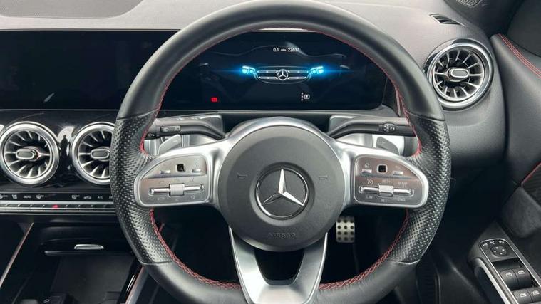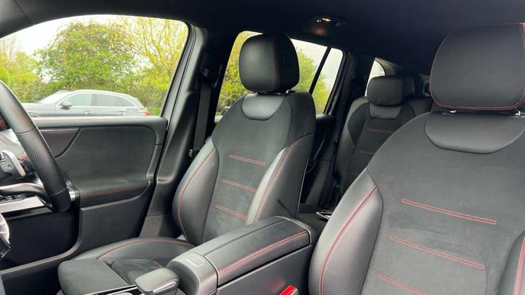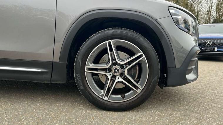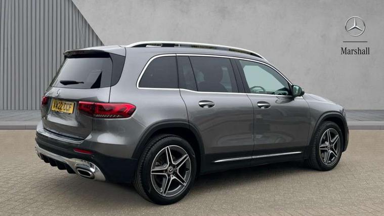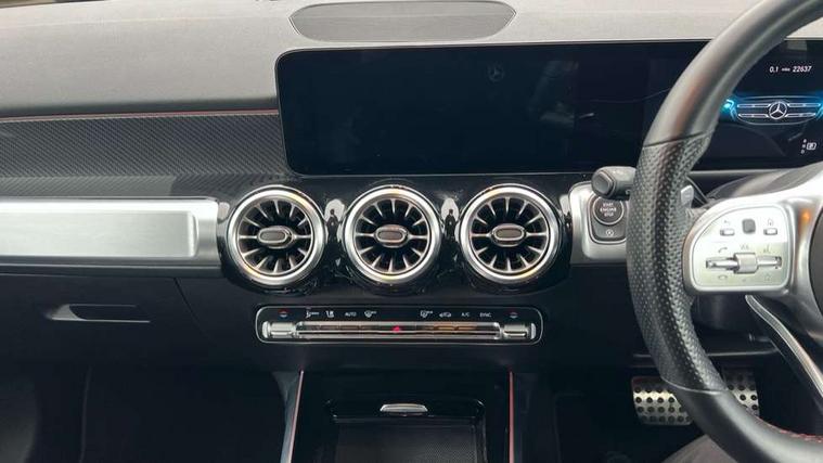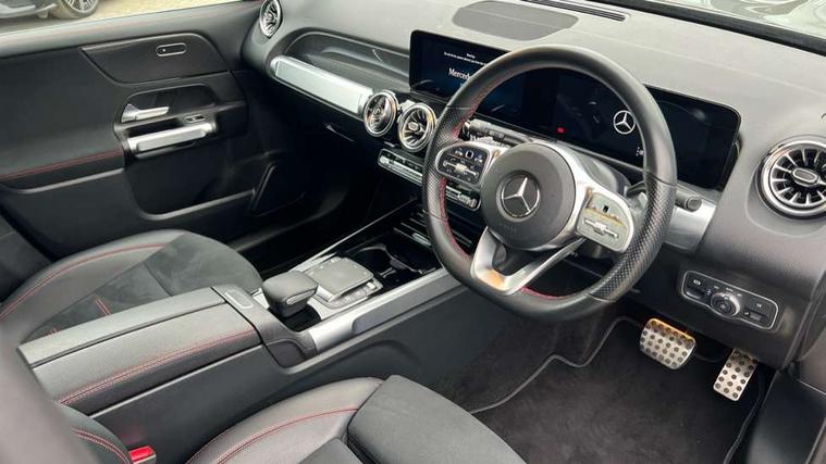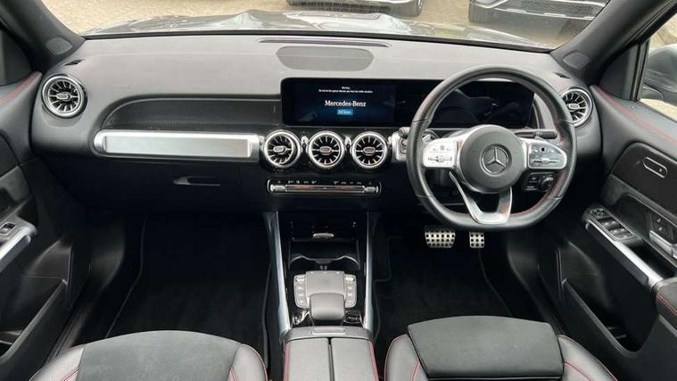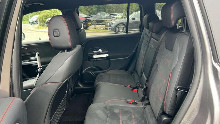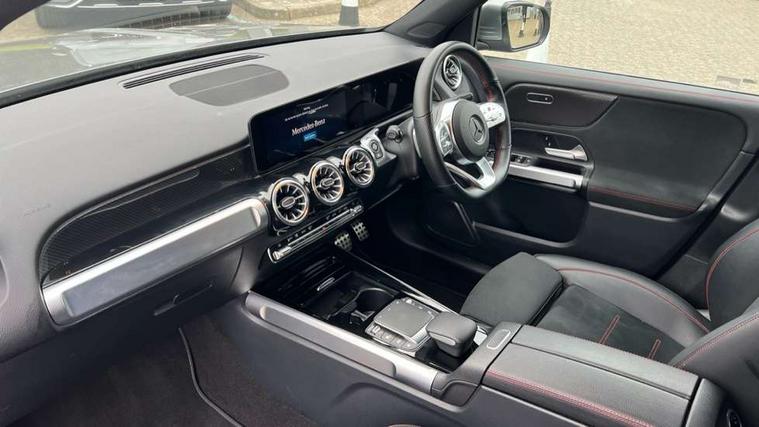 Black air vents with chrome surround, Carbon structure trim, Interior lighting with light and sight pack - GLB, Keyless go pack - GLB, Mirror pack - GLB, Parking pack - GLB, Seat comfort package - GLB, 19" AMG 5 twin spoke light alloy wheels painted in high gloss black with high sheen finish, Summer tyres, Tirefit tyre sealant kit, Interior monitoring system, Remote central locking and crash sensor with emergency opening function, Thatcham category 1 alarm system with immobiliser and interior protection, Urban guard vehicle protection - Anti theft alarm system, tow away protection with visual and acoustic warning and alarm siren, Vehicle key with decorative surround in chrome, DAB digital radio tuner, MBUX multimedia system with DAB digital radio and touchpad including satellite navigation, Mercedes Benz sound system (225 W) with 10 speakers, 1 central speaker, speakers on doors, a tweeter on door, one sub woofer + boost amplifier, Pre installation for Mercedes Benz Link, USB (type C) port in front stowage compartment, USB (type C) ports (2) in stowage compartment, 3 rear 3 point seatbelts, Active bonnet pedestrain safety measure which detects an impact and raises bonnet by 65mm, Active brake assist includes forward collision warning system with autonomous braking, Adaptive brake assist with hold function and hill start assist, Airbags - kneebag for driver, Anti-lock braking system (ABS) with brake assist, Childproof locks manually operated for rear doors and electrically operated for rear power windows, Crash responsive emergency lighting, Curve dynamic assist, Driver and front passenger head and sidebags, Driver and front passenger windowbags, Dual stage driver and front passenger airbags, Electronic parking brake, Electronic stability programme with acceleration skid control, Front and rear seatbelt reminder, Front brake callipers with Mercedes Benz lettering, Front passenger seat occupancy sensor, Tyre pressure monitoring system, Warning triangle and first aid kit, Adaptive brake lights, Aerial for GPS, AMG bodystyling door panels black grained with chrome plated inserts, AMG bodystyling front apron with chrome splitter, AMG bodystyling rear apron with diffuser optics and chrome trim element, AMG specific front and rear bumper including underride guard in high gloss chrome, Beltline strips and weather strip in chrome, Body coloured bumpers, Body coloured door handles with chrome insert for keyless entry, Body coloured door mirror caps, Electric adjustable and heated door mirrors with integrated LED side indicators, Exhaust system with dual flow exhaust pipes (non-functional), Front and rear electric windows, Headlamp assist automatic headlamp activation, Heated glass rear windscreen + timer control, High level LED third brake light, Interior mirror with black reading lamps and frameless, LED high performance headlamps with integrated LED daytime running lights, LED tail lamp, Polished aluminium roof rails, Privacy glass with dark tinting on rear side windows and rear window, Radiator grille with pins in chrome and single louvre with chrome insert, Rain sensor windscreen wipers, Rear fog lamp, Rear side wing doors, Rear wiper, Two visible tailpipe trim elements exhaust, 3 seat bench in 2nd row, 3 spoke multifunction sport steering wheel in nappa leather, Air conditioning - Two zone thermotronic luxury automatic climate control with display, AMG sports pedals with brushed stainless steel surfaces and black rubber studs, Artico man-made leather/Microfibre Dinamica upholstery with red contrast stitching, Automatic child seat recognition sensor, Black floor mats with AMG lettering, Black roof lining, Fore/aft adjustment rear seats, Freight packaging with tie-down hooks, Front centre armrest with stowage, Front door sills with illuminated changeable cover, Front passenger grab handle with brushed side silver chrome, Galvanished gear shift paddles on steering wheel, Heated front seats, Height/reach adjustable steering column, Interior lighting - 64 colour Ambient lighting, Luggage net on driver/front passenger seat backrest, Net in front passenger footwell, Rear armrest with two integral cup holders for drinks, Rear seat easy entry, Single front passenger seat, Sports seats with adjustable head restraints, Stowage compartment in centre console, Stowage compartment with retractable cover, Third row of seats for two people on rear seat, Touchpad on center console, Twin front cup holders, Two outer rear seat isofix and top tether child seat fixing points, 10.25" Digital instrument cluster display screen, 10.25" Digital media screen display, Active lane keeping assist, Attention assist - Monitors steering behaviour and long journey fatigue, Brake pad wear indicator warning light, Car wash mode, Cruise control with limiter, DYNAMIC SELECT with a choice of driving modes (ECO, Comfort, Sport and Individual), ECO start/stop function, Fluid level warning indicator for fuel, oil, coolant and washer fluid, Hard disk navigation, Hey Mercedes Voice activation, Lamp failure indicator, Mercedes me connect including emergency call system, accident recovery, breakdown management and maintenance, Mercedes me remote services, Outside temperature gauge, Owners manual and service booklet in English, Parameter steering system, Pre-installation of private car share, Preinstallation for parking damage notification, Radio aerial integrated into front and rear windshields, Service indicator (ASSYST), Smartphone integration with Apple CarPlay and Android auto, Speed limit assist, Trip computer in multifunction display with current consumption indicator, Comfort suspension, Rear axle multi-link,