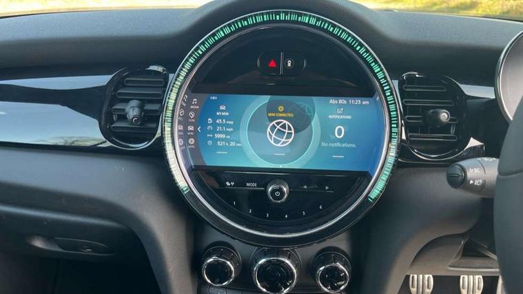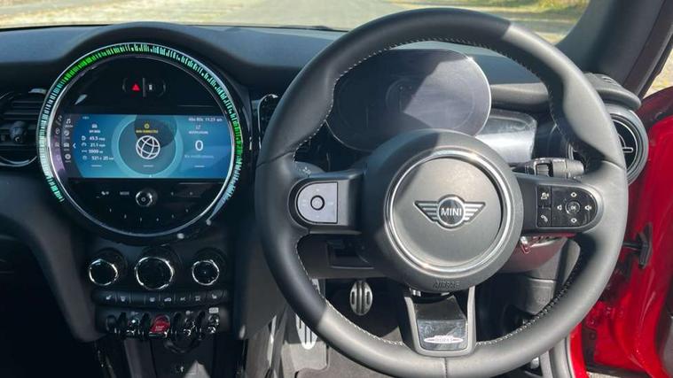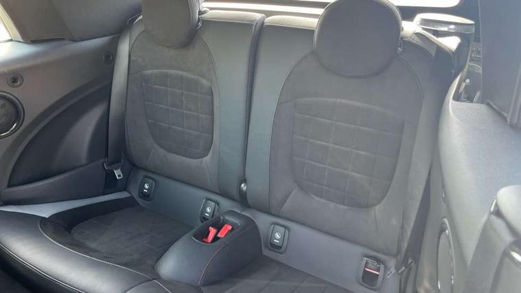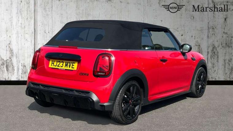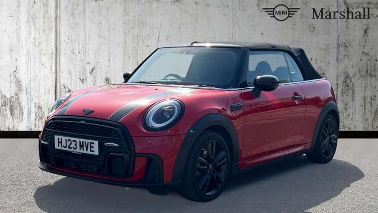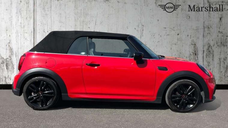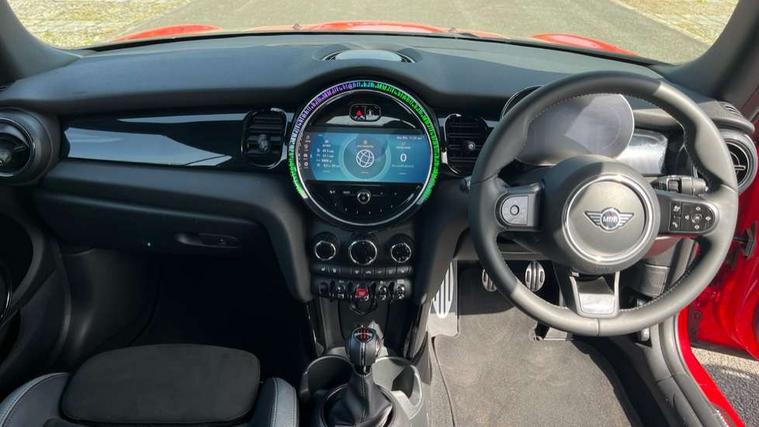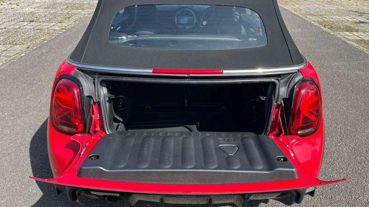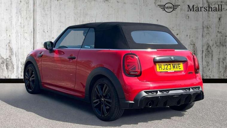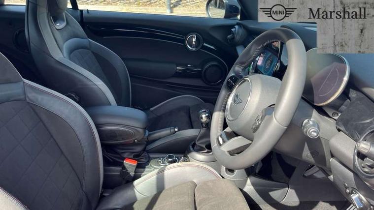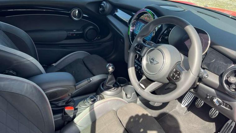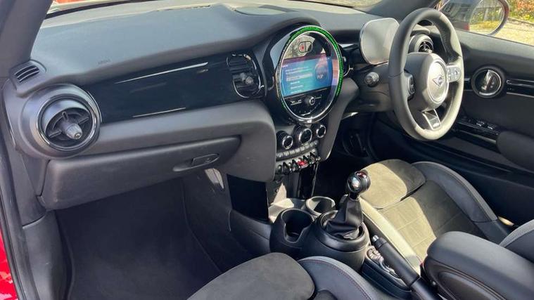 Piano black interior trim, Convertible pack with comfort access - Mini Convertible, Piano black exterior pack - Mini Convertible, Alarm system with tilt sensor, monitoring doors, bonnet interior and tailgate, Electronic vehicle immobiliser, Keyless Go, 8.8" touchscreen with LED ring, FM tuner and DAB digital radio, 3 point seatbelts on all four seats, 6 Airbags - front, side and seat belt tensioners, Active rollover protection, Anti-lock braking system (ABS), DSC - Dynamic Stability Control, Front and rear disc brakes, Hill start assist, Single tone fanfare horn, Tyre pressure monitoring system, Automatic headlight activation switch, Body colour fuel filler cap, Chrome border high gloss black slats radiator grille, Dynamic brake lights, Electric windows, Fully electric black softtop with integrated sunroof functionality, Heated rear window, Heated windscreen washer jets, John Cooper Works - aerodynamic kit (front and rear apron, spoiler), front and rear sport bumpers and part-painted side sills with door sill finishers, LED headlight with closed ring and daytime driving lights, Left exhaust tailpipe with chrome finisher, Metal door sill strips with MINI imprint, Model logo Cooper on right of tailgate, Rain sensor window wipers, Rear boot, Rear fog lights, Rear LED lights with union jack design, Side scuttle panel with integrated indicator, Sun/heat protection glass, Third brake light, White indicator lenses, 12V Accessory socket in centre console, 2 seat bench in 2nd row, 4 lashing eyes in luggage compartment, 50/50 split folding rear seats, Chrome interior highlights, Colour line - Carbon black, Cupholders, Easy Load boot handles, Front and rear isofix with front passenger airbag deactivation, Glove compartment, Height and length steering column adjustment, Interior lighting with 12 different colours running across the dashboard, underneath door bezel illuminated laser engraved design on central display, John Cooper Works walk nappa leather steering wheel with grey seam and John Cooper Works badge on piano black lower steering wheel spoke, Leather gearshift lever and handbrake gaiters, Leatherette integrated headrest, adjustable thigh support with john cooper works logo, LED reading lights, vanity mirror lights, front foot well light and spotlight on front seats, Manual air conditioning, Mechanical seat adjustment, driver seat height adjust, forward/back and front seats backrest, Multifunction steering wheel, Rear head restraints, Single front passenger seat, Sports steering wheel, Storage compartments in doors, Sunvisors with vanity mirrors, Tool kit, Velour floor mats, Apple CarPlay, Automatic start/stop function with brake energy recuperation, Compatible mobile phone bluetooth with audio streaming, Cruise control with brake assist, Electro-mechanical speed dependant steering assistance, Instrument cluster, MINI Driving Modes - centre toggle switch to control driving setting (sport, mid and green), Mini E-call, MINI TeleServices, On board computer, Rear park distance control, Service interval indicator, 6 Speed manual transmission including gear change indicator display, Adaptive suspension, Double Vanos system, Fully variable valve control, High precision injection, Performance Control,
