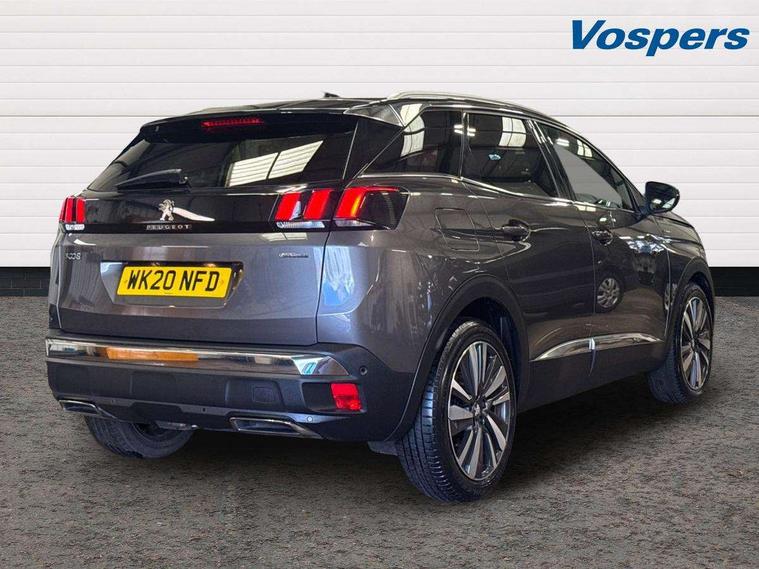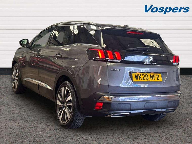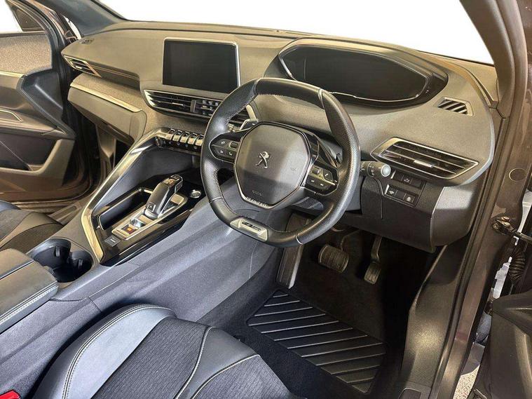 Brumeo fabric Dashboard, front and rear door panel finish, Driver sport pack - 3008 Auto, Safety pack - 3008, Safety Plus Pack - 3008, Visibility pack - 3008, 19" Washington two tone diamond cut alloy wheels, Space saver spare wheel, Anti theft alarm, Automatic door locking when moving off, Automatic hazard light activation upon heavy brake application, Central locking button on dash, Deadlocks, Electric tailgate with Peugeot open & go system, Electronic immobiliser, Locking wheel bolts, Remote control central locking with two plip keys, DAB Digital radio, Steering wheel mounted controls, USB socket, 3x Rear three-point retractable seatbelts with force limiters in the outer rear seats, Adaptive driver and front passenger airbags with passenger airbag deactivation function, Anti lock braking system + Electronic brake force distribution, Driver and front passenger side airbags, Electric child locking functionality on rear windows and doors, Electric parking brake, Front and rear curtain airbags, Front optimised safety headrests and 3 x rear retractable headrests with height adjustable, Front three point retractable seatbelts with pre tensioners and force limiters, Front ventilated disc brakes and rear disc brakes, Height adjustable front seatbelts, Hill start assist, Tyre pressure sensor, 2 X Rear number plate lights, Aluminium longitudinal roof bars, Auto self levelling headlights, Automatic triggered rear windscreen wiper in reverse gear, Black and chrome front wing trim, Body colour door handles, Body colour rear spoiler with stainless steel edging trim, Body coloured bumpers, Body protectors (bottom of front and rear bumpers + wheel arches + protection at bottom of doors) in black, Chrome front fog light trim, Chrome rear bumper facia, Chrome side window trim, Dark tinted rear side windows + tailgate window, Door mirror mounted LED Peugeot lion approach lights, Electric operated/heated door mirrors, Front windscreen wiper with magic wash cleaning system, Full LED headlights with LED fog lights with static cornering function, sports front bumper and grille, Gloss black B and C pillar and aerodynamic deflector trim, Gloss black rear cluster connecting strip, Gloss black windscreen surround, GT Line emblem in satin copper (front wings and tailgate), Headlights left on audible warning, Heated rear windscreen with integrated antenna, LED daytime running lights, LED sequential scrolling front indicators, LED side indicator lights integrated into door mirrors, Lion grey front bumper scuff plate, Nera black door mirrors, One touch electric front/rear windows with pinch protection, Panoramic opening glass roof, Power folding door mirrors with blind spot detection indicator and auto dipping function in reverse gear, Radiator grille in chrome edge trim with chequered design and black 'PEUGEOT' lettering, Rear LED Peugeot signature 'Claw Effect' lights, Stainless steel roof arches, Twin exhaust tailpipe, 1/3 to 2/3 split folding rear seats, 12V Sockets in dashboard, rear cabin and load area, 2 cupholders in front centre console, 2 rear reading spotlights, 230V socket on rear centre console, 2x Rear coat hooks, 3x Isofix child seat fittings in the front passenger and outer rear seats, 4 Grab handles retractable and damped, Aikinite stitching in armrest, gear lever and dashboard facia, Automatic gear lever in satin chrome, Blue ambient lighting for connecting zone, Blue ambient lighting to front door panels, central storage and cupholders, Blue ambient lighting to head up instrument panel, Centre front armrest with butterfly wing opening and illuminated storage compartment, Driver and front passenger seat height adjustment, Driver seat manual adjustment, Dual zone automatic climate control, Electric power steering with reach and rake adjustable steering column, Fixing rings 4 in load compartment, Flocked front door pocket interior with blue ambient lighting, Flocked glovebox interior, Fold flat front passenger seat with picnic table, Footwell illumination, Front interior light with 2 reading spotlights and rear interior light with timer, Front passenger seat manual adjustments, Front seat back map pockets, Gear shift indicator, Illuminated glovebox, Illuminated vanity mirrors, Imila cloth/Leather upholstery, LED interior lighting in storage spaces and load area, Mistral floor mats with Aikinite contrast stitching, Mistral full grain perforated leather steering wheel with aikinite stitch detail and satin chrome 'GT Line' emblem, Rear armrest with ski flap and two cup holders, Rear centre console ventilation system, Reclining front seats, Roof LED interior lighting, Roof lining - Mistral black, Satin chrome dashboard trim, Satin chrome digital instrument panel and touchscreen trim, Satin chrome front door panel recess trim, Satin chrome interior door handles, Satin chrome scorpion's tail and toggle switch trim, Seatbelt not fastened audible and visual alert for front seats, Seatbelt unfastened on the move audible and visual alert for front and rear seats, Stainless Steel Scuff Plates, Two position boot floor, 'Lights On' Reminder warning buzzer, 3D connected navigation + voice control + Peugeot connect SOS and assistance, Bluetooth telephone facility, Digital clock, Electric impulse automatic gearbox control, Exterior temperature indicator with ice warning, Front and rear parking sensors, Lane departure warning system, Mirror screen with mirror link, apple carplay and android auto, Multi function trip computer, PEUGEOT i-Cockpit with 8.0" capacitive touchscreen in centre console, PEUGEOT i-Cockpit with compact sports steering wheel, PEUGEOT i-Cockpit with configurable 12.3" Head-up digital instrument panel, Smartphone charging plate, Speed limit recognition and recommendation, Sports button, Dynamic stability control and electronic anti-skid system,