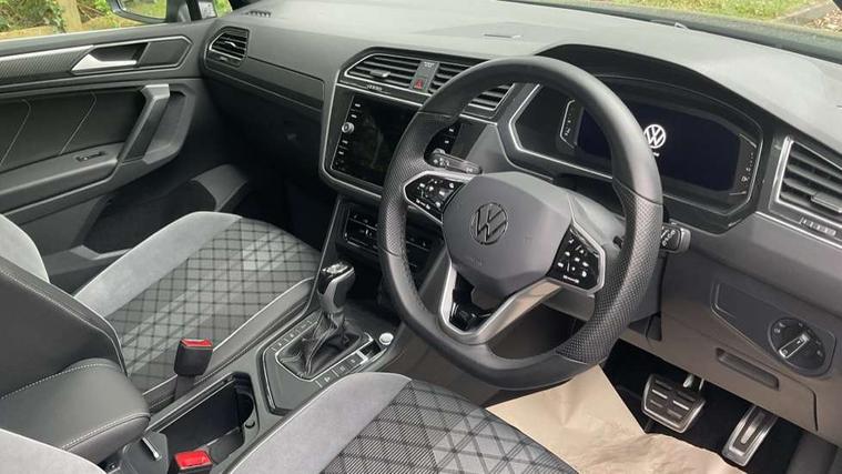 Driver assistance pack plus - Tiguan DSG, Anti theft alarm system with interior monitoring, backup horn and towing protection, Anti theft wheel bolts, Electronic engine immobiliser, 4 X 20 watt output, 8 speakers, Diversity antenna for FM reception, SD card slot, Simultaneous pairing of 2 compatible mobile devices, SMS functionality - read, compose and send SMS messages using touch-screen display, Title and cover art display, USB C ports, 3 point seat belt for centre rear seats, 3 point seat belts with seat belt pretensioners for the outer rear seats, Active bonnet, Curtain airbags for front and rear passengers, Driver/Front Passenger airbags, Drivers knee airbag, Electronic parking brake with auto hold, Electronic Stability Control with driver steering recommendation, ABS, ASR, EDL, EDTC and trailer stabilization, Front assist with autonomous emergency braking (for Adaptive Cruise Control ACC up to 130 mph), Front disc brakes, Front passenger airbag deactivation, Front side airbags, Height adjustable front 3 point seatbelts + pretensioners, Hill hold control, Manual child proof rear door locks, Pedestrian monitoring system, Power assisted brakes, Proactive passenger protection system in combination with front assist, Rear disc brakes, Rigid safety cell with front and rear crumple zones, Two tone horn, Warning sound and light for front seat belts if unfastened, Auto dimming interior rear view mirror, Automatic headlight control system, Body colour door handles, Chrome moldings on the side windows, Coming/leaving home lighting function, Dynamic headlight range control, Front and rear electric windows, Heated rear window, High level 3rd brake light, Laminated safety glass windshield, heat and sound insulating, LED headlamps with LED separate daytime running light and dynamic cornering light, LED rear combination lamps, LED rear number plate lights, License plate carrier in front and rear, Poor weather light and cornering light, R Line body kit, R Line side sills, Rain sensor windscreen wipers, Rear exhaust tailpipe, Rear fog lamp, Rear side wing doors, Rear spoiler in R style, Rear windscreen washer and wiper with interval delay, Side and rear windows in heat insulating glass, Trailer Stability Programme, Unique R Line badging, Windscreen wipers/ intermittent wipe + 4 position delay, 12V outlet in center console rear and in luggage compartment, 12V outlet in front and tray, 2 cup holders in front, 2 LED front reading lights, 2 LED rear reading lights, 3 bench rear seats in 2nd row, 3 rear headrests, 4 load lashing points, 40:20:40 split folding rear seats, Air Care Climatronic 3 zone automatic climate control with enhanced air filter and controls in the rear, Backrest release for left front seat, Black headlining, Brushed stainless steel pedals and footrest, Carpet mats in front and rear with decorative stitching in Gray, Climate control unit rear with touch function, Door and side trim panel in foam film, insert in leatherette, Front centre armrest, Front footwell illumination, Front seats head restraints (x-adjustment), Height adjustable front seats, Height/reach adjust steering wheel, Instrument lighting white adjustable panel illumination, Interior light with delay, Isofix Preparation 2 Rear child seats, Leather gear knob, Lockable cooled glovebox, Luggage compartment lighting, Luggage net, Rear bench seat asymetrically split folding, longitudinally movable and folding with load-through hatch and center armrest, Remote unlocking for rear seat backrest, Removable luggage cover, Removable rear headrests, Safety optimised front head restraints, Single front passenger seat, Sliding/reclining rear seats, Standard rear seat release, Storage compartment in driver's door, Storage compartment in passenger's door, Storage compartment in rear doors, Storage compartments in luggage area left and right, Storage tray on dashboard, Sun visors with illuminated vanity mirrors, Tool kit, Top front comfort seats, Variable boot floor, height adjustable and removable, Adaptive cruise control ACC stop and go including speed limiter, App-Connect incl. App-Connect Wireless for Apple CarPlay and Android Auto, Bluetooth phone integration system, Distance control assist, Driver alert system, Driver profile selection, Dynamic road sign display, eCall emergency call system, Electromechanical speed sensitive power steering, Engine start/stop button, Lane keeping system Lane Assist, Lights on warning, Multifunction front facing camera, Outside temperature display, Premium multifunction display with multi colour display, Remote control boot opening, Rev counter, Revision / skills operating concept travel assistant, Service interval indicator, Speed limit display, Start/stop system with regenerative braking, Trip computer, Warning sound and light for doors and tailgate open, Battery regeneration during braking, XDS electronic differential lock for improved traction and handling,