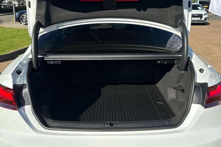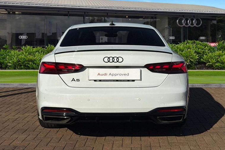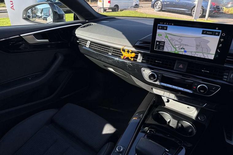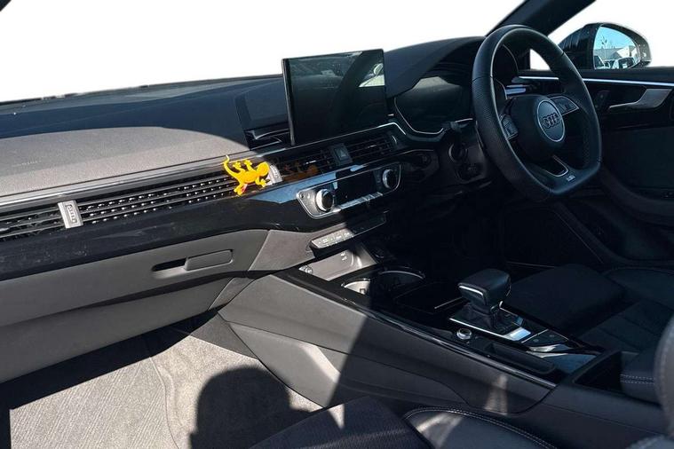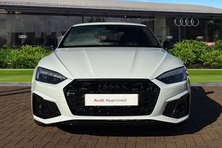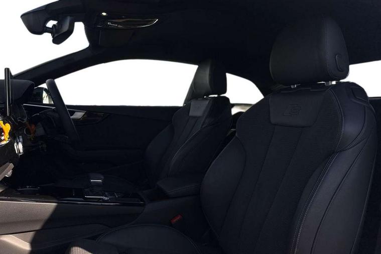 Piano black finish inlay, Black styling pack - A5 Coupe/Sportback, LED interior light pack - A5/RS5, Tyre repair kit, Anti theft alarm system, Anti theft wheel bolts, Immobiliser, Keyless Go, Remote central locking, 8 passive loudspeakers, CD player, DAB digital radio reception, Two additional USB ports for rear passenger in rear centre console, Two SDXC card slots, 2 x 3-point rear seat belts, 6 airbags - Driver, front passenger, curtain and side airbags, Attention and drowsiness assist, Electromechanical parking brake, Electronic Stabilisation Control (ESC) including ABS, ASR and EDL, Front passenger airbag deactivation, Height adjustable front seatbelts, Hill hold assist, Multi collision brake assist, Pop-up bonnet for pedestrian protection, Pre sense city, Seatbelt monitoring, Tyre pressure warning, Variable restraint system, Warning triangle and first aid kit, Audi Beam uses LEDs to project the Audi logo, Auto dimming door mirrors, Auto dimming rear view mirror, Badges on front wing, Black door mirror housings, Body colour door handles, Body colour front spoiler lip, Body colour side sill trim, Electric adjustable heated door mirrors, Electric folding door mirrors, Electric front windows, Exhaust tailpipe trims in dark chrome, Front and rear bumpers with side skirts, Front fog lights, Honeycomb structure radiator grille in grained matt black, Kerb-view function for passenger side, LED headlights and rear lights with LED daytime running lights, LED side indicator lights integrated into door mirrors, LED third brake light, Privacy glass, Rain and light sensors, Rear boot, Rear diffuser in matt anthracite black with trim strip in matt aluminium silver, Rear side wing doors, S model rear spoiler in black, Side air inlets in grained matt black with matt aluminium silver inlay, Variable front intermittent wipers, Windscreen with acoustic glazing, 2 seat bench in 2nd row, 4 way electric lumbar support for driver and front passenger, 40/20/40 split folding 2 seater rear seat bench with rear centre armrest, Adjustable steering column, Black cloth headlining, Black perforated leather gearknob, Contrast stitching on seats, steering wheel and gear lever gaiter, Deluxe 3 zone electronic climate control, Front centre armrest, Front head restraints, Front/rear floor mats, Heated front seats, Illuminated door sill trim with S logo, ISOFIX child seat mounting and top tether, Luggage compartment mat, Manual seat adjustment, Rear headrests, Single front passenger seat, Stainless steel pedals and footrest, Sunvisors with vanity mirrors, Tool kit, Audi connect safety and service (e-call), Audi drive select (Auto, Comfort, Dynamic, Efficiency and Individual), Audi smartphone interface, Audi virtual cockpit - 12.3" full colour digital instrument cluster, vehicle/engine speed, Radio/media information+Driver assistance systems, Automatic start-stop system with coasting functionality and efficiency programme, Bluetooth interface, Camera based traffic sign recognition, Electric boot lid release, Electro-mechanical power steering, Email, calendar and text messages displayed via MMI, Front and rear parking sensors, Lane departure warning, MMI nav+ with MMI touch - 10.1" high resolution MMI display, touch sensitive, 3D map, route/country info, dynamic route guide, personal route assist, Rear view camera, Service interval indicator, Voice control system, 54 litre fuel tank, Sports suspension lowered by 23mm,