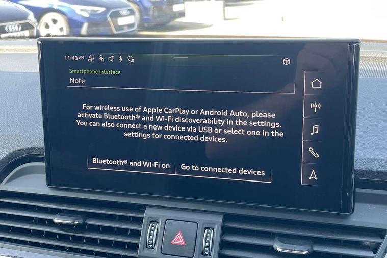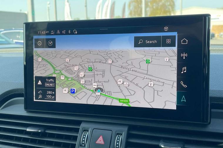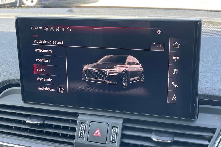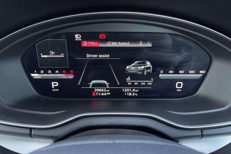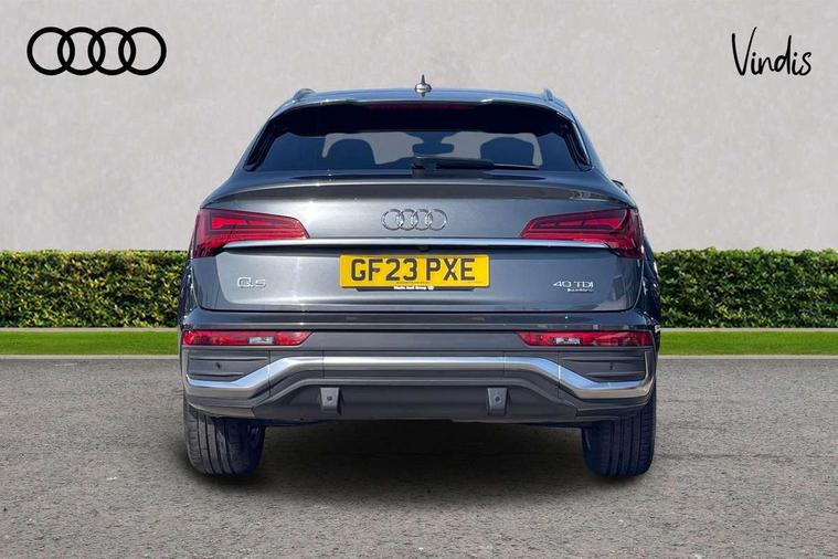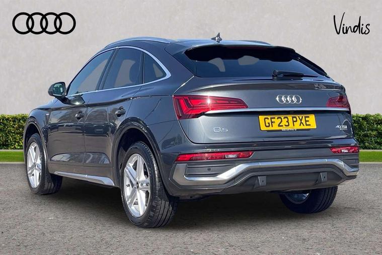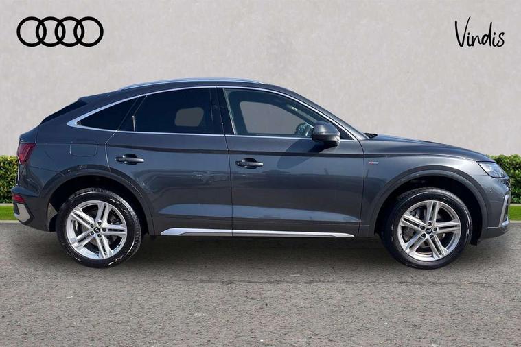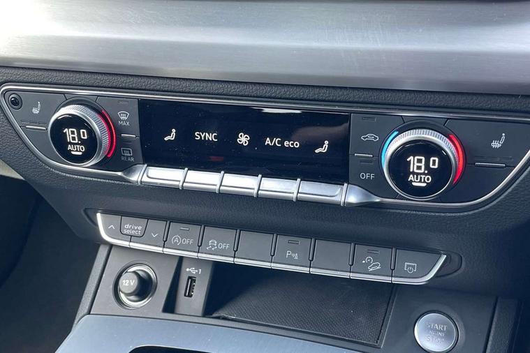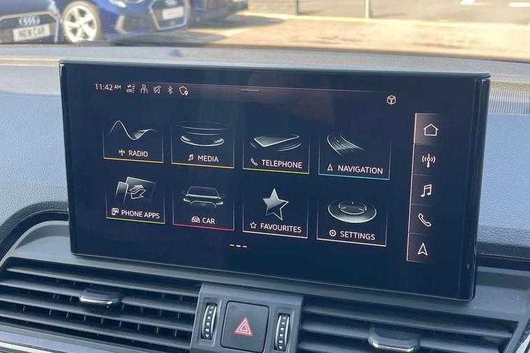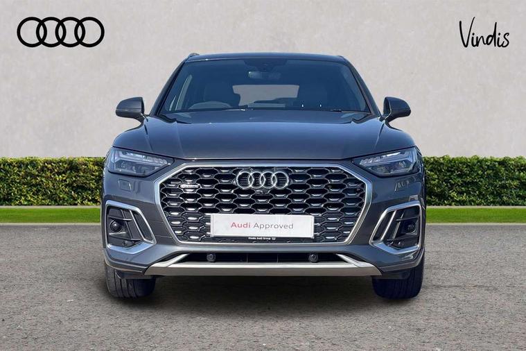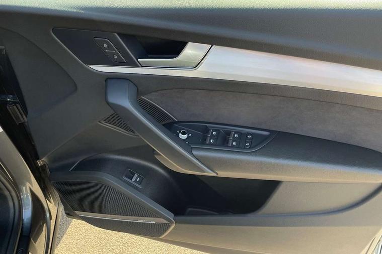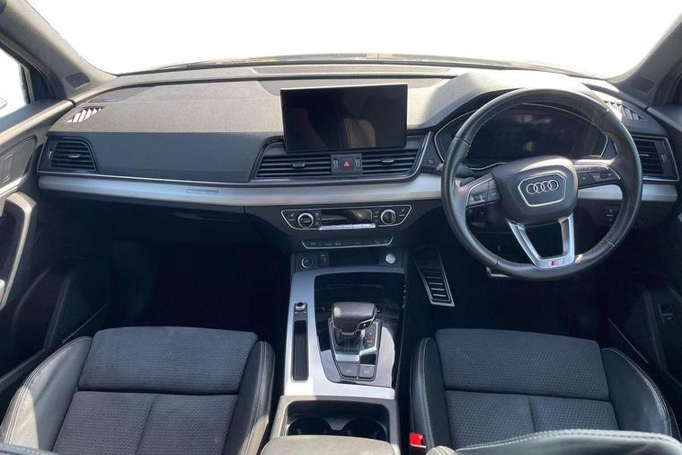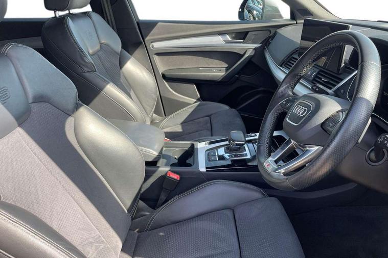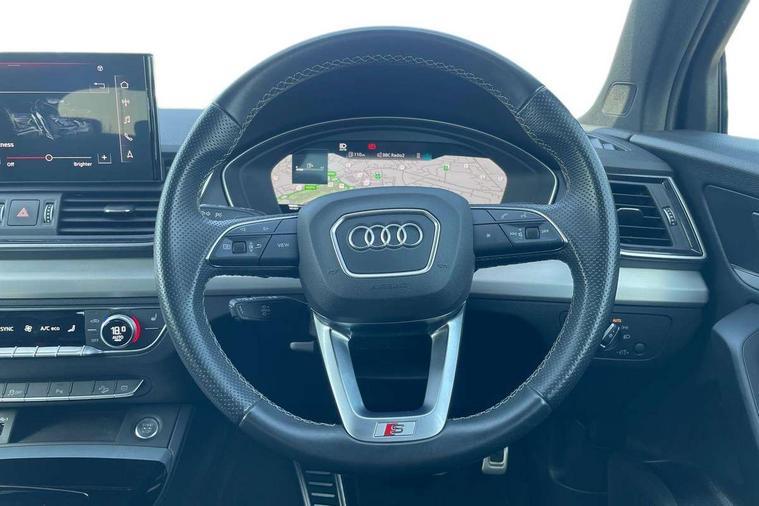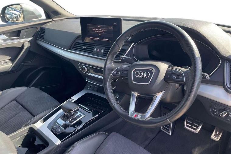 Air vents inserts and centre console in gloss black, Matt brushed aluminium inlays, High gloss pack - Q5, LED interior light pack - Q5, Tyre repair kit, Anti theft alarm, Anti-theft wheel bolts, Remote central locking, Remote control key with SAFELOCK and keyless go, 8 loudspeakers, DAB Digital radio, 3 point seatbelts on all seats, 6 airbags - Driver, front passenger, curtain and side airbags, Electrically operated child locks on rear doors, Electromechanical parking brake, Electronic stabilisation control including ABS, ASR and EDL, First aid kit with warning triangle and vests, Front passenger airbag deactivation, Hill descent control, Hill hold assist, ISOFIX child seat mounting for front passenger seat and ISOFIX child seat mounting with Top Tether for outer rear seats, Multi collision brake assist, Pop-up bonnet for pedestrian protection, Pre sense city, Seatbelt monitoring, Tyre pressure warning, 3rd brake light, Acoustic windscreen, Aluminium roof rails, Auto dimming door mirrors, Auto dimming frameless rear view mirror, Automatic headlight adjustment, Automatic headlights and windscreen wipers, Body colour bumpers, Body colour door mirrors, Body colour rear diffuser with matt aluminium silver surrounds, Body colour underbody protection, Chrome plated exhaust trims, Daytime running lights, Door sills in Selenite silver, Electric adjustable/heated/folding door mirrors, Front air inlet surrounds in aluminium, Front and rear electric windows, Front radiator grille in honeycomb design, LED headlights and LED tail lights, Lower bumpers painted in contrast Manhattan grey, Rear chrome trim strip below lights, Rear privacy glass and rear side windows, Rear side wing doors, Rear wiper, Roof bars, S Line badges on the front wing panels, S Line front and rear bumpers, S Line rear spoiler, S Line side skirts, 2 x USB charging port with aux input socket, 3 rear headrests, 3 spoke leather multifunction steering wheel with S badging perforated leather grips, Black cloth headlining, Comfort front centre armrest, Contrast stitching on seats, steering wheel and gear lever gaiter, Deluxe 3 zone electronic climate control, Front head restraints, Front sport seats with S embossed logo, Front/rear floor mats, Gear lever in black leather, Heated front seats, Height/reach adjustable steering column, Illuminated door sill trims with S logo, Loading edge protection in stainless steel, Luggage compartment cover, Manual seat adjustment with 4-way electric lumbar support, Single front passenger seat, Stainless steel pedals, Sunvisors with vanity mirrors, Tool kit, Acoustic front and rear parking sensor, Audi connect safety and service (e-call), Audi connect with Amazon Alexa Integration, Audi drive select, Audi virtual cockpit plus with 12.3" screen and three different layout designs, Audi wireless smartphone interface, Automatic start-stop system with coasting functionality and efficiency programme, Bluetooth interface, Electro - mechanical power assisted steering, MMI navigation plus with 10.1" touch screen, Power tailgate, Reversing camera, Service interval indicator, Voice control system with Audi hotword activation "Hey Audi", Diesel particulate filter, Quattro on demand, S line sports suspension,