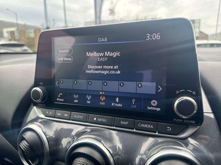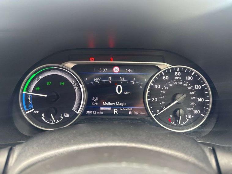 7" full colour TFT screen combimeter, Apple CarPlay and Google Android auto, Drive modes select (Eco, normal and sport), e-Pedal step, Emergency and breakdown call, EV mode selector, Front parking sensor, Intelligent lane intervention, Lane departure warning system, Nissan connect 8" touch screen entertainment system, Nissan connect nav with TomTom traffic, Nissan connect services and Wifi connection, Outside temperature sensor, Power Steering, Rear parking sensor, Traffic sign recognition, Trip computer, Voice recognition, Gasoline particulate filter, 6 speakers, Bluetooth system, USB, Aux-in and 12V socket, DAB Digital radio, Rear console USB port, Auto dimming interior rear view mirror, Auto headlights, Automatic hazard signal with emergency stop signal, Body colour bumpers, Body colour door handles, Electrically adjustable door mirrors with integrated indicators, Follow me home headlights, Front and rear electric window with one touch driver window, Heated and auto folding door mirrors, High beam assist, LED daytime running lights, LED headlamps, LED rear fog lamp, LED rear lamps, Rain sensor windscreen wipers, Rear privacy glass, Rear side wing doors, Rear wiper, Three blink turn signal, 3 height adjustable rear headrests, 3 seat bench in 2nd row, 60/40 split folding rear seat, Automatic climate control, Card holder on driver sunvisor, Cloth upholstery with black and metallic grey syntech leather inserts, Driver and passenger sliding and reclining seats, Driver side rear coat hanger, Driver/passenger sunvisors and vanity mirrors, Front and rear cabin lighting, Front armrest, Front door pockets with bottle holders, Front head restraints, Front/rear passenger grab handles, Grey synthetic leather kneepad, Height adjustable driver's seat, Internal chrome door handles, Leather gearshift knob, Leather steering wheel, Luggage board, Luggage space lighting, Monoform sporty seats, Multifunction steering wheel, Rear door bottle holders, Single front passenger seat, Steering wheel mounted gearshift paddles, Telescopic steering wheel adjustment, Two cupholders in front centre console, Two rear isofix child seat anchorage points with top tether, Welcome light and console tray ambient lighting, ABS with EBD and brake assist, Active ride control, Active Trace Control, Driver and passenger airbags, Driver and passenger side airbags, Electric handbrake with auto hold function, Electronic Stability Programme (ESP), Front and rear curtain airbags, Height adjustable seatbelts, Hill start assist, Intelligent emergency braking with pedestrian and cyclist recognition, Rear door child safety locks, Seatbelt reminder for driver/front passenger and rear seats, Single tone horn, Three 3 point rear seatbelts, Traction control, Tyre pressure monitoring system, VDC Dynamic Vehicle Control, Ventilated rear brake discs, Alarm, Immobiliser, Intelligent key and start push button with walk away lock and approach unlock functions, Remote central locking,