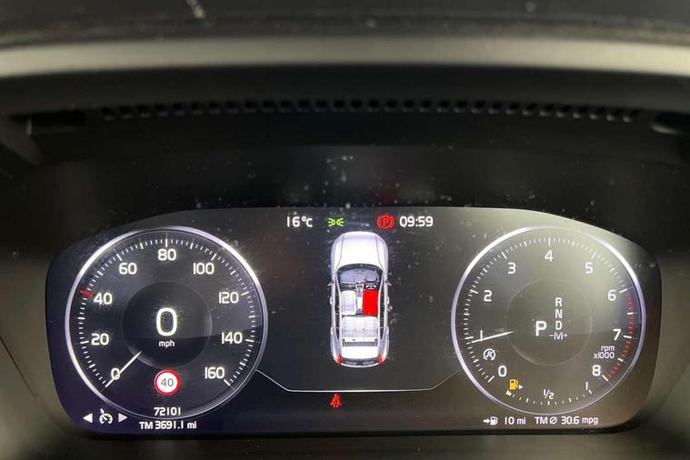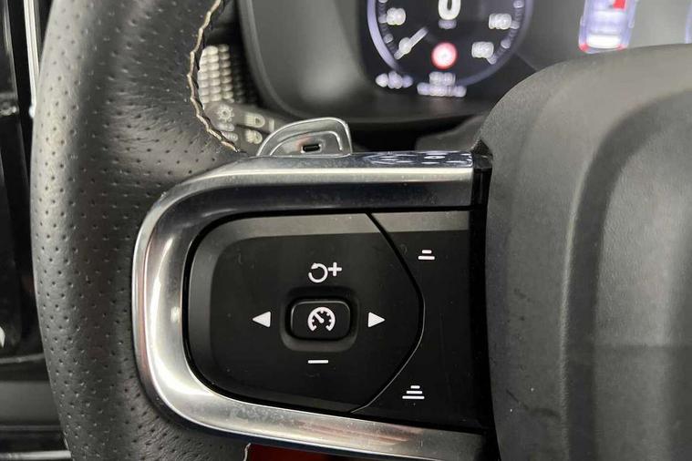Cutting edge aluminium inlay, Anti-theft alarm including immobiliser/volume sensor + level sensor, Fuel flap with deadlocking system, Key integrated remote control central locking, Locking wheel nuts, Private locking for tailgate, DAB Digital radio, Steering wheel mounted remote controls, 3x3 point rear seatbelts, City safety, Drivers knee airbag, DSTC-Dynamic Stability and Traction Control, Dual stage driver/passenger airbags, Electronic parking brake with auto hold, Fasten seatbelt reminder, First aid kit, Hill descent control, Hill start assist, Inflatable curtain, Passenger airbag cut-off device, Road sign information display, Run off Road Mitigation, Run off Road Protection, Seatbelt reminder and pretensioners, SIPS (Side Impact Protection System), SIPS airbags, Slippery road and hazard light alert, Tyre pressure monitoring system, Vehicle deceleration control with Anti-lock Brake System, Electronic Brake Distribution and Emergency Brake Assist, Warning triangle, WHIPS whiplash protection system - front, Adaptive brake lights with high level LED brake lights, Auto dimming interior mirror, Automatic headlamp levelling, Black stone door mirrors, Black stone roof, Colour coordinated auto folding and heated power door mirrors, Dark tinted glass for rear windows + rear screen + side luggage area window, Dual integrated exhaust pipes with high gloss black surround, Electrically adjustable and heated door mirrors, Embossed rear side roof pillar, Front and rear electric windows, Front tread plates, High gloss black front and rear skid plate, High gloss black lower front bumper, High gloss black mesh front grille with high gloss black surround, High gloss black roof rails, High gloss black window trim, Home safe and approach lighting, LED front fog lights, LED Headlights + Active high beam incorporating daytime running lights, Rain sensor windscreen wipers, Rear wiper, Roof antenna, Roof spoiler, Visible VIN plate, 12V socket in front tunnel console and cargo compartment, 2 zone electronic climate control with Clean zone air quality system + pollen filter + cooled glovebox, 3 spoke leather steering wheel with chrome trim, 60/40 split folding rear seat, A-pillar parking ticket holder, Ambient front door and instrumental panel lighting, Black headlining, Bright metal luggage threshold, Centre console cupholders and storage, Driver seat height/tilt/lumbar adjust, Driver's side lower dashboard credit card storage compartment, Extended front seat cushions, Front door pocket and front cupholder illumination, Front footwell illumination, Front tunnel net pocket and integrated waste bin, Glovebox bag hook, Height/reach adjustable steering column, High gloss centre tunnel deco, Illuminated luggage compartment, Illuminated tailgate, Illuminated vanity mirrors + ticket holder, Isofix attachments on rear seats, Leather coloured key integrated remote, Leather/nubuck upholstery, Load protection net, Lockable/illuminated glovebox, Multicolour theatre lights, Passenger seat adjustable for lumbar support, Perforated leather gearknob, Perforated leather steering wheel with gearshift paddles, Rear armrest / integral cup holders / storage tray, Rear reading and courtesy lights, Sports pedals, Underfloor stowage compartment, 12.3" Active TFT crystal driver's instrument display, 9" centre console portrait touch screen, Adjustable steering wheel force, Bluetooth hands free telephone kit, Drive mode selector, Lane keep assist with driver alert control, Oncoming Lane Mitigation, Sensus navigation with European mapping and traffic information, Speed limiter, Speed sensitive steering, Voice control system, Volvo on call,