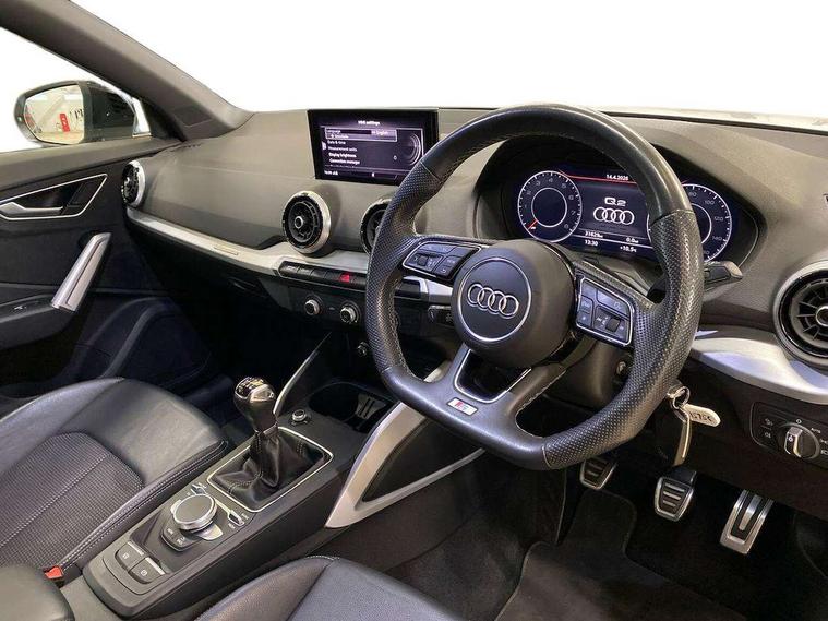 Aluminium interior element, Matt brushed aluminium trim inlays, Black styling pack - Q2, Anti theft alarm, Anti theft wheel bolts, Electronically operated child locks, 2 x SDXC card reader, 8 passive loudspeakers, DAB Digital radio, DVD Drive, 3x3 point rear seatbelts, 6 airbags - Front, curtain and front side airbags, Electromechanical parking brake, Electronic stabilisation control including ABS, ASR and EDL, Hill hold assist, Pre-sense front with pedestrian recognition, Seatbelt monitoring, Tyre pressure warning light, Warning triangle and first aid kit, Auto dimming rear view mirror, Black window trims, Body colour door mirrors, Brilliant black exterior mirror caps, Bumper in full body colour paint finish, Electrically adjustable, folding, auto dimming and heated door mirrors with integrated LED side indicators, Front windscreen with grey tinted sunband, Privacy glass - dark tinted rear and rear side windows from B-pillar backwards, Wheel arch trims in manhattan grey, 3 spoke flat bottomed multi-function leather sport steering wheel, 4-way electric lumbar support for front seats including seat height adjustment for both front seat, 60/40 split folding rear seat bench, Black cloth headlining, Front and rear head restraints, Front centre armrest, Front/rear floor mats, Height/reach adjust steering wheel, Illuminated door sill trims with S logo, ISOFIX child seat mounting for front passenger with airbag deactivation and outer rear seat including top tether attachment point for outer rear seats, Stainless steel pedals, Tool kit, Audi connect navigation and infotainment includes innovative services, Audi connect remote and control connects your vehicle to your smartphone, Audi drive select, Audi smartphone interface, Audi virtual cockpit, Automatic start/stop system with recuperation, Bluetooth interface includes bluetooth audio streaming, Cruise control, MMI navigation plus with MMI touch, Power operated tailgate, Progressive steering, Rear parking sensors,