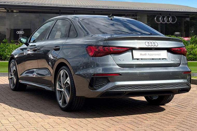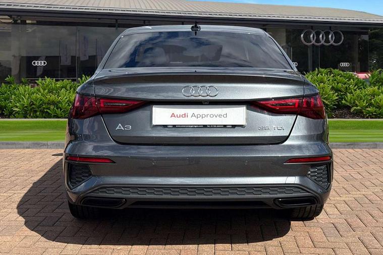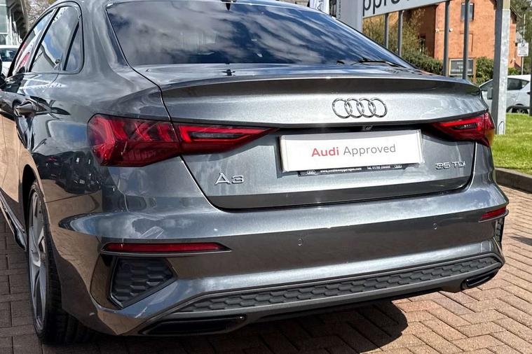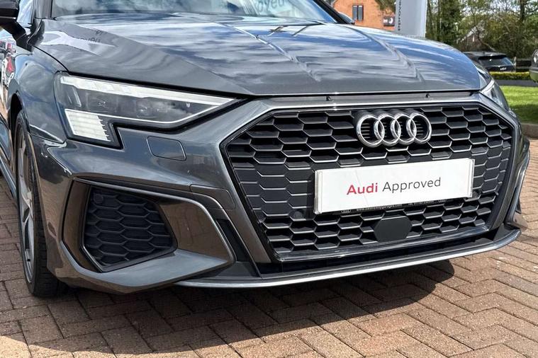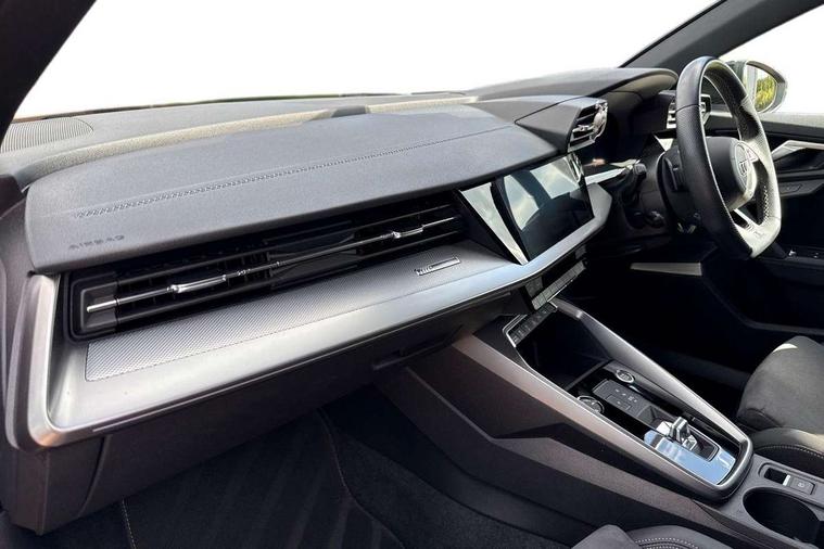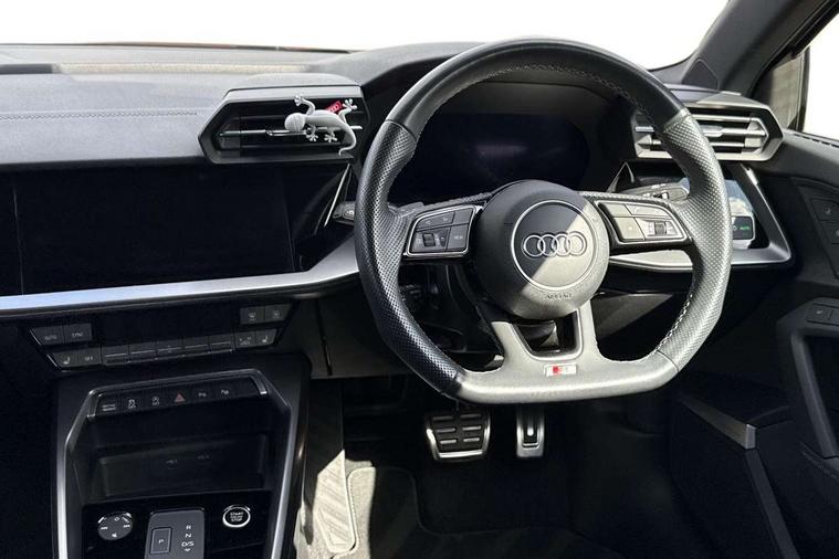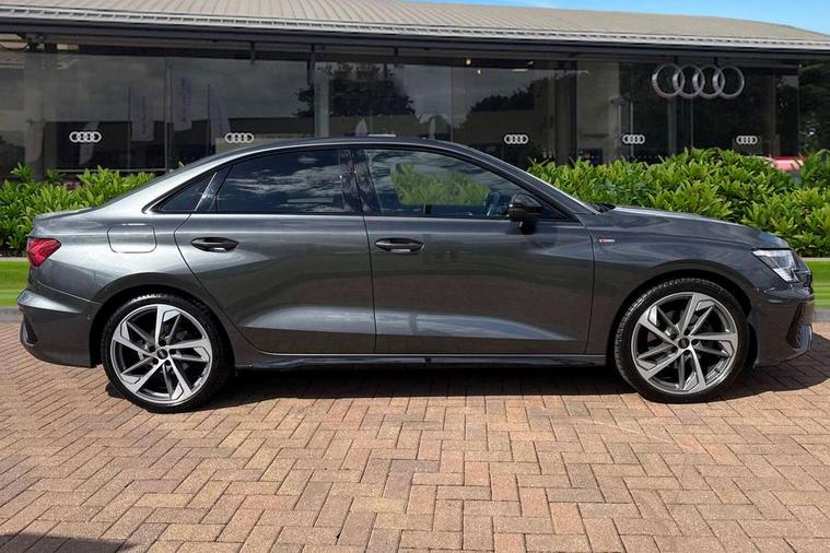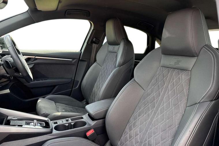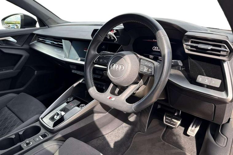 Audi connect emergency call and service, Audi drive select (Auto, Comfort, Dynamic, Efficiency and Individual), Audi smartphone interface, Audi virtual cockpit plus - 12.3" dynamic digital instrument cluster, Automatic start/stop system with recuperation, Bluetooth interface, Collision avoidance assistant, Electromechanical power speed sensitive steering, Lane departure warning system, MMI Navigation Plus with high resolution 10.1" colour touch screen display, Service indicator, Voice control system with natural language interaction, Diesel particulate filter, Sports suspension, 2x USB Type C ports (for charging and data transfer), 6 passive loudspeakers, CD player, DAB Digital radio, 3rd brake light, Acoustic glass windscreen, Audi matrix LED headlights, LED rear lights, dynamic front and rear indicators and headlight cleaning system, Auto dimming frameless rear view mirror, Electrically adj heated/folding + automatically dimming exterior mirrors with memory + automatic kerb side function for passenger side exterior mirror, Front electric windows, Illuminated door sills with aluminium inserts at the front with S logo, Integrated LED indicators in door mirrors, LED daytime running lights, Light and rain sensors, Model and engine designation badges at rear, Privacy glass - dark tinted rear window, rear door and side windows, Rear boot, Rear electric windows, Rear side wing doors, S roof spoiler, 12V socket and storage compartment in front centre console, 3 seat bench in 2nd row, 4 way electrically adjustable lumbar support for driver and front passenger, 40/20/40 split folding rear seat bench with cupholder, Black cloth headlining, Dual zone electronic climate control, Electrically adjustable front seats with memory function for driver's side and exterior mirrors, Front and rear centre armrest in leather, Front and rear headrests, Front/rear floor mats, Heated front seats, Height and reach adjustable steering wheel, Illuminated vanity mirror, Interior lighting - glove compartment light and right hand side, Luggage compartment floor covering, Manual boot compartment lid, Single front passenger seat, Stainless steel pedals and front footrest in black, Aluminium interior elements pack - A3 Saloon, Black styling pack - A3/S3, Dinamica microfibre/mono.pur 550 artificial leather pack - A3 Saloon, Extended ambient lighting pack - A3/S3 Saloon, LED interior lighting pack - A3 Saloon, 3x3 point rear seat belts, Driver and front passenger airbag with passenger airbag deactivation, Electronic Stabilisation Control (ESC) including ABS, ASR and EDL, First aid kit with warning triangle and 2 safety vests, Front side airbags with head airbags and interaction airbag, Hill hold assist, Pre-sense front with pedestrian and cyclist detection, Seatbelt monitoring, Tyre pressure loss indicator, Anti theft alarm, Anti-theft wheel bolts, Electronically operated child locks, Immobiliser, Remote control central locking, Aluminium air vent surrounds, Aluminium trim elements, Dark spectrum aluminium inlays, accent surfaces in the dashboard and centre console in platinum grey silk effect paint finish, 19" 5 arm trapezoid design alloy wheels in matt grey with diamond cut finish,