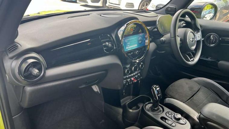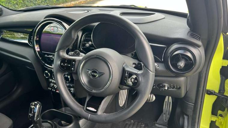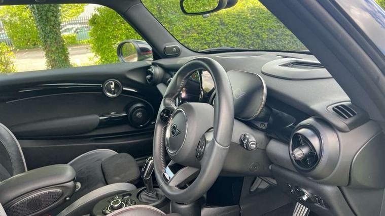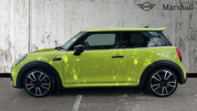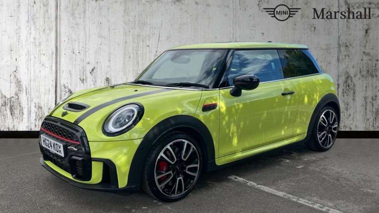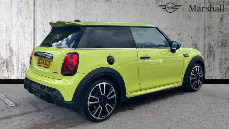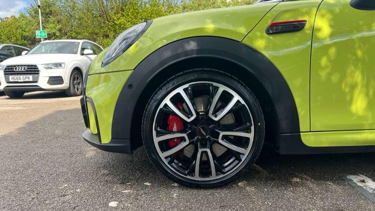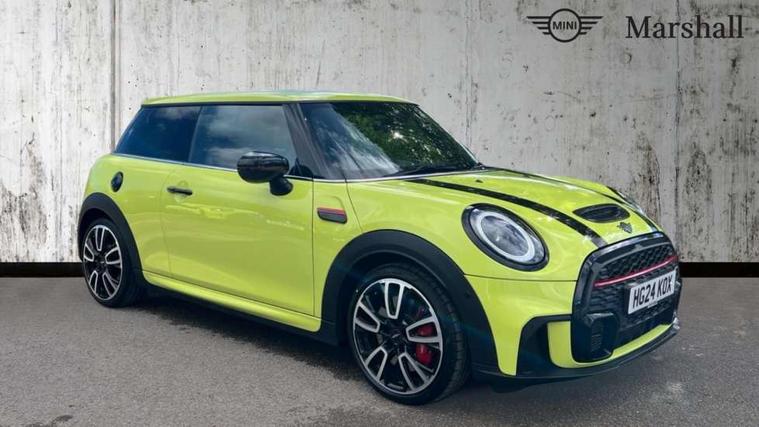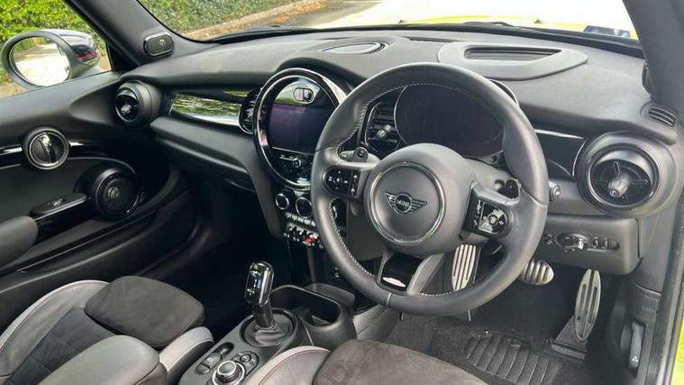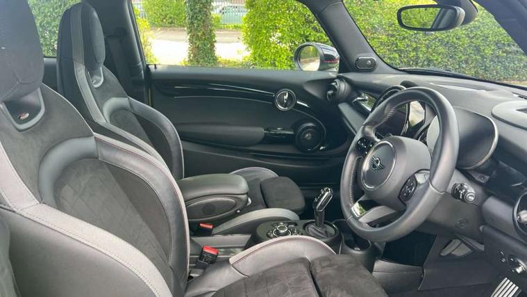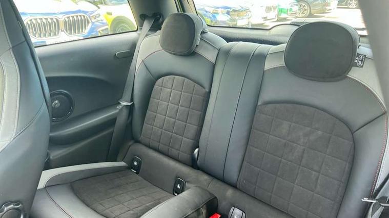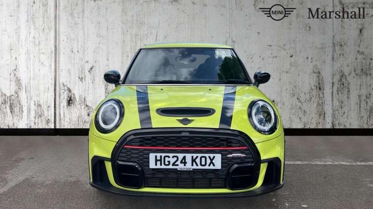 Apple CarPlay, Automatic start/stop function with brake energy recuperation, Compatible mobile phone bluetooth with audio streaming, Cruise control with brake assist, Electro-mechanical speed dependant steering assistance, Flexible car sharing preparation, Instrument cluster, MINI Driving Modes - centre toggle switch to control driving setting (sport, mid and green), Mini E-call, MINI TeleServices, On board computer, Rear park distance control, Service interval indicator, Double Vanos system, Eight speed steptronic sport transmission, with gearshift paddles, Fully variable valve control, High precision injection, Performance Control, 8.8" touchscreen with LED ring, FM tuner and DAB digital radio, 3rd brake light, Automatic headlight activation switch, Bonnet scoop, Dynamic brake lights, Electric front windows, Heated rear window, Heated windscreen washer jets, JCW Aerodynamic kit - Front and rear bumpers with sporty JCW styling and part-painted side sills with MINI John Cooper Works door sill finishers, John Cooper Works logo above an individual grille strut in Chilli Red, John Cooper Works rear spoiler, LED headlight with closed ring and daytime driving lights, Radiator grille piano black border with honeycomb structure in black matt, Rain sensor window wipers, Rear fog lights, Rear LED lights with union jack design, Rear window wiper, Side scuttle panel with integrated indicator, Side scuttle with MINI John Cooper Works logo in black high-gloss with red border, Sun/heat protection glass, Two central exhaust tailpipes with chrome finisher, White indicator lenses, 12V Accessory socket in centre console, 2 seat bench in 2nd row, 4 lashing eyes in luggage compartment, 60/40 split folding rear seat, Anthracite headliner including grab handles and clothes hooks, Carbon black colour line - Knee roll and door armrest, Chrome interior highlights, Cupholders, Front and rear isofix with front passenger airbag deactivation, Front floor mats in velour, Glove compartment, Height and length steering column adjustment, Interior lighting with 12 different colours across the dashboard, underneath door bezel with illuminated laser-engraved design on central display, JCW Sport seats with integrated headrests, adjustable thigh support and John Cooper Works logo, Leatherette gearshift lever and handbrake gaiters, LED reading lights, vanity mirror lights, front foot well light and spotlight on front seats, Manual air conditioning, Mechanical seat adjustment - forward/back & backrest for front seats and driver seat height adjust, Multifunction steering wheel, Passenger seat height adjuster, Rubberised stainless steel pedals, Single front passenger seat, Storage compartments in doors, Storage pocket on back of front seats, Sunvisors with vanity mirrors, Tool kit, Walknappa leather steering wheel with grey seam and John Cooper Works badge on Piano Black lower steering wheel spoke, Navigation pack without Apple Carplay - Mini Hatchback, Piano black exterior pack - JCW, 3 point seatbelts on all four seats, 4-piston fixed-calliper brakes front, 6 Airbags - front, side, head and seat belt tensioners, Anti-lock braking system (ABS), DSC - Dynamic Stability Control, Front and rear disc brakes, Red brake callipers with John Cooper Works logo, Single tone fanfare horn, Tyre pressure monitoring system, Alarm system with tilt sensor, monitoring doors, bonnet interior and tailgate, Electronic vehicle immobiliser, Start/stop toggle with keyless go,