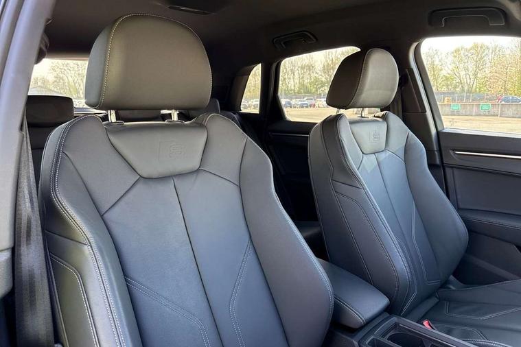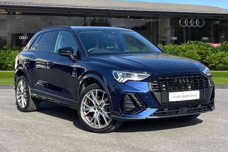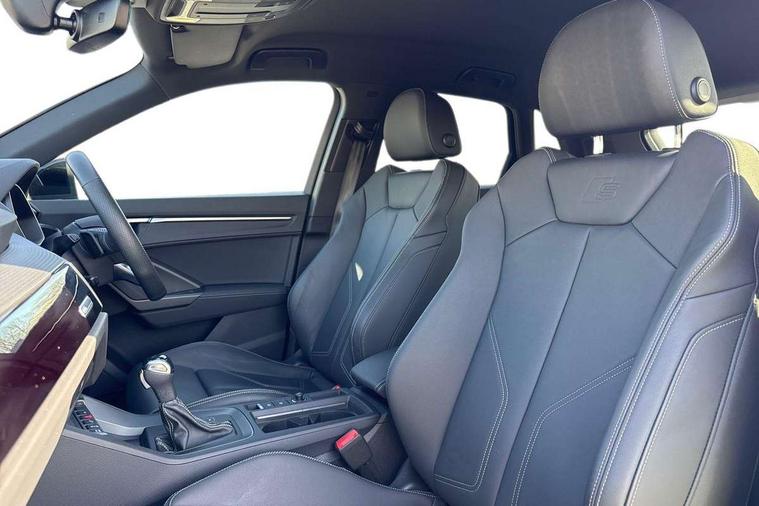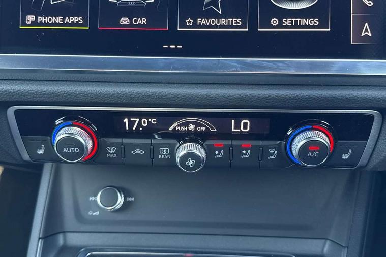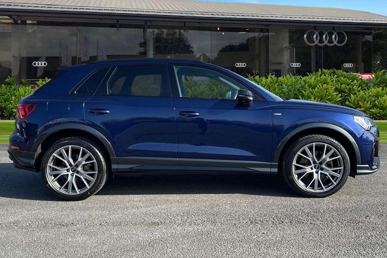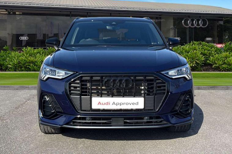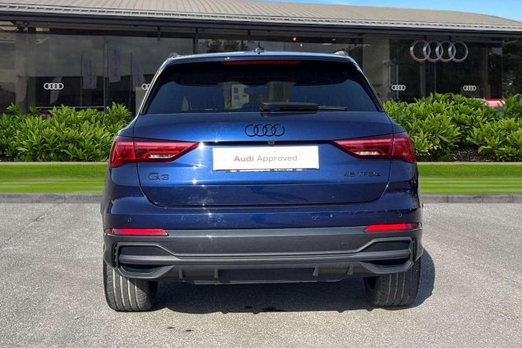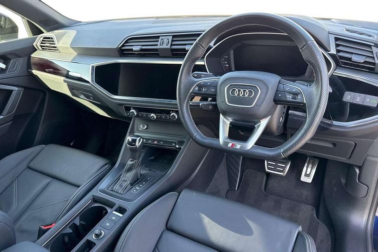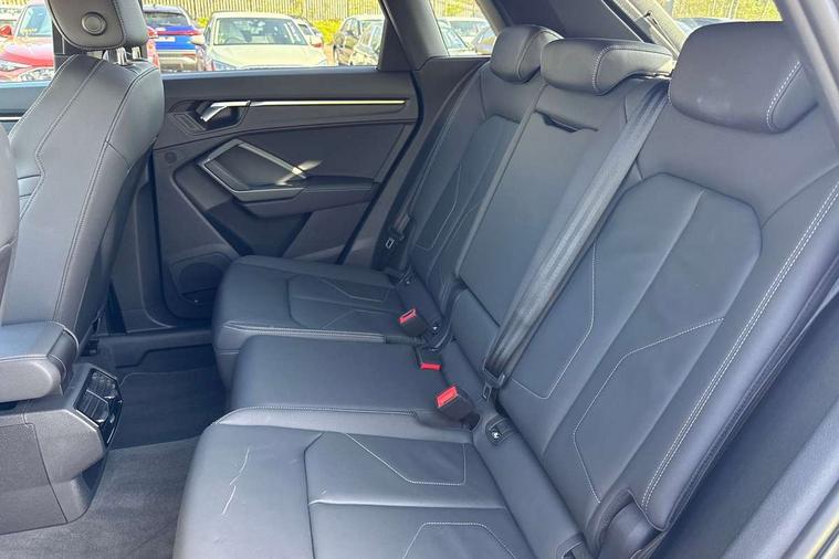 Amazon alexa Integration, Audi drive select, Audi lane departure warning, Audi smartphone interface includes wireless Apple carplay/Android Auto, Audi Virtual Cockpit - 10.25" display, Bluetooth interface, Camera based traffic sign recognition, Legal emergency call, MMI Navigation Plus with high resolution 10.1 inch touchscreen colour display, Power operated tailgate, Progressive steering, Service interval indicator, Start stop system with recuperation, Voice control system with natural language interaction, 3 pin 10 amp domestic charging cable, 3.6 kw On-board charger, Type 2 mode 3 32 amp charging cable, Type 2 socket for AC charging, 2 USB-C ports with charge and data functions, 6 passive loudspeakers, DAB digital radio module, Acoustic windscreen, Auto dimming frameless rear view mirror, Black roof rails, Electrically folding, adjustable and heated door mirrors with integrated LED side indicators and kerb view function for passenger side, Front and rear electric windows, Front fog lights, Grille vertical bars in aluminium silver/Matt, High gloss black finish B and C pillars, LED Dynamic rear indicators, LED headlights with LED daytime running lights, LED rear lights, LED third brake light, Privacy glass dark tinted rear and rear-side windows (from B-pillar backwards), Rain and light sensors, Rear diffuser grille in grained matt black, Rear diffuser strip in matt anthracite black, Rear side wing doors, Rear wiper, S line bumpers in contrasting Manhattan grey, Variable front intermittent wipers, 12V socket in rear centre console, 3 seat bench in 2nd row, 40:20:40 folding with manual adjustment for 60:40 forwards/backwards position and backrest angle, Adjustable rear seat bench/backrest with centre armrest and cupholder, Black cloth headlining, Dual zone electronic climate control, Front and rear black floor mats with contrast stitching in rock grey, Front and rear headrests, Front and rear roof module including reading lights, Front centre armrest, Glove compartment lighting, Height and reach adjustable steering wheel, Illuminated door sill trims with S logo, ISOFIX child seat mounting for front passenger with airbag deactivation and outer rear seat including top tether attachment point for outer rear seats, Luggage compartment light, Manual front seats with height adjustment, Perforated leather gearknob, Single front passenger seat, Stainless steel luggage compartment sill finisher, Stainless steel pedals, Tool kit, Ambient lighting pack - Q3, Black styling pack - Q3, Non smoking pack - Q3, 3x3 point rear seatbelts, 6 airbags - Driver, front passenger, curtain and side windows, Audi pre-sense front with pedestrain and cyclist recognition, Electrically operated child locks on rear doors, Electromechanical parking brake, Electronic stabilisation control including ABS, ASR and EDL, Front seatbelt reminder, Hill descent control, Hill hold assist, Pre sense basic, Seatbelt monitoring, Tyre pressure warning, Warning triangle and first aid kit, Anti theft alarm, Anti theft wheel bolts, Immobiliser, Remote central locking, Aluminium look interior elements, Detail dashboard around MMI touch colour display in glass look, black with surround in aluminium look, Leatherette door armrest, Piano black inlay, 19" 5 twin arm design diamond cut audi sport alloy wheels in matt grey look, Tyre repair kit,