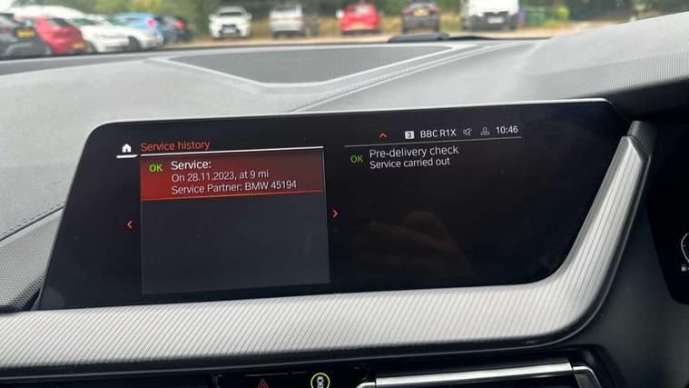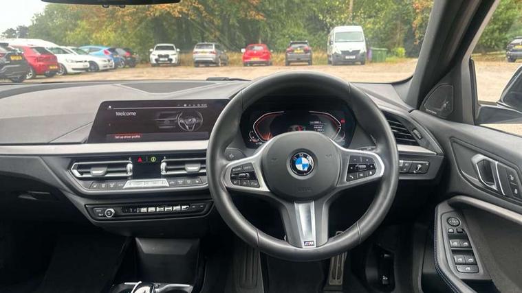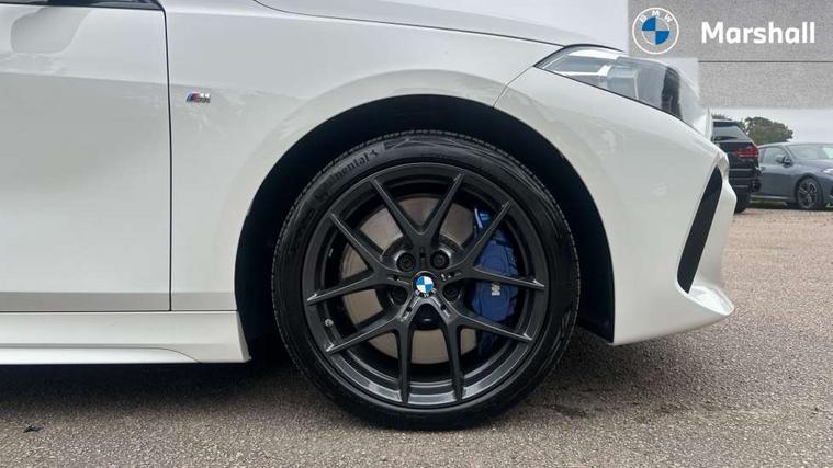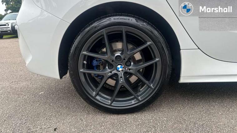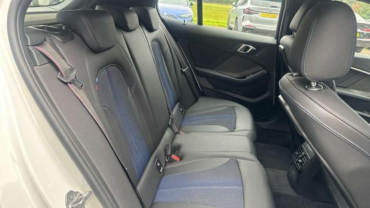 Active guard plus, Attentiveness assist, BMW ConnectedDrive online services, BMW Teleservices, Check Control warning system for monitoring of lights and door/luggage compartment open warning, Cruise control with speed limiter, Eco pro mode, Front axle single joint with specific axle kinematics to minimise drive influences on steering + provide increased rigidity agile driving behaviour, Integrated owners handbook, Lane departure warning system, Oil sensor for level and grade, On board computer, Optimum shift indicator, Personal Profile, Pull away assistant, Rigidly mounted rear subframe - Multi link construction with separate spring / damper configuration and excellent driving characteristics, Speed limit Info including no-overtaking indicator, Aluminium lightweight construction, Anti roll bar front and rear, Balancer shaft, Double VANOS twin scroll turbocharging system, Drive Performance Control, Electronic differential lock, High precision injection, M sport suspension, Petrol Particulate Filter, Twin tube gas filled shock absorbers with degressive characteristic curve, VALVETRONIC engine management, DAB Digital radio, Auto dimming rear view mirror, Automatic headlight beam throw control, Automatic windscreen wipers and automatic headlight, Body colour door handles, Body colour mirror caps, Body colour roof trims, Chrome 'M' logo side designation, Chrome exhaust twin tailpipes round 90mm in left, Chrome kidney grille frame with Satin Aluminium struts, Direction indicator side lights in exterior mirrors, Electrically adjustable exterior mirror with mirror adjustment switch on drivers armrest and aspheric on driver side, convex on passenger side, Fading support, Folding side mirrors with auto dimming/folding wing mirrors with auto dimming, Follow me home headlights, Front and rear bumper system with replaceable deformation elements, Front and rear electric windows with open and close fingertip control, anti trap facility and comfort closing, Front door sill finishers in black plastic with M designation in metallic look, Green tinted heat protection glazing, High gloss shadowline window frame, Recess cover mirror frames and B/C pillar embelisher trim, High level third brake light, Integrated front windscreen with washer jets, LED daytime running lights, LED eyebrow turn indicators, LED front fog lights, Lightweight engineering, Matt black air guide grilles, Matt black wheel arch trim, Model designation on electric bootlid, Nearside reverse light in rear light cluster, Preparation for high beam assistant, Rear fog lights, Rear side wing doors, Rear window wiper, Shark fin antenna, Trailer stabilisation logic, Visible VIN plate, Welcome lighting, 12V power socket in front centre console with blanking plug, 3 rear seat head restraints, 3 seat bench in 2nd row, 3 spoke sports leather steering wheel with black leather and stitching, pearl chrome decorative finish, specific M Badge, Anthracite headlining, Black boot net with lashing eyes, Cargo function on 2nd seat row, Child seat ISOFIX attachment for two outer rear seats and front passenger seat with anchorage points, Conditioned based service, Driver and front passenger backrest net on rear, Driver and front passenger seat heating, Driver side folding compartment in instrument panel, Folding rear clothes hook, Four grab handles integrated in roof lining, Front and rear door pockets with bottle holders, Front and rear side armrest integrated into door trim, Front armrest, Front sports seats, Glove compartment, Height adjustable front head restraints, Luggage compartment for bag hooks on left and right, foldable luggage compartment liner and four lashing eyelets, Manual adjust steering wheel, Multi-function controls for steering wheel, Single front passenger seat, Storage compartment in centre console, Storage compartment in luggage compartment, Stowage of the parcel shelf in luggage compartment trim, Sun visors with vanity mirrors and insert tab, Two front centre console cupholders, Two zone automatic air conditioning, Type C two USB ports in rear centre console, Velour floor mats, Additional interior lighting pack - 1 Series, BMW live cockpit professional pack- 1 Series, Connected pack professional - 1 Series, Interior lights pack - 1 Series, M Sport exterior styling aerodynamics pack - 1 Series, 2 tone horn, 3 point seatbelts on all seats, front pyrotechnic belt tensioners, stopper and belt force limiters, rear coded belt buckles, Airbags - Front driver/passenger, front and rear curtain head protection, front side, manual deactivation of front passenger airbag, Anti lock braking system (ABS) with brake assist, BMW emergency call, Brake drying, Braking readiness, Child proof locking system in rear door, City braking function, Comfort modes, Cornering brake control, Crash sensor activating of airbags, Unlocking doors, hazard warning lights, fuel cut off, interior lighting+activation of safety battery terminal clamp, Driver and front passenger seat belt security check, Dynamic stability control + (DSC+), Dynamic Traction Control - DTC, Electrically operated hand brake including automatic hold function, Front and rear disc brakes, Seatbelt warning, Side impact protection, Tyre pressure monitoring system, Warning triangle and first aid kit, Central locking switch for all doors, fuel filler cap and luggage compartment, Deadlocking function system to all doors, Drive away locking system on all doors and luggage compartment with de-activated in iDrive settings, Locking wheel bolts, Remote control with integrated key with High-gloss Black inlay and M designation and 1 button for open/ close lock, window, open luggage compartment, Start/stop button illuminated in centre console with keyless engine start and auto start stop deactivation button, Thatcham Cat.1 alarm and immobiliser, Wheel slip limitation close to the actuator (ARB), Contrast stitching on instrument panel, 18" Burnished M double spoke bi-colour alloy wheels finished in orbit grey - styl