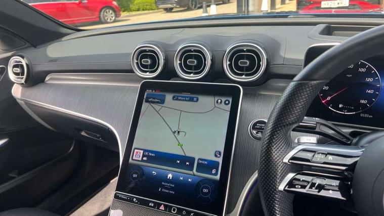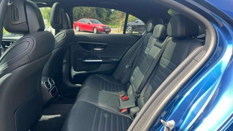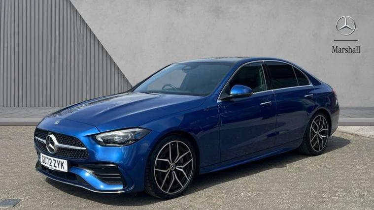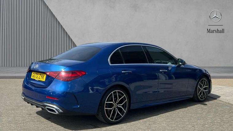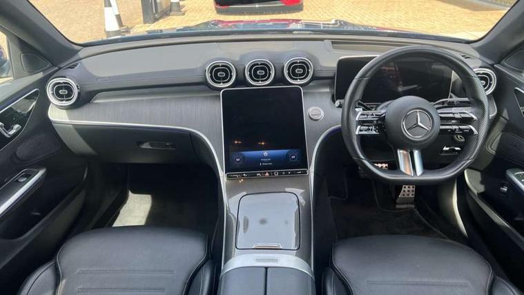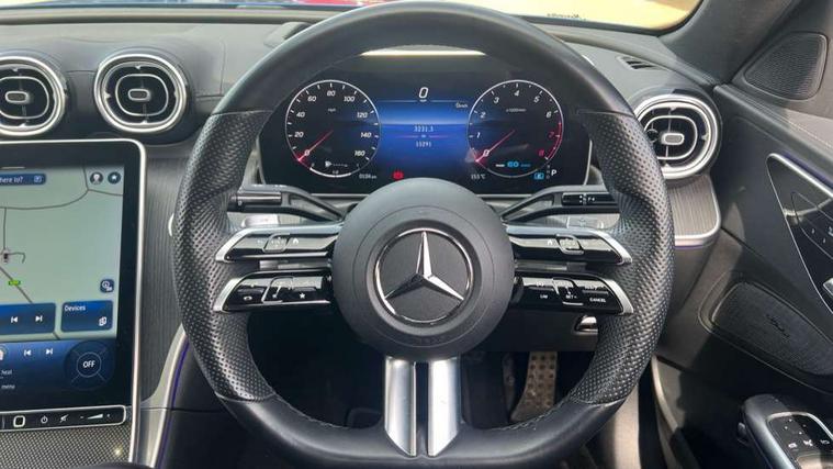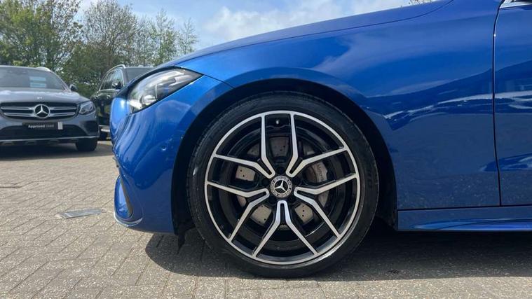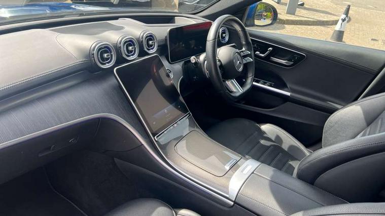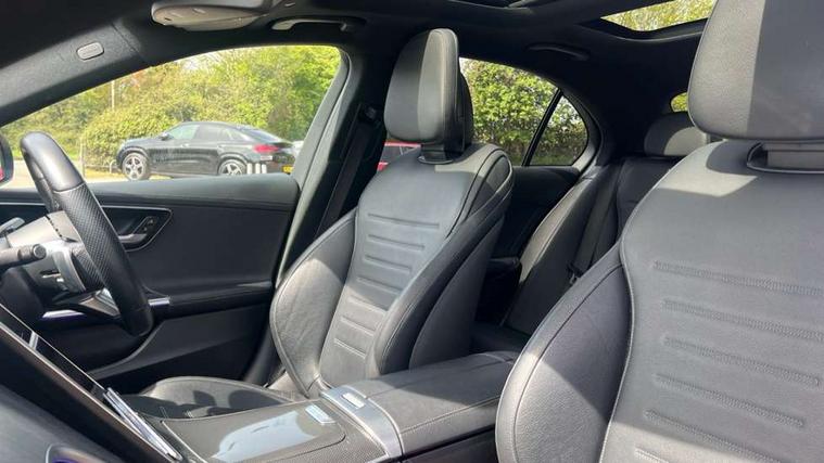 11.9" high resolution multimedia colour display, 12.3" digital instrument cluster display, AMG DYNAMIC SELECT with a choice of driving modes (Slippery, Comfort, Sport, Sport+, Individual), Attention assist, E-call, Extended MBUX functions, Finger print sensor, Fluorescent jacket for driver, Head up Display, MBUX augmented reality for navigation, MBUX navigation premium, MBUX voice control activated by keywords "Hey Mercedes", Mercedes connect me, Mercedes me remote services, Outside temperature gauge, Pre-installation for digital key transfer, Remote boot release, Service indicator (ASSYST), Smartphone integration, Sports direct steer speed sensitive steering, Status display for rear seat belts in instrument cluster, 66l fuel tank with increased capacity, 9G TRONIC 9 speed automatic transmission, Agility control sports suspension and lowered by 15 mm, Petrol Particulate Filter, Sporty engine sound system, DAB Digital radio, MBUX multimedia system, Adaptive brake lights, Adaptive high beam assist plus, AMG body styling front apron, rear apron and side skirts, AMG front bumper with sporty air intakes and chrome elements, AMG rear bumper with high gloss chrome elements, AMG side skirts in vehicle colour, B-pillar trim in glossy black, Body coloured bumpers, Body coloured door mirrors, Chrome beltline trim, Daytime running lights, Digital light LED headlamps, Electric panoramic sliding sunroof, Electric windows with one touch opening/closing and obstruction sensors, Electrically adjustable and heated door mirrors, Green tinted glass, LED Indicators, LED tail lights, LED third brake light, Powerdomes on bonnet, Privacy glass, Radiator diamond grille with integrated Mercedes Benz star and louvre silver with chrome pins, Radio aerial integrated into rear window, Rain sensor with automatic windscreen wiper activation, Rear boot, Rear side wing doors, Two visible exhaust pipes integrated into rear bumper, 3 spoke flattened bottom AMG multifunction steering wheel in black nappa leather with chrome inserts and perforated leather in grip area, 40:20:40 split folding rear bench seat, AMG Leather upholstery, AMG sports seats, Audio and onboard settings control on multifunction steering wheel, Auto Mercedes-Benz child seat recognition sensor, Black air vents with silver chrome elements, Black floor mats with AMG lettering, Black roof liner, Door trim elements high gloss black with silver chrome surroundings and switches, Double cupholder in centre console, Electrically height/reach adjustable steering column, Folding rear seat backrest, Front and rear head restraints, Front centre armrest with storage compartment, Gearshift paddles on steering wheel, Heated front seats, Illuminated door sills with Mercedes Benz lettering, Illuminated glove compartment stowage, Interior lighting - 64 colour Ambient lighting, Overhead control unit in high gloss black, Rear top tether child seat ISOFIX attachment, Single front passenger seat, Sports pedals with stainless steel surfaces and rubber studs, Sunvisors with illuminated vanity mirrors, Thermotronic automatic 4 zone climate control, Interior lighting package - C Class, Memory package - C Class, Mirror pack - C Class, Parking package with 360 degree camera - C Class, Seat comfort pack - C Class, Stowage space pack - C Class, USB package - C Class, 3 rear 3 point seatbelts, Active bonnet pedestrian safety measure which detects an impact and raises bonnet, Adaptive brake system with HOLD function and brake drying in the wet, Anti-lock braking system (ABS), Black seat belts, Brake calipers with Mercedes-Benz lettering + perforated front brake discs, Child proof door locks, Drivers knee airbag, Drivers pelvis airbag, Dual stage driver/passenger airbags, Electric parking brake, Electronic Stability Programme (ESP), Front centre airbag between driver and front passenger seats, Front side airbags, Larger brake discs on front axle, Rear passenger airbag, Rear seatbelt warning indicator, Sports braking system with perforated front disc brakes, Tyre pressure monitoring system, Warning triangle and first aid kit, Window airbags, Central locking with interior switch, automatic locking and crash sensor with emergency opening function, Chrome surround electric key, Keyless Go, URBAN GUARD vehicle protection (Thatcham Category 1) consisting of break-in, anti-theft alarm system (ATA), interior monitoring and tow-away protection, Artico man-made leather dashboard with contrast stitching, Centre console trim in anthracite line structure lime wood, 19" AMG 5 double spoke design aerodynamically optimised alloy wheels painted in black with high sheen finish, Summer tyres, TIREFIT with tyre inflation compressor,