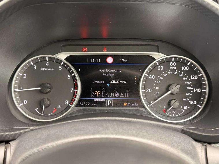 7" full colour TFT screen combimeter, Apple CarPlay and Google Android auto, Drive modes select (Eco, normal and sport), Emergency and breakdown call, Front parking sensor, Idle start/stop system, Intelligent lane intervention, Lane departure warning system, Nissan connect 8" touch screen entertainment system, Nissan connect nav with TomTom traffic, Nissan connect services and Wifi connection, Outside temperature sensor, Power Steering, Rear parking sensor, Traffic sign recognition, Trip computer, Voice recognition, Gasoline particulate filter, 6 speakers, Bluetooth system, USB, Aux-in and 12V socket, DAB Digital radio, Rear console USB port, Auto dimming interior rear view mirror, Auto headlights, Automatic hazard signal with emergency stop signal, Body colour bumpers, Body colour door handles, Electrically adjustable door mirrors with integrated indicators, Follow me home headlights, Front and rear electric window with one touch driver window, Heated and auto folding door mirrors, High beam assist, LED daytime running lights, LED headlamps, LED rear fog lamp, LED rear lamps, Rain sensor windscreen wipers, Rear privacy glass, Rear side wing doors, Rear wiper, Three blink turn signal, 3 height adjustable rear headrests, 3 seat bench in 2nd row, 60/40 split folding rear seat, Automatic climate control, Card holder on driver sunvisor, Cloth upholstery with black and metallic grey syntech leather inserts, Driver and passenger sliding and reclining seats, Driver side rear coat hanger, Driver/passenger sunvisors and vanity mirrors, Front and rear cabin lights, Front armrest, Front door pockets with bottle holders, Front head restraints, Front/rear passenger grab handles, Grey synthetic leather kneepad, Height adjustable driver's seat, Internal chrome door handles, Leather gearshift knob, Leather steering wheel, Luggage board, Luggage space lighting, Monoform sporty seats, Multifunction steering wheel, Rear door bottle holders, Single front passenger seat, Steering wheel mounted gearshift paddles, Telescopic steering wheel adjustment, Two cupholders in front centre console, Two rear isofix child seat anchorage points with top tether, Welcome light and console tray ambient lighting, ABS with EBD and brake assist, Active ride control, Active Trace Control, Driver and passenger airbags, Driver and passenger side airbags, Electric handbrake with auto hold function, Electronic Stability Programme (ESP), Front and rear curtain airbags, Height adjustable seatbelts, Hill start assist, Intelligent emergency braking with pedestrian and cyclist recognition, Rear door child safety locks, Seatbelt reminder for driver/front passenger and rear seats, Single tone horn, Three 3 point rear seatbelts, Traction control, Tyre pressure monitoring system, VDC Dynamic Vehicle Control, Ventilated rear brake discs, Alarm, Immobiliser, Intelligent key and start push button with walk away lock and approach unlock functions, Remote central locking,
