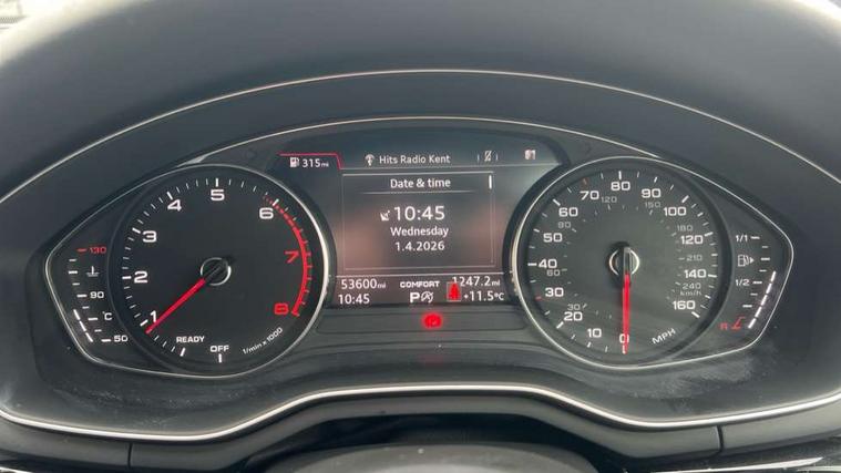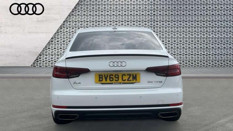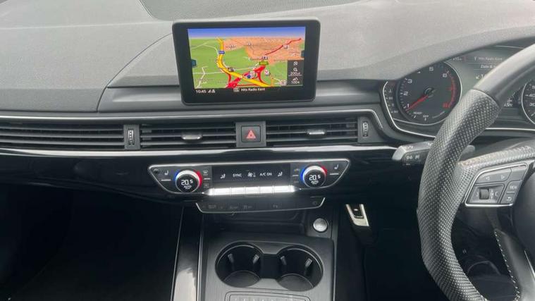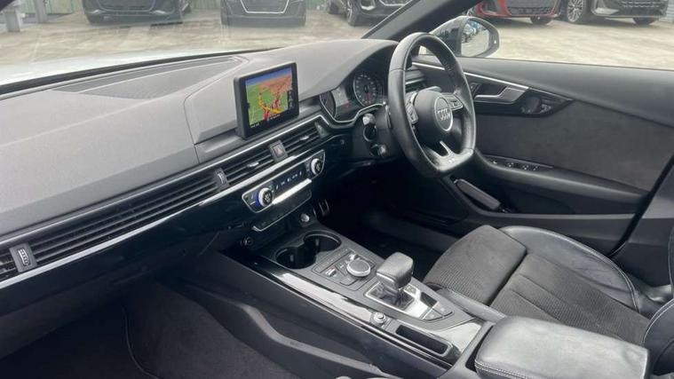 7" Colour driver information system, Audi connect safety and service (e-call), Audi drive select, Audi parking system plus with front and rear sensors, Audi Pre sense collision avoidance, Bluetooth interface, Electric boot release, Electromechanical power steering, MMI SD card Navigation, Service interval indicator, Stop/start button, Voice control system, 54 litre fuel tank, 2 USB interfaces and Aux-In jack, DAB digital radio module, Acoustic windscreen, Air inlets in titanium black, Auto dimming rear view mirror, Automatic headlights + automatic windscreen wipers, Blue tinted glass, Body colour bumpers, Body colour door handles, Chrome rolled exhaust, Chrome tailpipe finisher, Electric front windows, Electric rear windows, Headlight range control, High beam assistant, High gloss black door mirrors, High gloss black triangular aperture at rear door, LED daytime running lights, LED indicators in door mirrors, Privacy glass with front acoustic glazing, Radiator grille and frame in Titanium Black, Rain and light sensors, Rear diffuser in Twilight grey matt, S Style rear spoiler, Titanium black front and rear air intakes, Titanium black window surround, 3 spoke flat bottom high multi-function leather steering wheel, 3 zone climate control, 4 way electric lumbar support for driver and front passenger, 40/20/40 split folding rear seats with rear centre armrest, Black cloth headlining, Contrast stitching on seats, steering wheel and gear lever gaiter, Front centre armrest, Front headrests, Front/rear floor mats, Height and reach adjustable steering wheel with full size airbag, Illuminated door sill finishers, Isofix child seat preparation for front passenger/outer rear seats inc passenger airbag deactivation, Jack and tool kit, Luggage compartment carpet, Perforated leather gearknob, Rear headrests, Stainless steel foot rest, Stainless steel pedals, Sunvisors with vanity mirrors, Top tether anchor plate for isofix child seat, Non Smokers pack, S line exterior styling pack - A4 Saloon, 3 point seatbelts on all rear seats, Adaptive driver and front passenger airbags, Electromechanical parking brake, Electronic stabilisation control including ABS, ASR and EDL, Front head airbags, Front seatbelt pretensioners + load limiters, Front side airbags, Multi-Collision braking, Pop-up bonnet for pedestrian protection, Seatbelt warning, Traction control, Tyre pressure warning, Variable restraint system, Warning triangle and first aid kit, Anti theft alarm, Keyless Start, Locking wheel bolts, Remote central locking, Thatcham category 1 alarm + immobiliser, MMI radio plus with smartphone interface, Piano black finish inlay, Tyre repair kit,